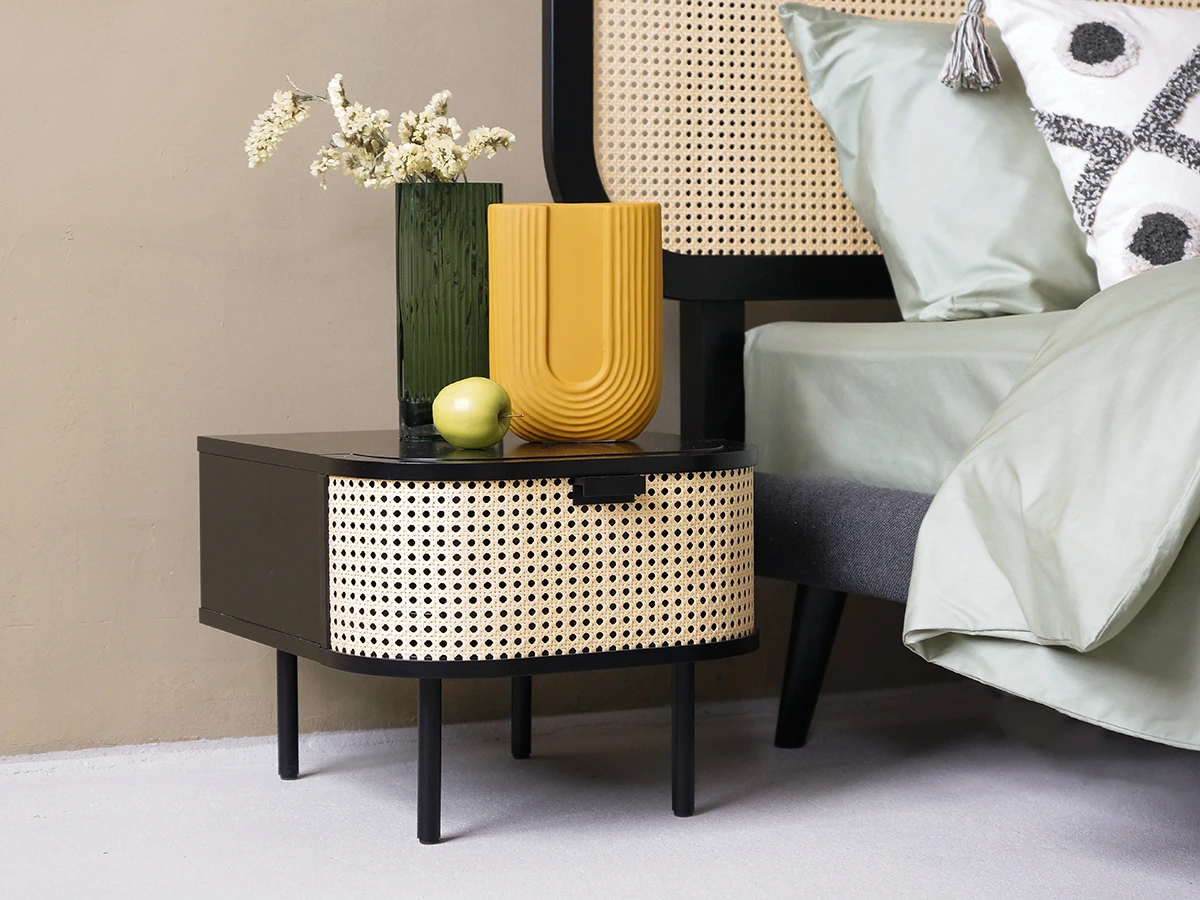 Коллекция предметов мебели для спальни с использованием декор-ротанга. Оригинальный дизайн сосредоточен на контрастных сочетаниях. Гармония природы — главный лейтмотив линейки. Который выражен в лаконичной геометрии, использовании натуральных материалов: деревянного бруса, массива бука, естественных оттенках. Каждая деталь кроватей, шкафов, тумб, сервантов, зеркал поддерживает настроение спокойствия и умиротворения. «Ажурные» элементы плетения из искусственного ротанга добавляют теплоты, объёма и эксклюзивности. Рельефные текстуры отвечают за живость, динамику, разнообразие. Благодаря «текучему» характеру, данные модели органично впишутся в пространства с намёком на эко, минимализм, бохо, этнику, эклектику и привнесут концепцию осязаемого комфорта с визуальной непринужденностью.