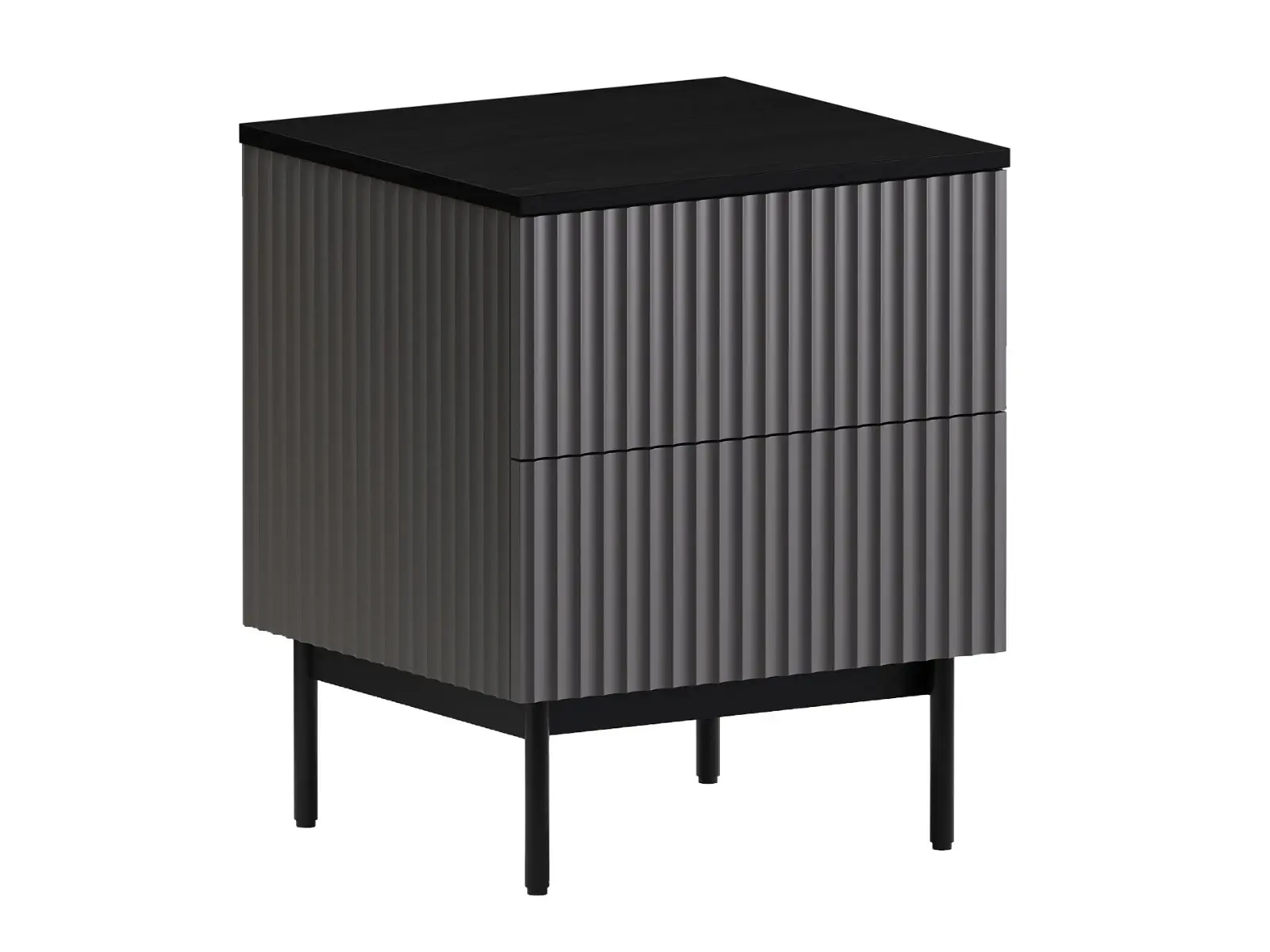 Тумба прикроватная с двумя ящиками на скрытых направляющих. Ящики расположены друг над другом. Дно ящиков из ДВПО белого цвета.