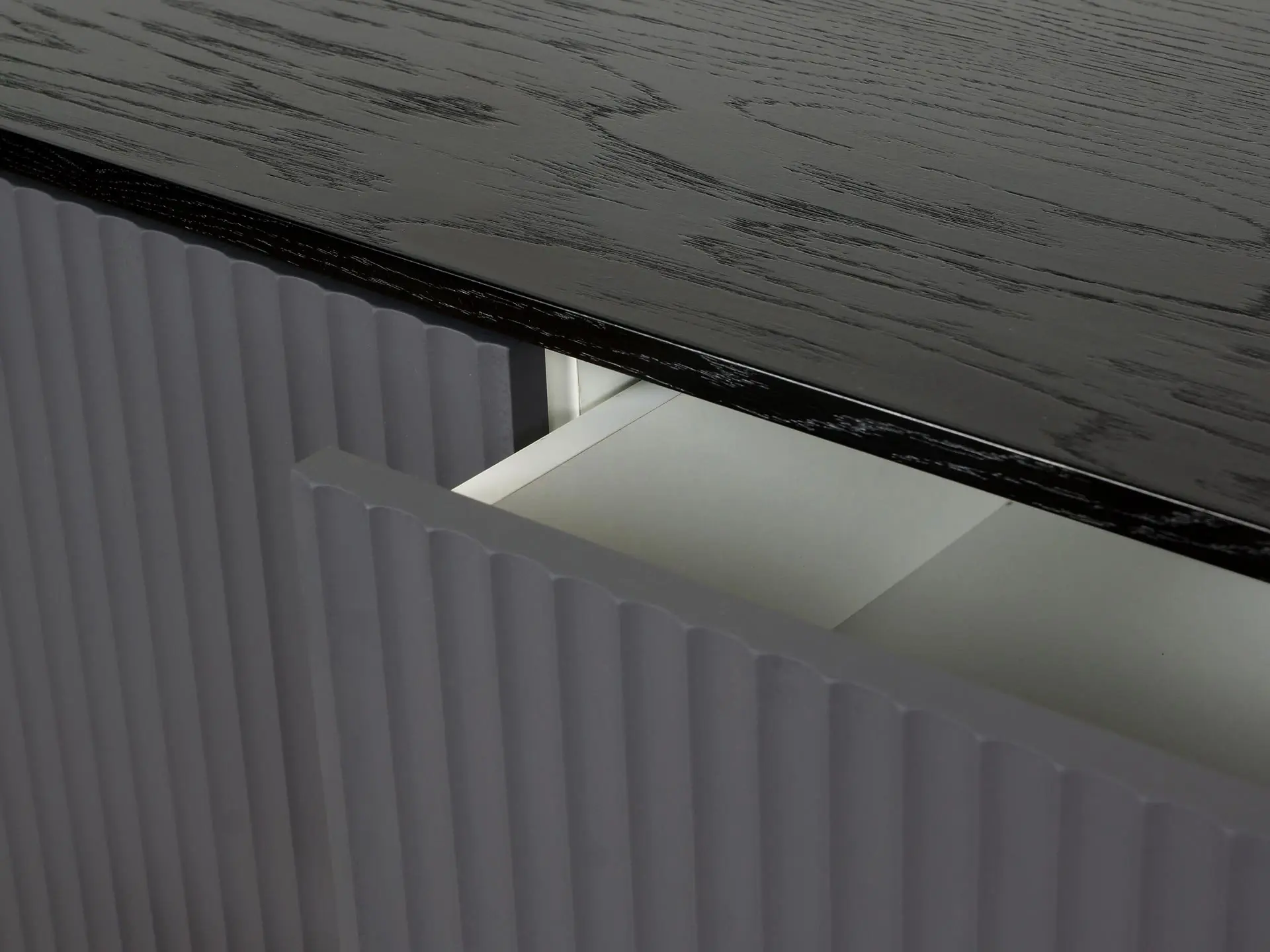 Идея дизайна — баланс индустриального характера и органичных элементов. Мебель сочетает в себе прочное металлическое основание, крышку с дубовым шпоном и рельефный фасад с фрезеровкой. Дверцы и ящики открываются легким нажатием. Отсутствие фурнитуры придает моделям аккуратность и ритмичность. Используйте их для хранения книг, техники в гостиной, одежды и текстиля в спальне, важных мелочей в прихожей, документов и канцелярии в рабочей зоне, декоративных вещей в творческой локации. Можете выбрать цвет крышки: светлый или темный. С мебелью Mikko вы грамотно спрячете лишнее и эстетично экспонируете нужное.