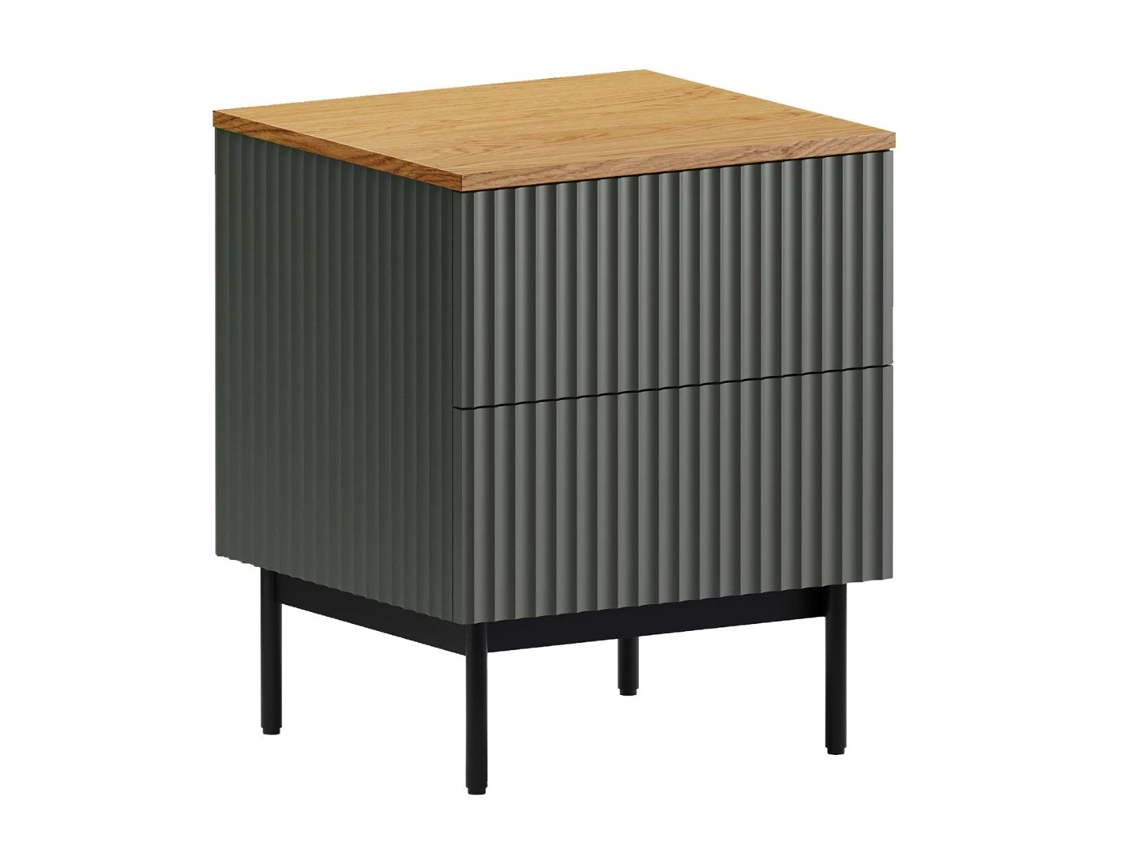 Тумба прикроватная с двумя ящиками на скрытых направляющих. Ящики расположены друг над другом. Дно ящиков из ДВПО белого цвета.
