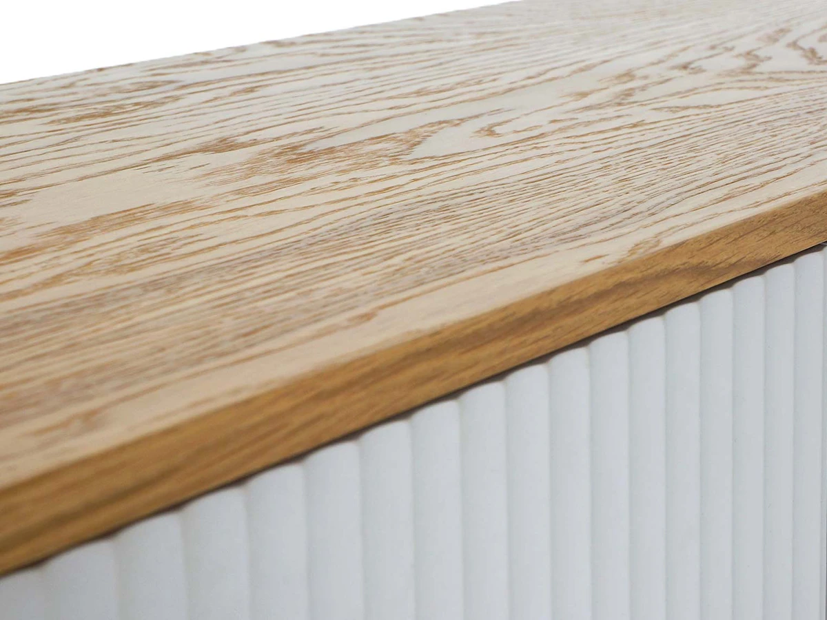 Идея дизайна — баланс индустриального характера и органичных элементов. Мебель сочетает в себе прочное металлическое основание, крышку с дубовым шпоном и рельефный фасад с фрезеровкой. Дверцы и ящики открываются легким нажатием. Отсутствие фурнитуры придает моделям аккуратность и ритмичность. Используйте их для хранения книг, техники в гостиной, одежды и текстиля в спальне, важных мелочей в прихожей, документов и канцелярии в рабочей зоне, декоративных вещей в творческой локации. Можете выбрать цвет крышки: светлый или темный. С мебелью Mikko вы грамотно спрячете лишнее и эстетично экспонируете нужное.