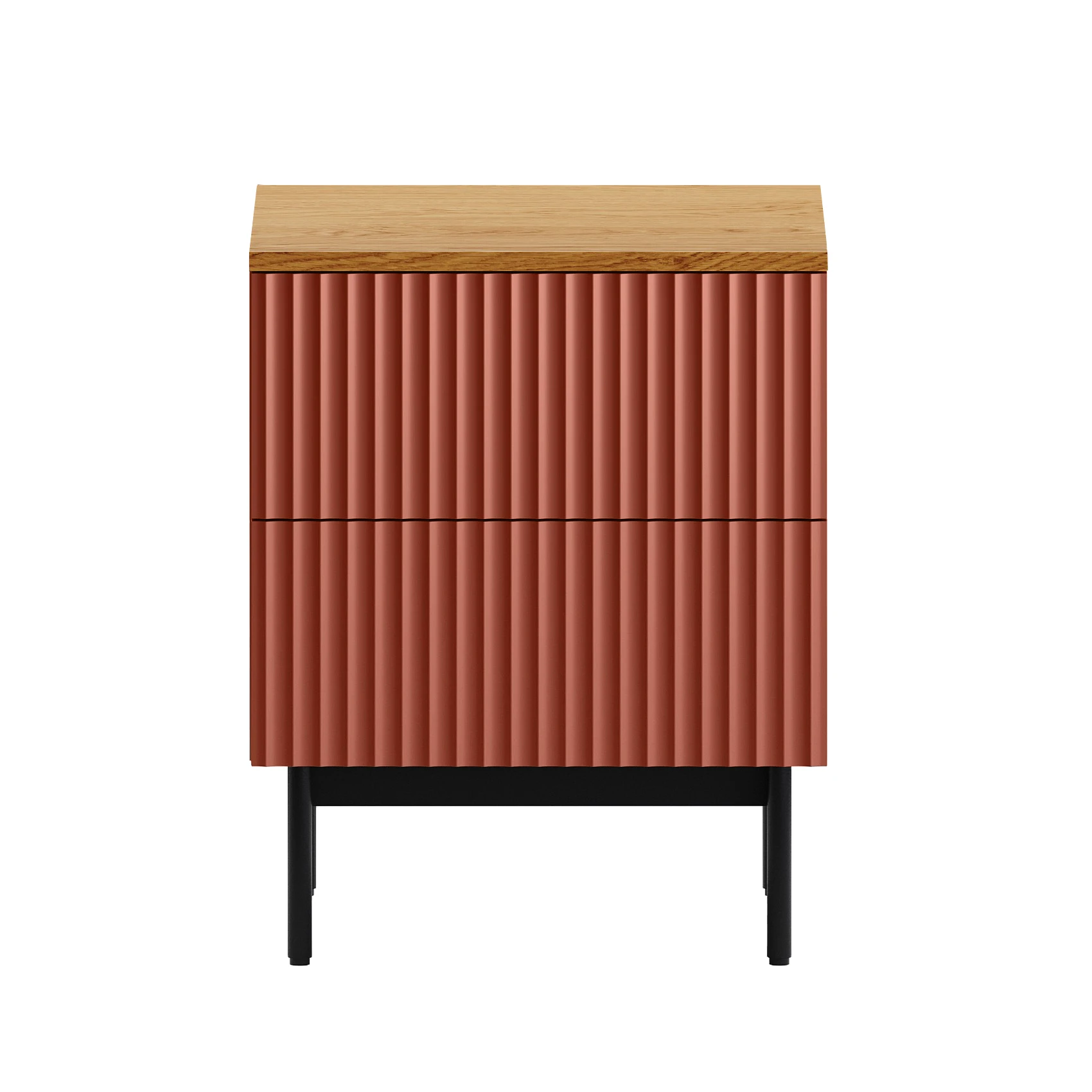 Тумба прикроватная с двумя ящиками на скрытых направляющих. Ящики расположены друг над другом. Дно ящиков из ДВПО белого цвета.