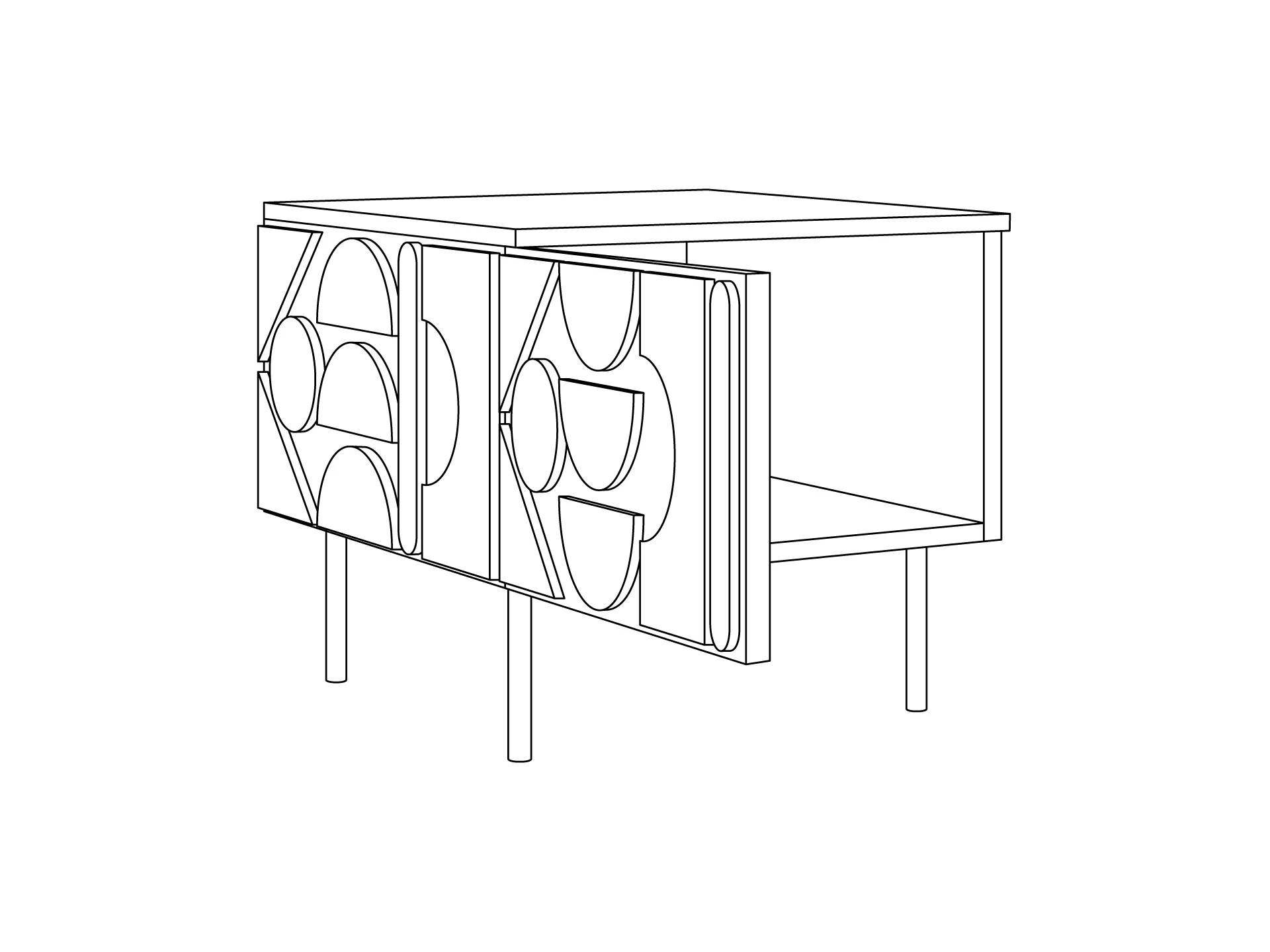 Milton — линейка корпусной мебели для хранения с динамичным характером. Яркой чертой дизайна являются геометрические фигуры, закреплённые на фасадах и боковых стенках. Они придают изделиям рельефность, оригинальность, выразительность. Серванты, комоды, тумбы напоминают объёмные 3-D головоломки. Архитектура которых строится на комплиментарности контрастов. Колоритный «верх» балансирует на изящных ножках из металла. Фасады без ручек открываются с помощью механизма «нажал-открыл».