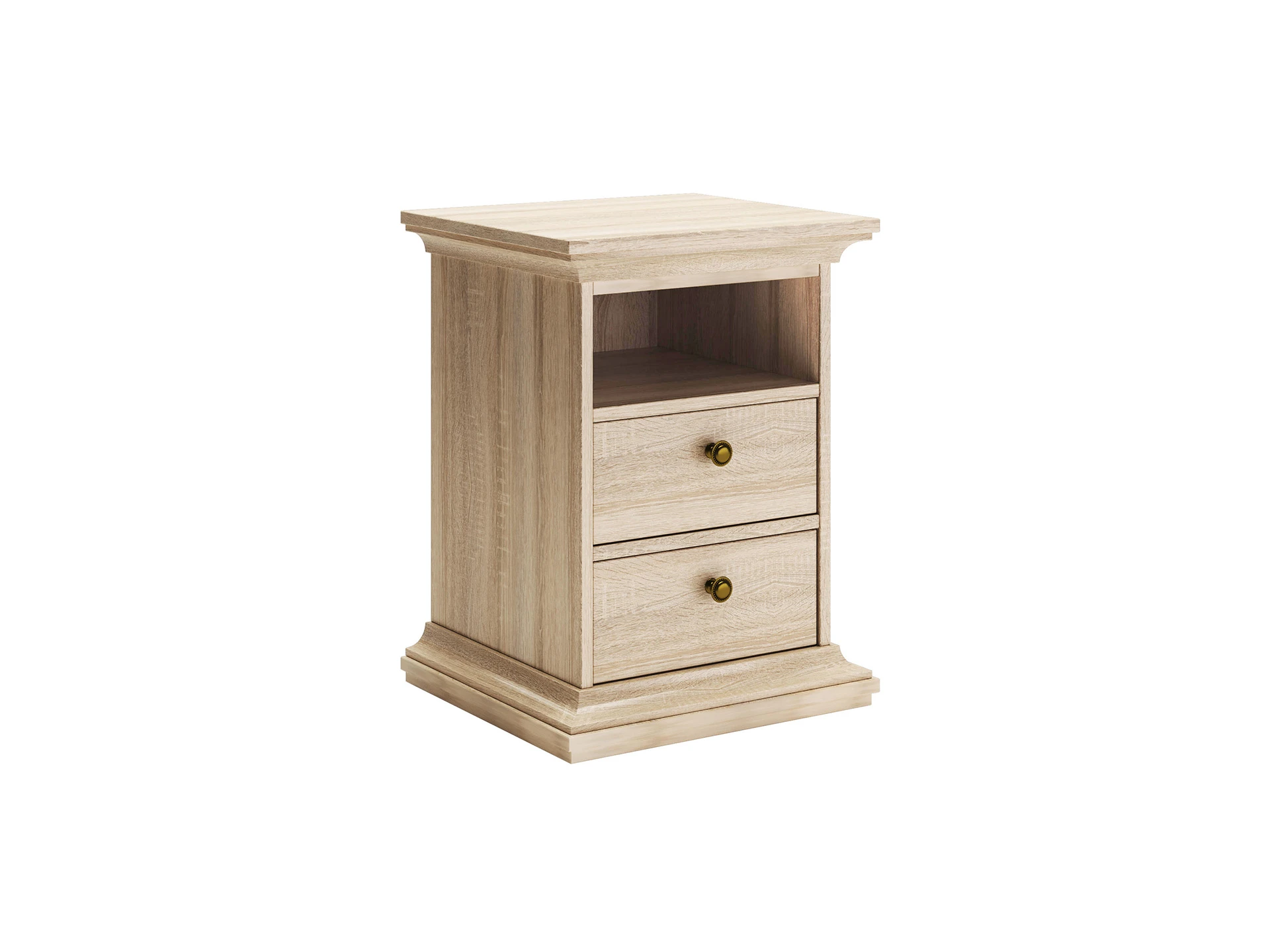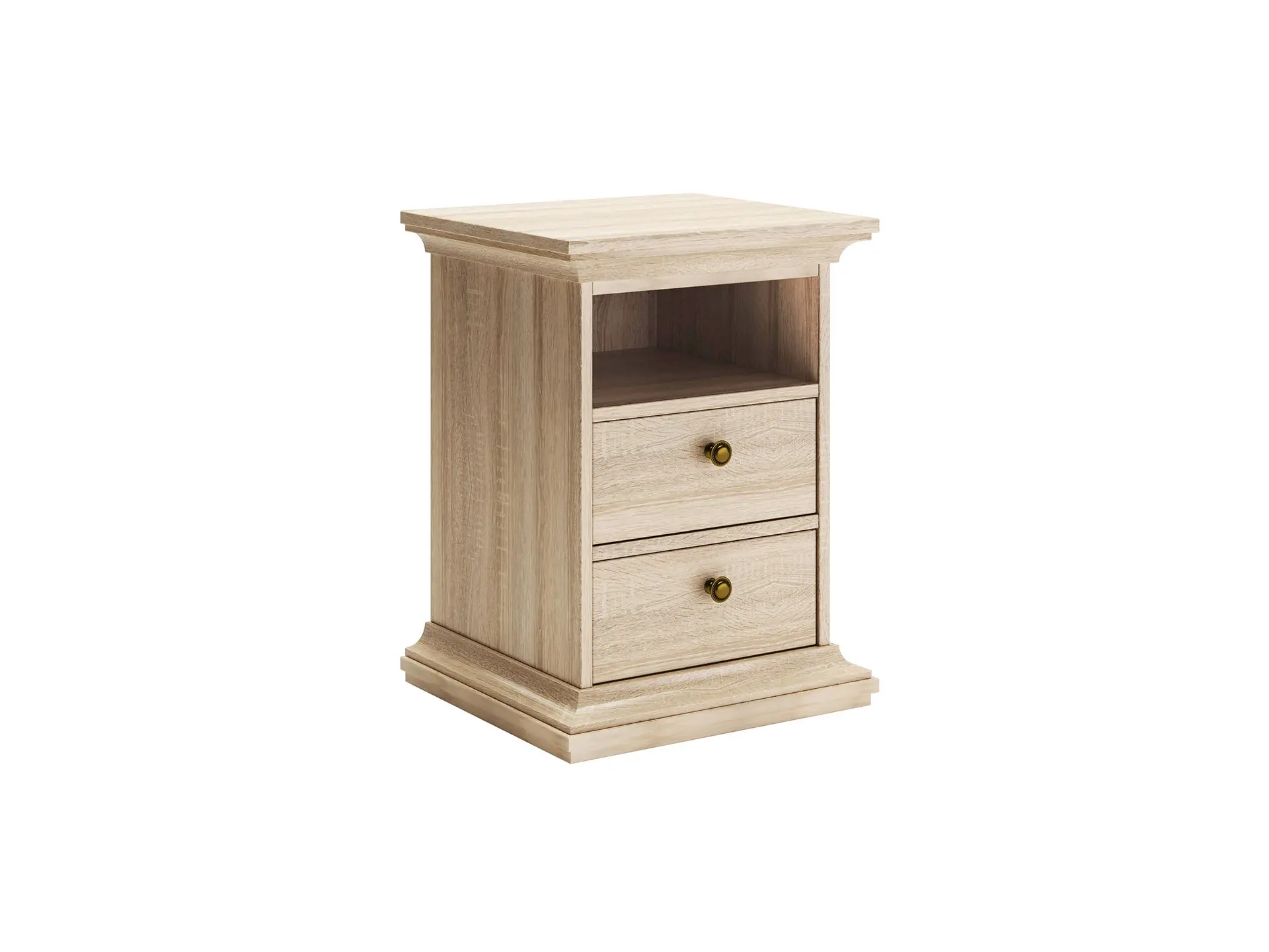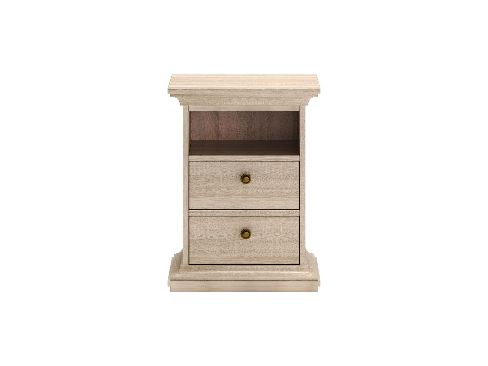 Тумба Reina с полкой и двумя выдвижными ящиками обладает лаконичным дизайном и широкими функциональными возможностями. В ней легко организовать хранение различных вещей, которые удобно иметь под рукой: косметика, парфюмерия, гаджеты, принадлежности для сна, белье. Поверхность подходит для использования в качестве столешницы, на которую можно поставить лампу, зеркало, часы, декор, книгу. Цокольное основание отвечает за устойчивость и надёжность конструкции. Ящики имеют тихий и плавный ход.