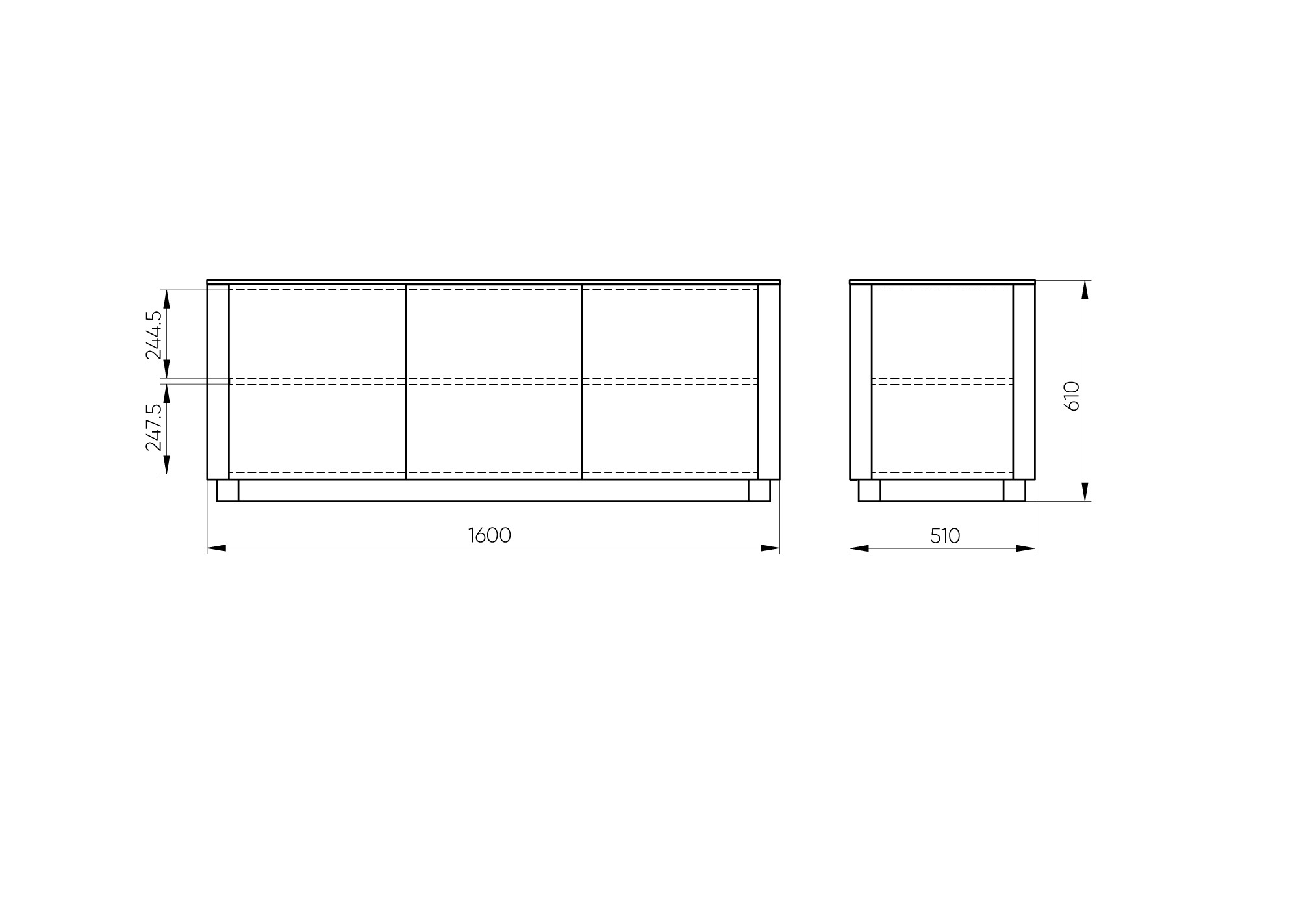 Высота: 61,5 см Ширина:160 см Глубина: 51 см Покрытие эмаль, RAL 7037 Материал: дуб, МДФ, внутри ЛДСП
