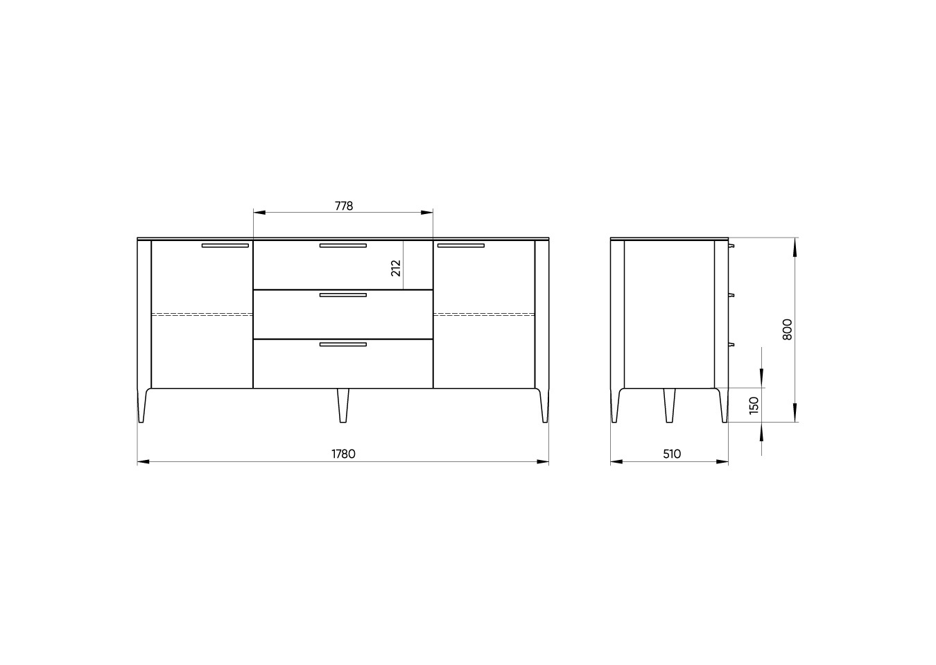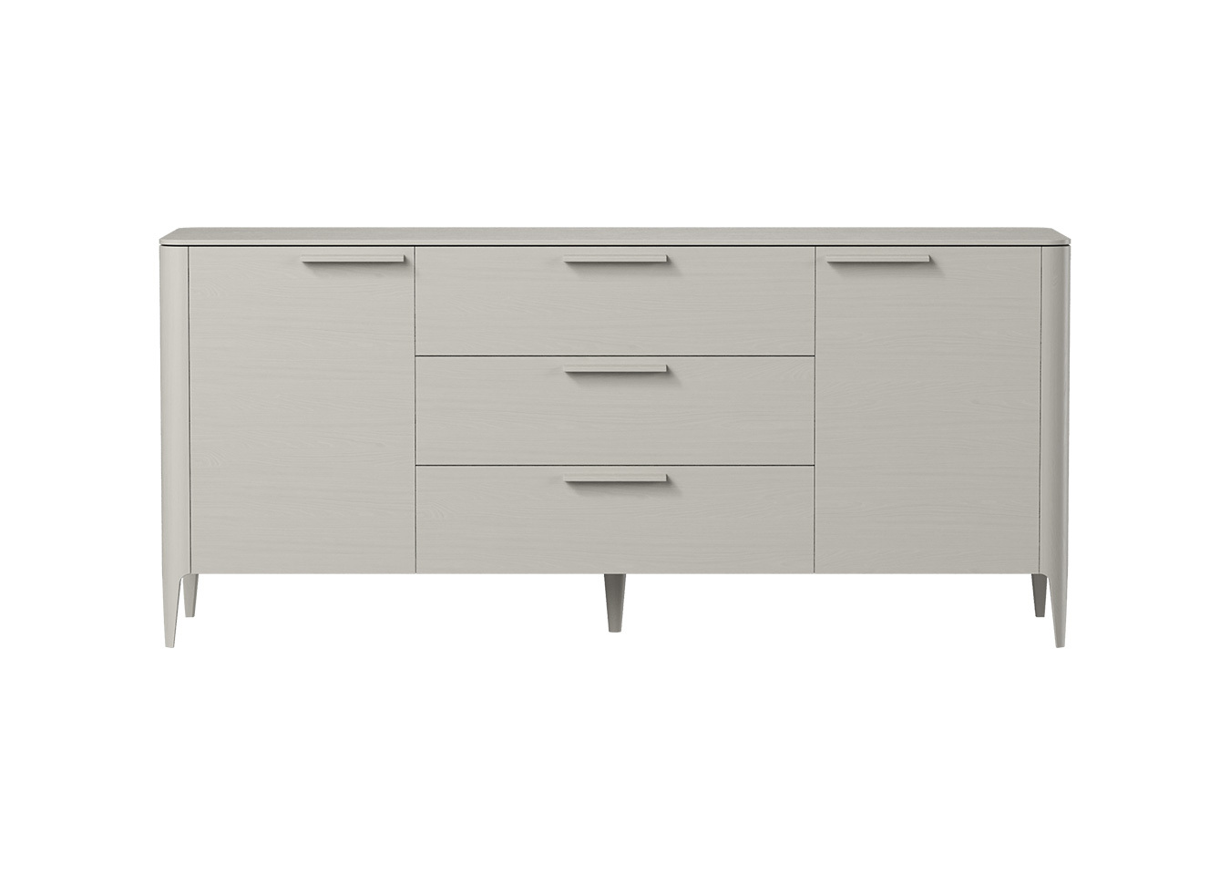 Высота: 80 см Ширина: 178 см Глубина: 51 см При производстве используется шпон натурального дуба, покрытие эмаль RAL 7044 Материал: массив дуба, натуральный шпон дуба, МДФ