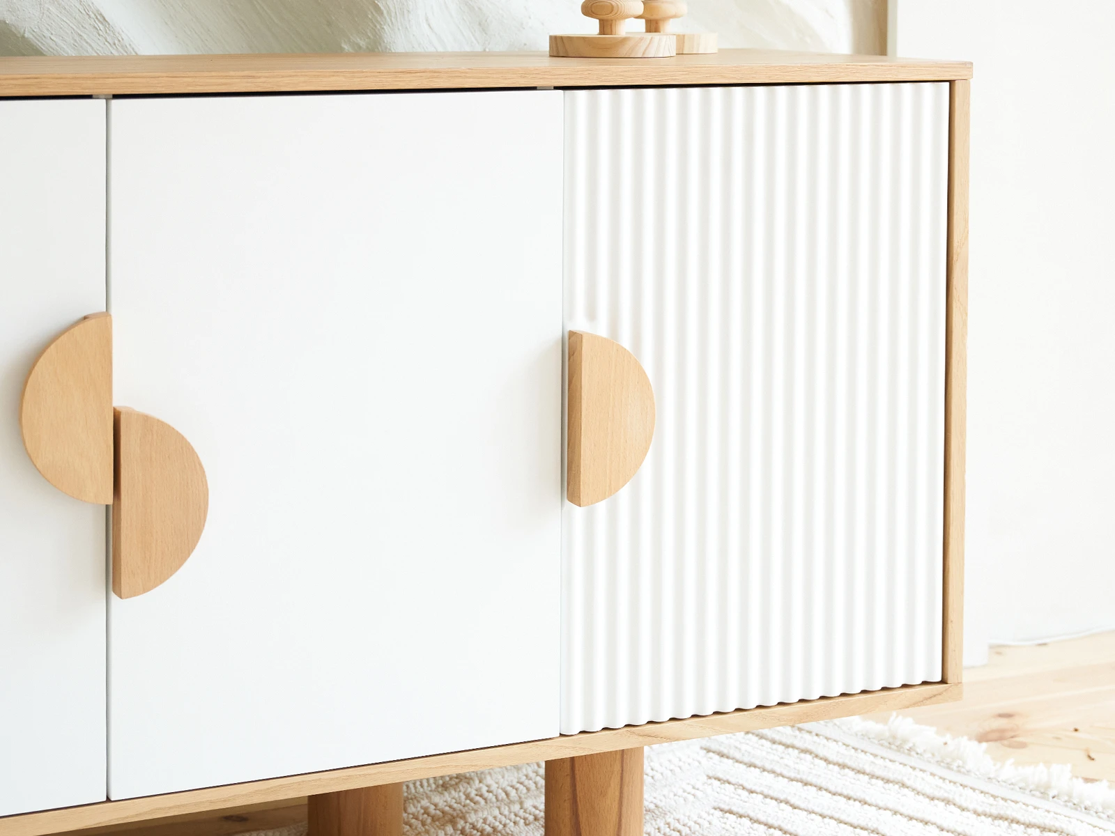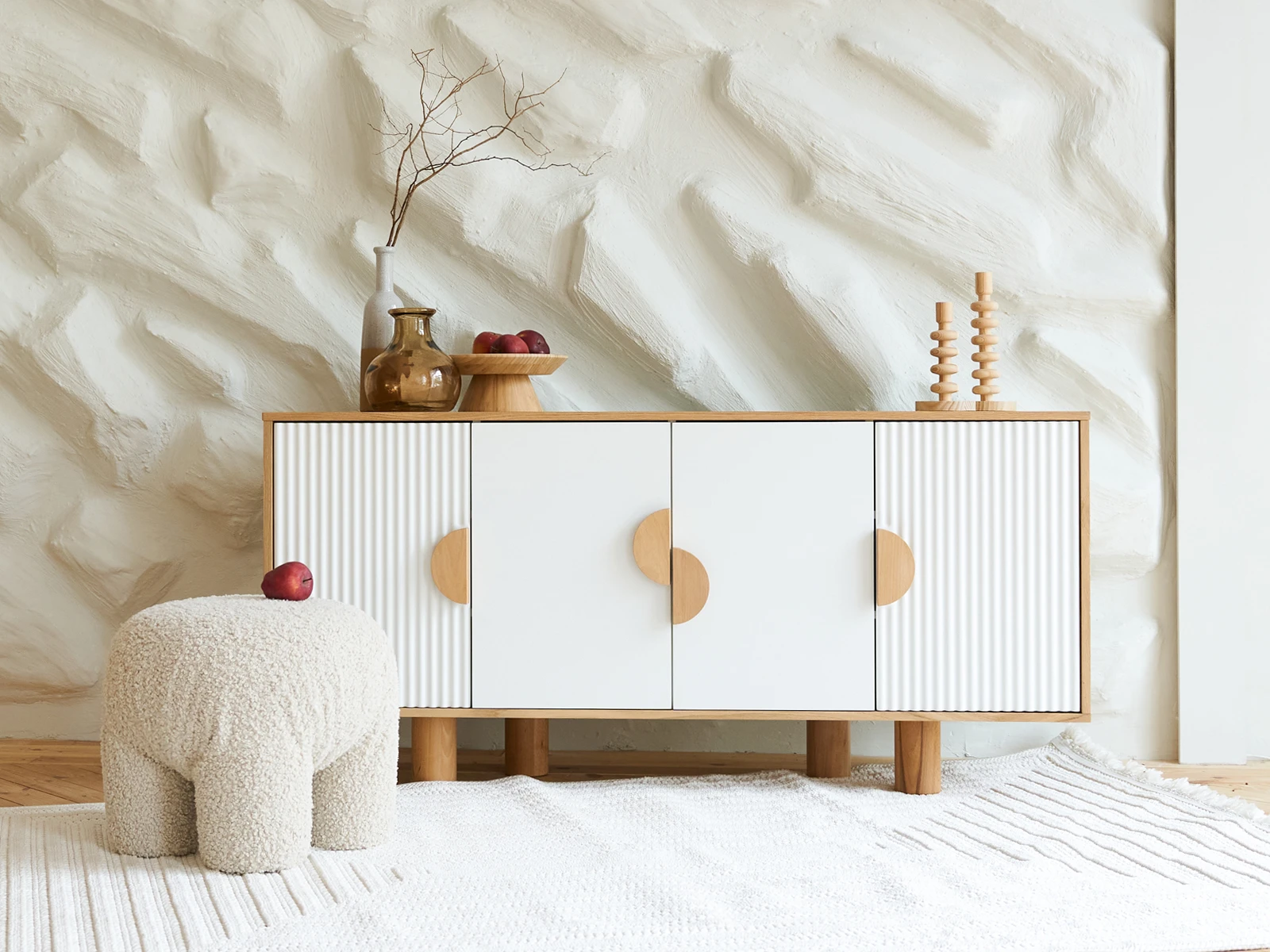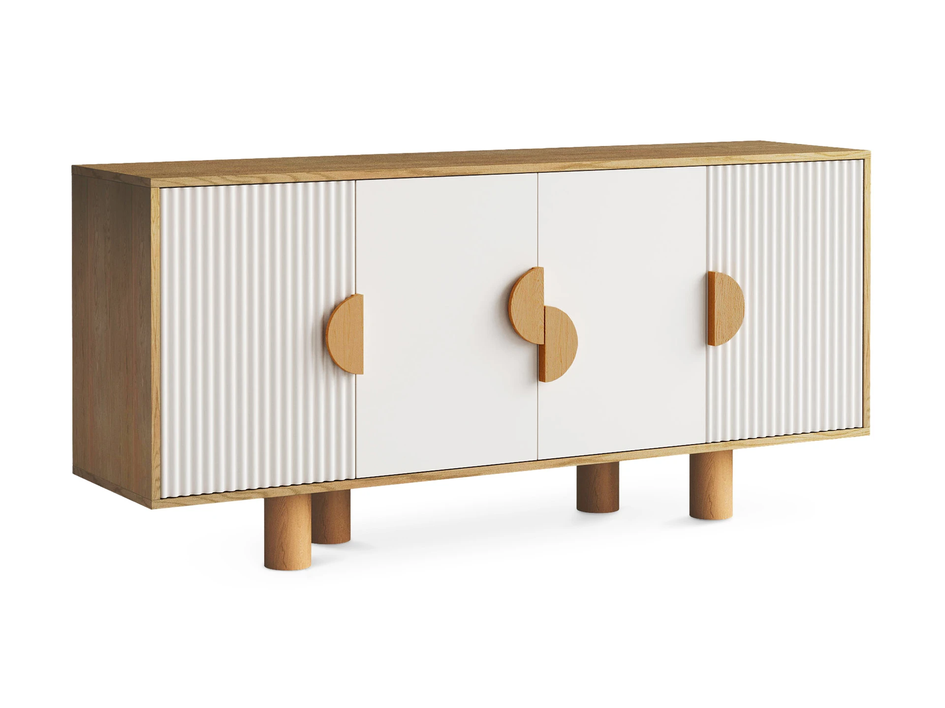 Cresco — стильная коллекция корпусной мебели для хранения вещей. Идея дизайна — нескучный минимализм. С одной стороны — практичность, спокойный внешний вид, универсальность. С другой — смелость, контрастность, оригинальность. Четкая геометрия корпуса и круглые ножки из бука, рельефная и гладкая части фасада, ассиметричное расположение ручек-полумесяцев — эти элементы отвечают за интересный внешний вид, который наполнит ваш интерьер разнообразием, ритмичностью, фактурами, акцентами.