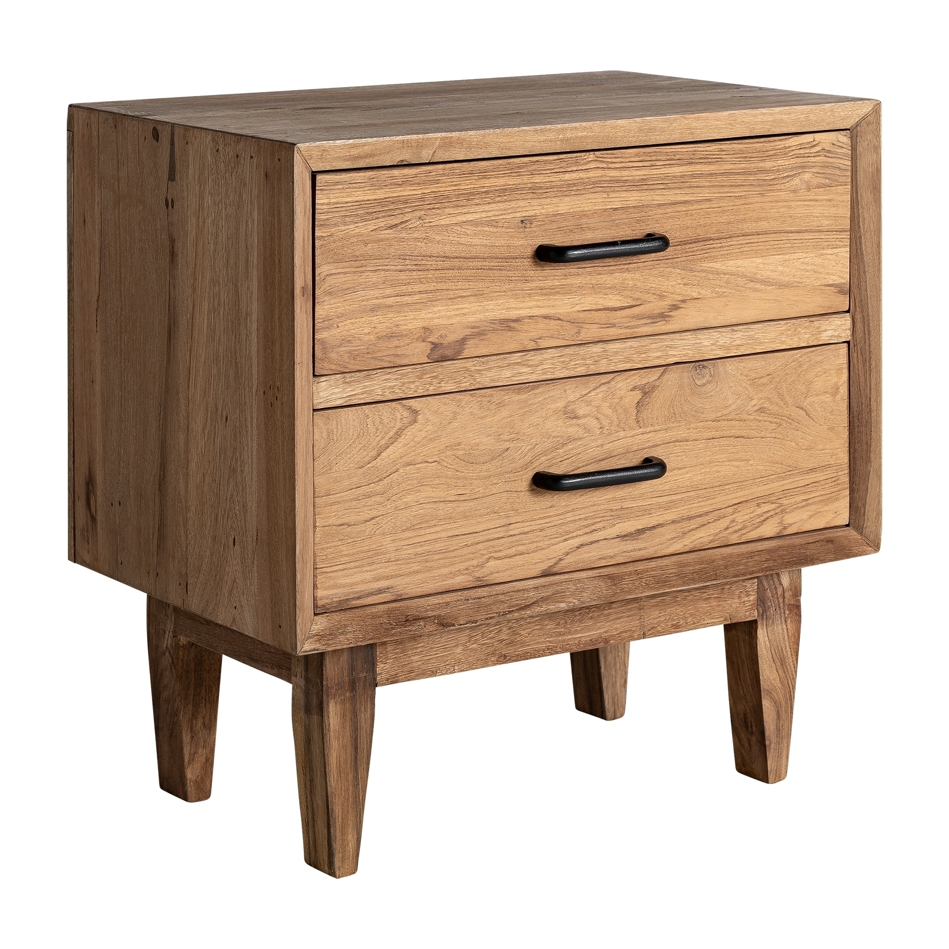 Тумбочка, натурального коричневого цвета, в скандинавском стиле. Изготовлен из вторичной древесины.
