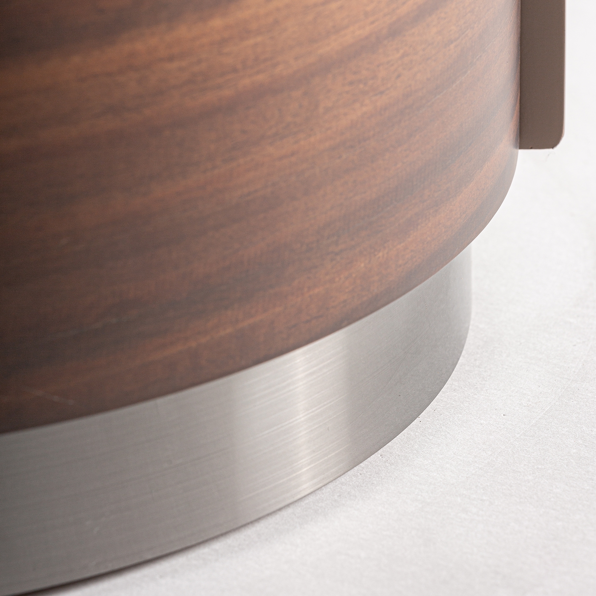 Тумбочка Giswil, коричневого цвета, стиль арт-деко. Изготовлен из фанеры в сочетании с шпоном эвкалипта и спеченным камнем.