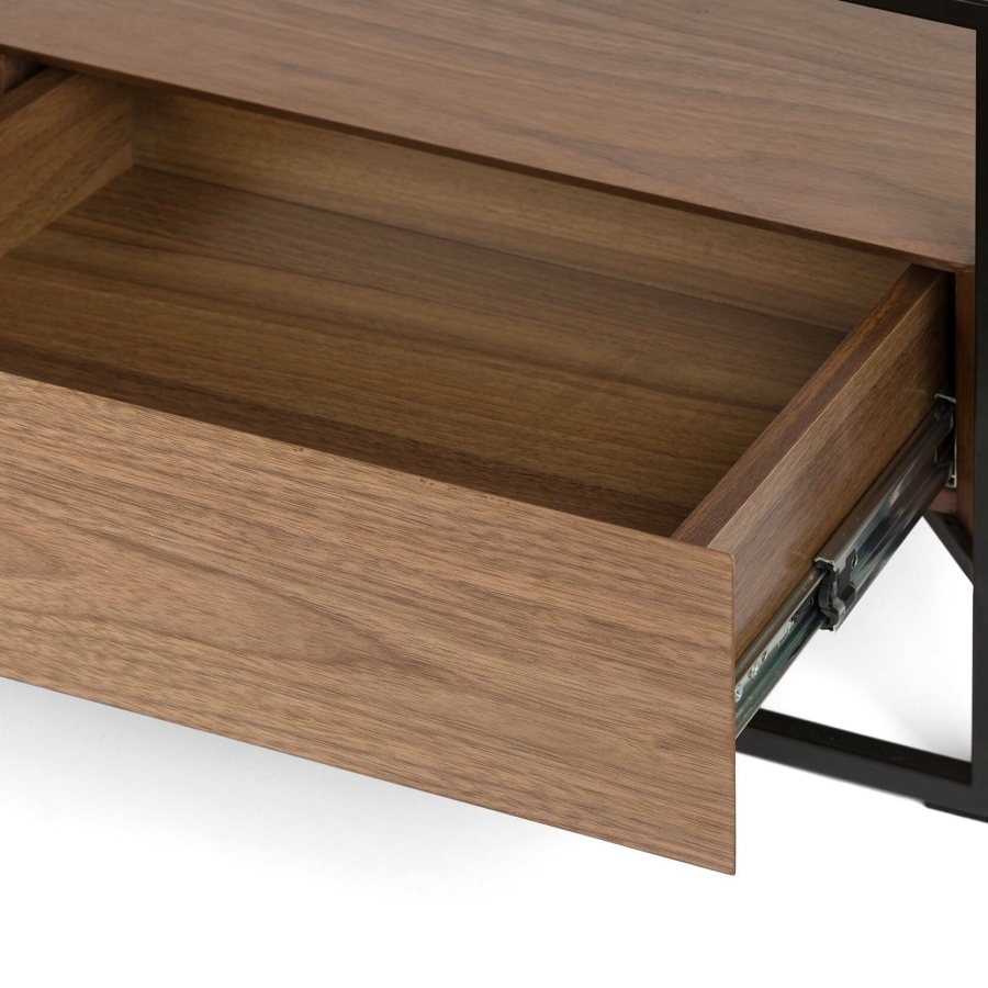 Изготовлена из МДФ с ореховым шпоном, что придаёт консоли элегантный и современный вид, а также обеспечивает долговечность.