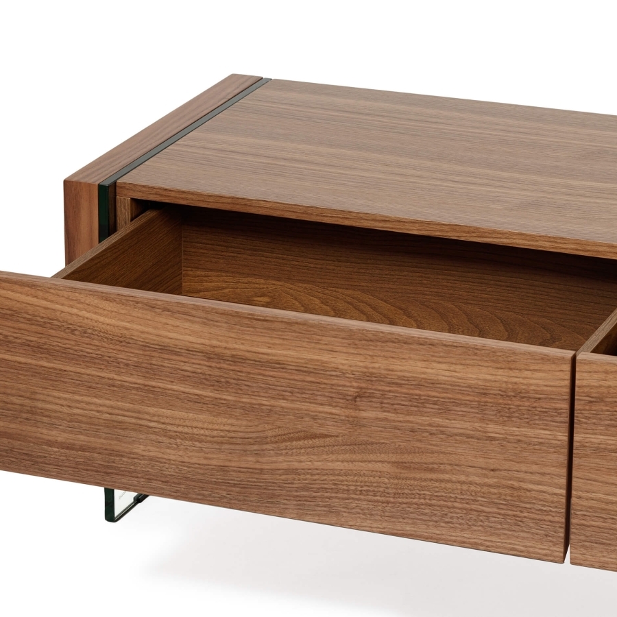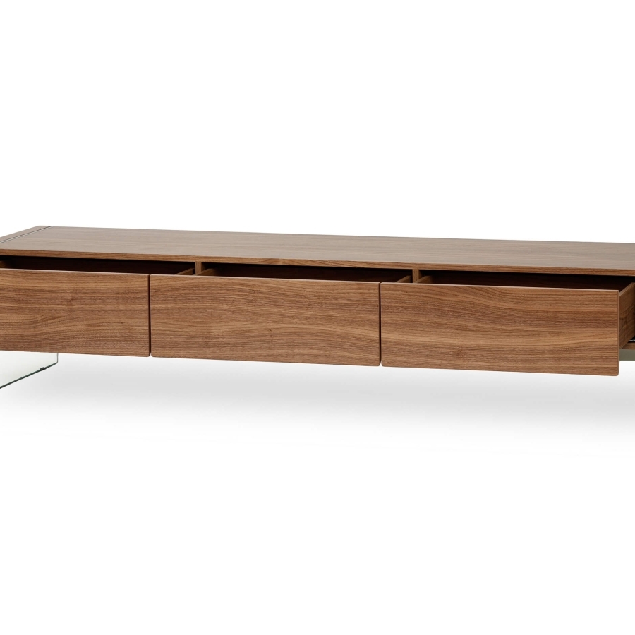 Предоставляет достаточно места для размещения телевизора, аудиосистемы, декоративных элементов и других вещей. Стеклянные ножки добавляют легкости и изящества. Сочетание дуба и стекла придает тумбе изысканность и уникальность.