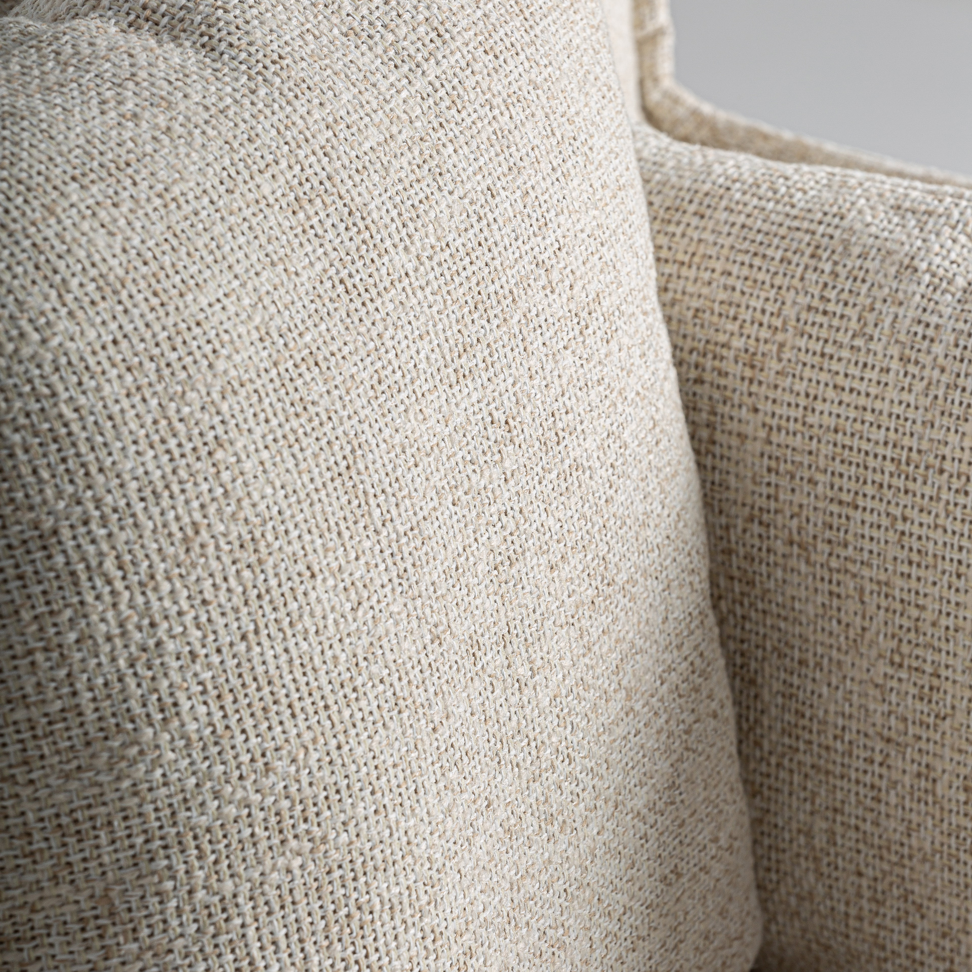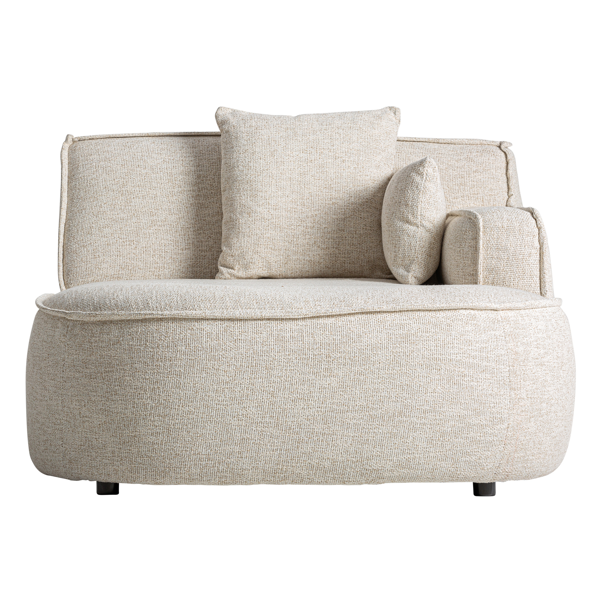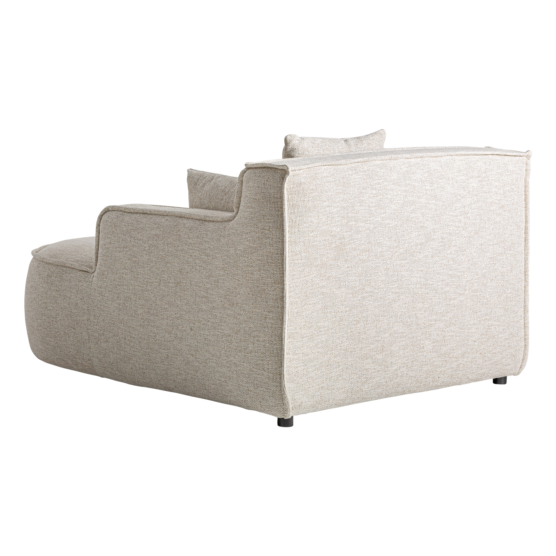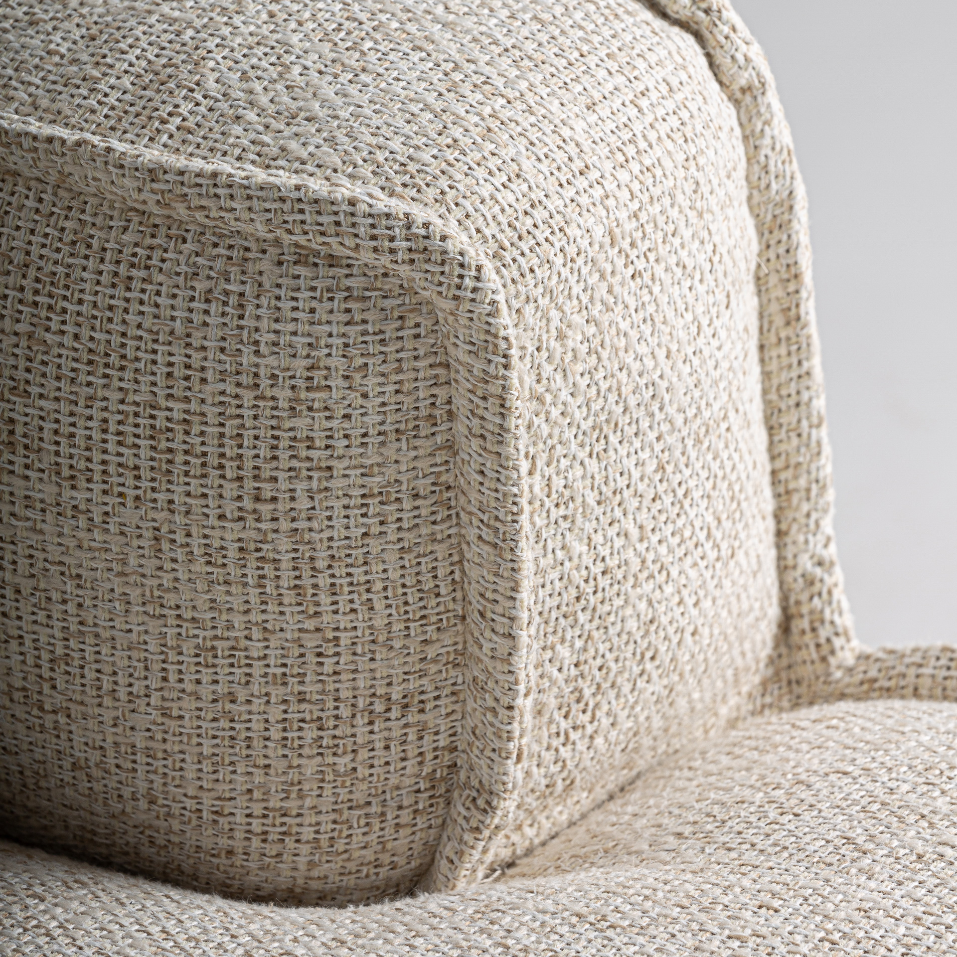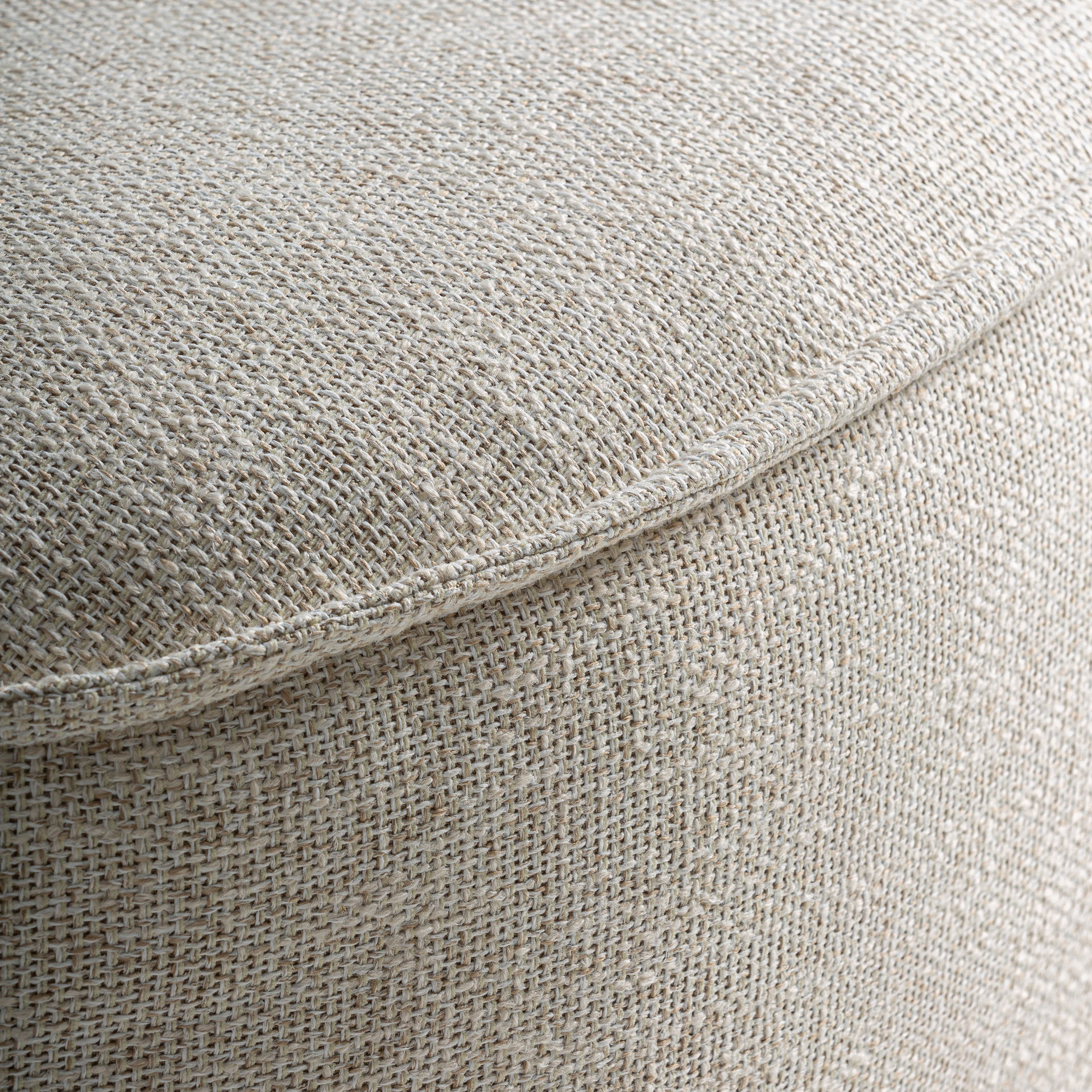 Угловой модуль дивана, изготовлен из полиэстера бежевого цвета в сочетании с поролоном и алюминием.