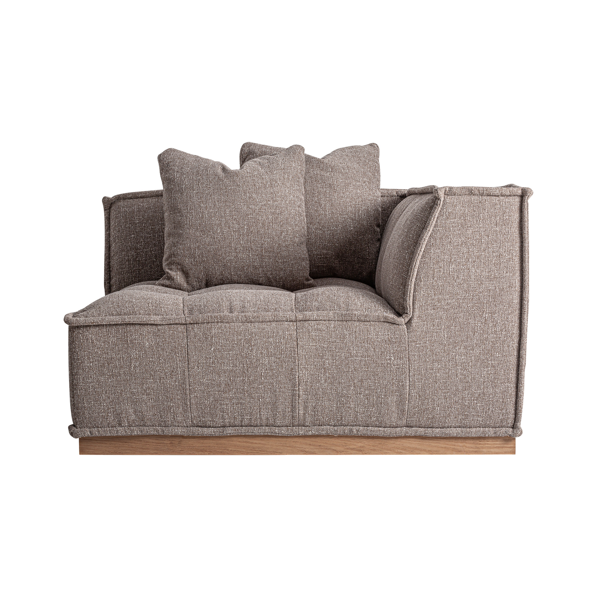 Угловой модульный диван Aspach в современном стиле, изготовлен из коричневого полиэстера с пестрой отделкой в сочетании с коричневой сосной.