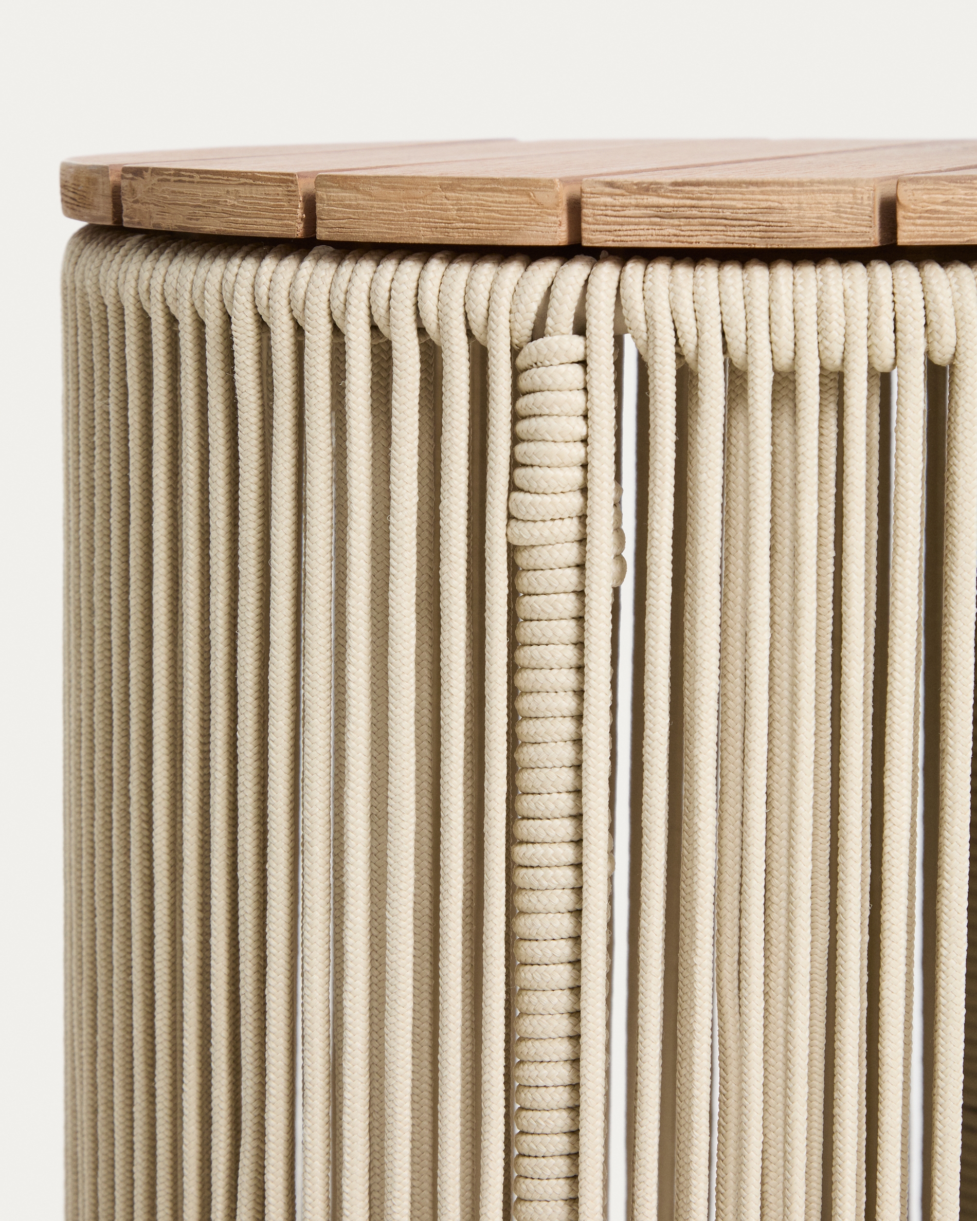 Стол Dandara сочетает в себе устойчивость и баланс в дизайне, созданном для использования на открытом воздухе. Его обработанная стальная конструкция обеспечивает высокую защиту от ржавчины, в то время как столешница из массива акации обеспечивает прочность и безмятежное присутствие. Плетение веревочного шнура усиливает его структуру и добавляет деталь ручной работы, которая завершает его характер. Изготовленная из 100% сертифицированной FSC™ древесины, полученной из ответственно управляемых лесов, она отражает приверженность долговечности и окружающей среде.