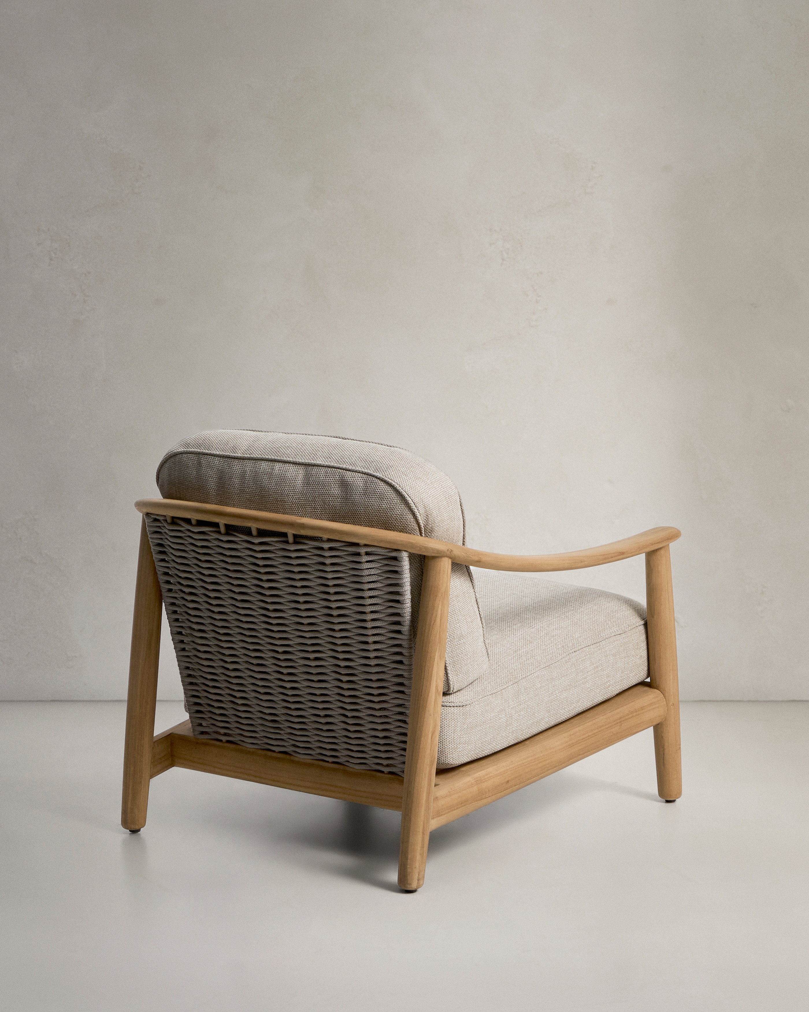Коллекция Elunda включает в себя предметы мебели из массива тикового дерева, подходящие для использования на открытом воздухе и предназначенные для создания уютных пространств. Ее конструкция сочетает в себе плавные линии и спинку из плетеного вручную, устойчивого к УФ-излучению шнура, обеспечивающего комфортную поддержку. Подушки имеют съемные чехлы и изготовлены из сетчатого пеноматериала, который пропускает воду и способствует быстрому высыханию, что позволяет использовать их на открытом воздухе в течение длительного времени. Коллекция изготовлена из древесины, сертифицированной по стандарту FSC™ 100%, полученной из ответственно управляемых лесов.