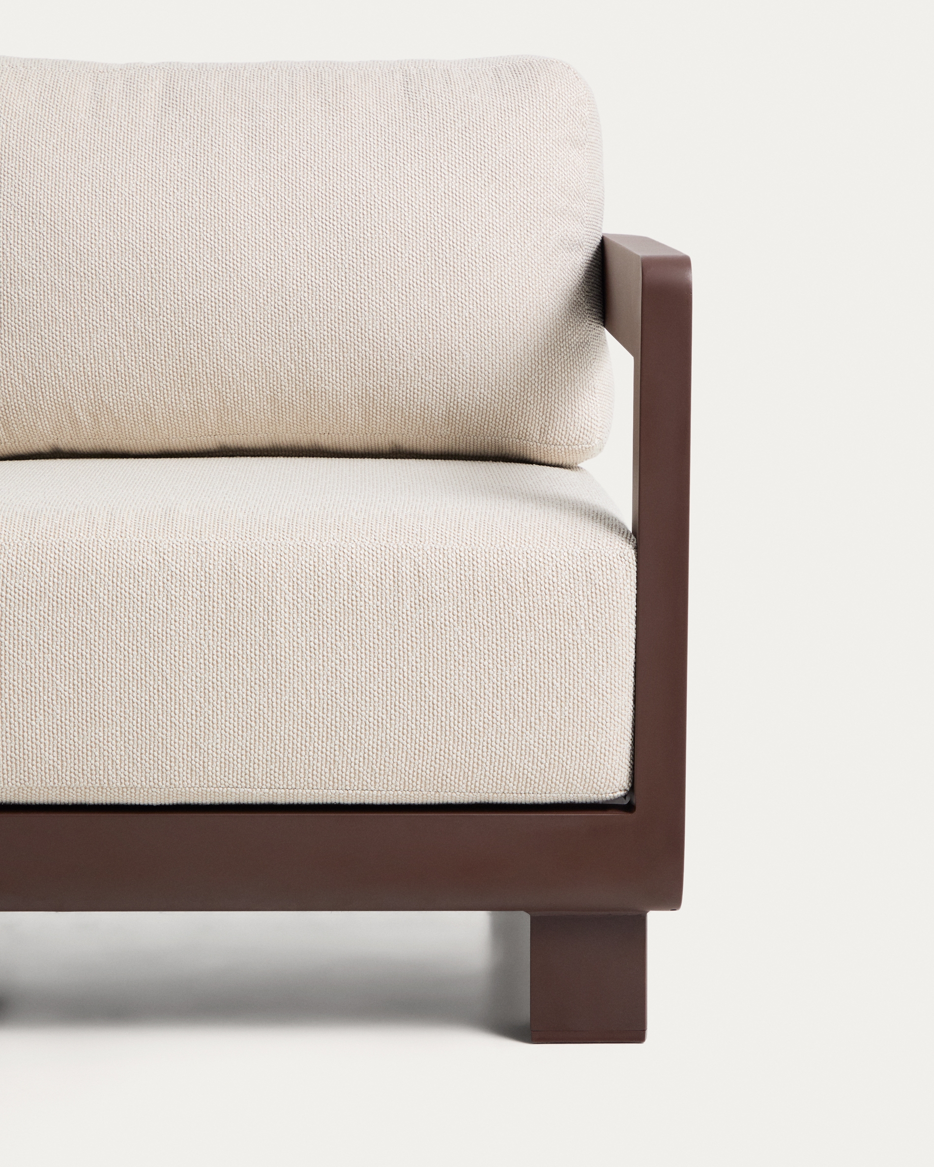 Коллекция Nerano создана для использования как на открытом воздухе, так и в помещении. Ее алюминиевая конструкция легкая и прочная, сохраняет цвет и форму, защищая от ржавчины, коррозии и воздействия солнечных лучей. Подушки легко снимаются, имеют съемные чехлы и могут быть удобно убраны, когда не используются или в дождливую погоду. В комплект также входят пластиковые защитные накладки на ножки, которые предохраняют пол и сохраняют поверхность в хорошем состоянии на протяжении длительного времени.