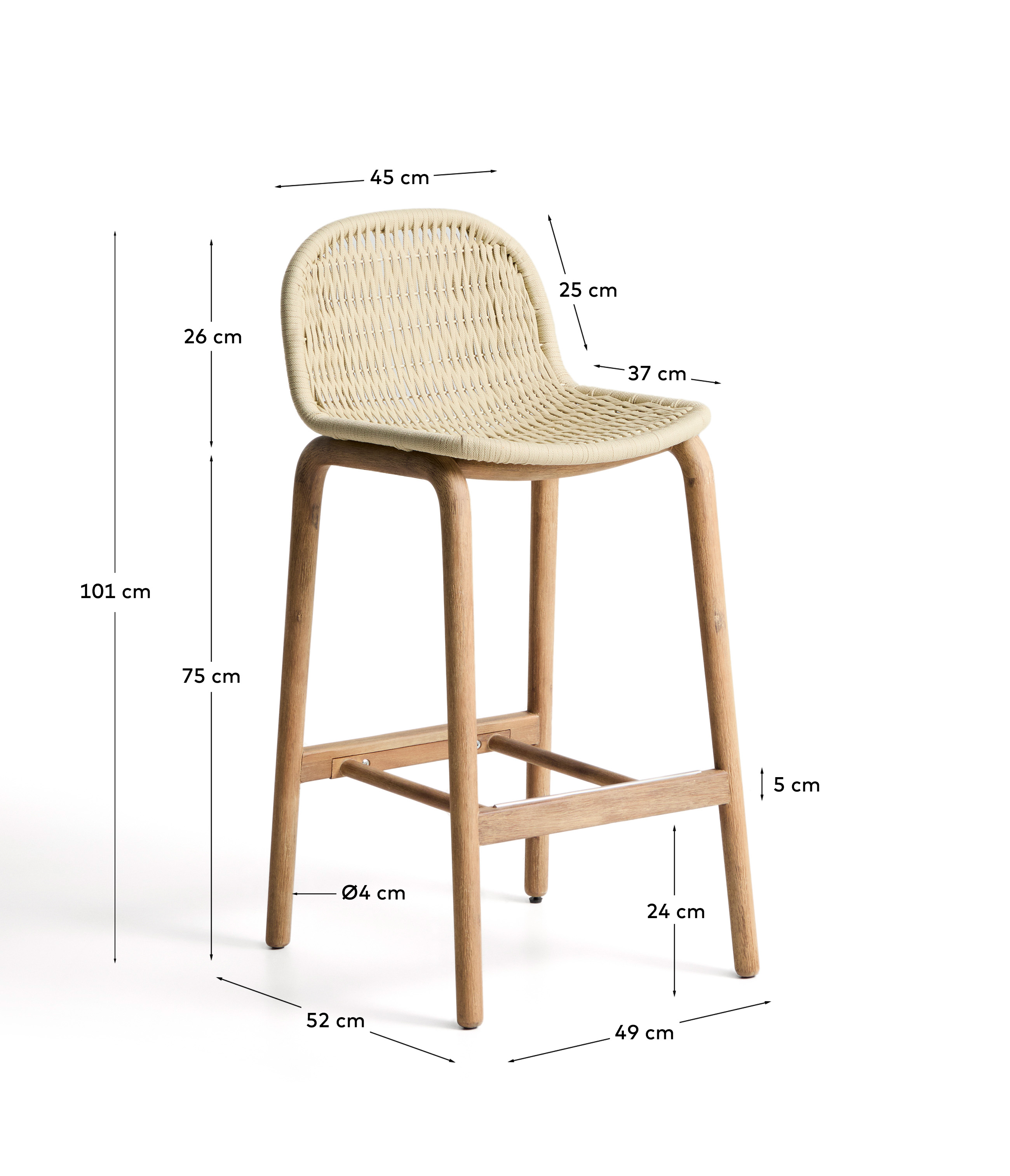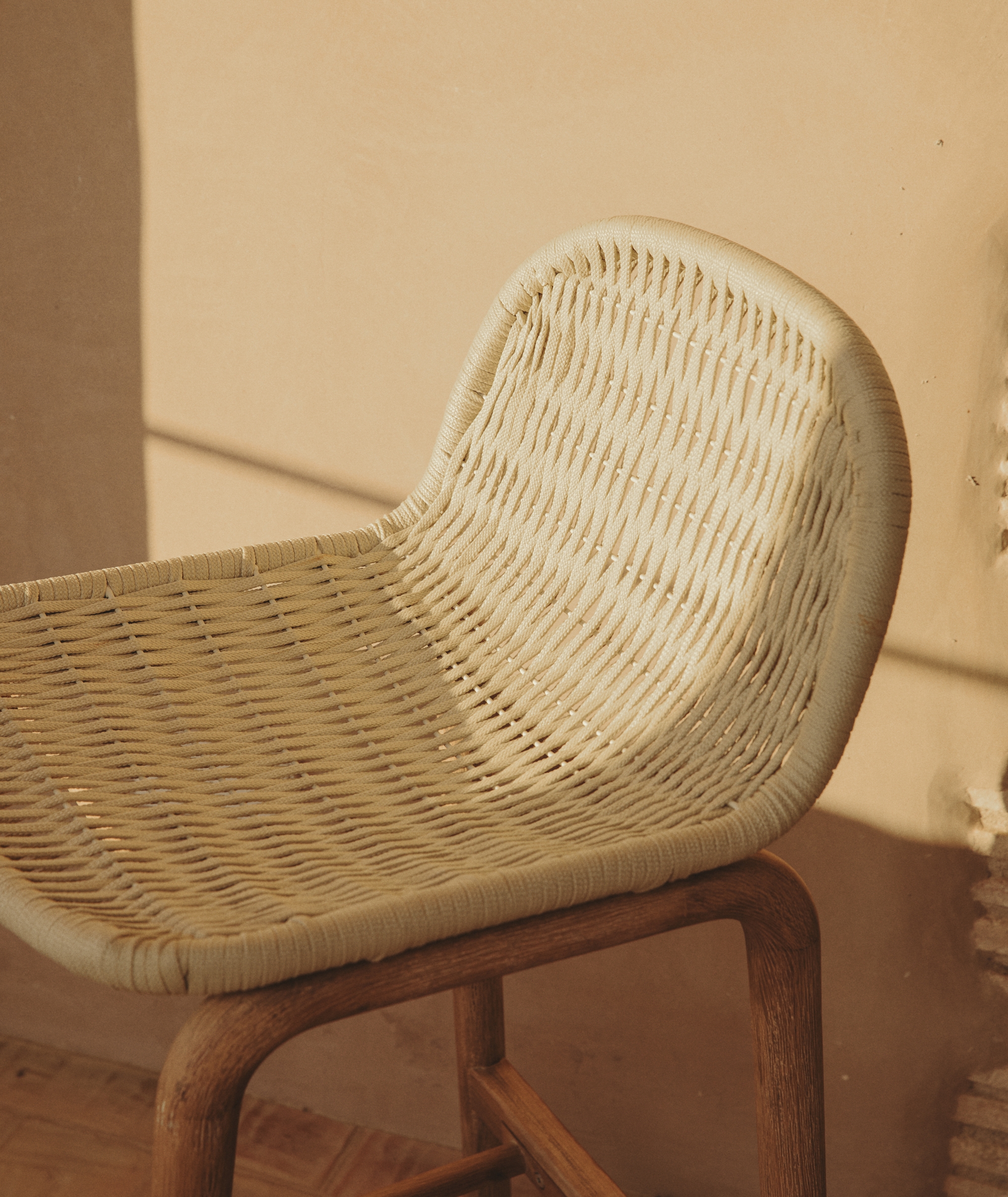 Табурет Alipa сочетает в себе пропорции, прочность и дизайн, который органично вписывается в различные пространства. Массивная древесина акации отличается уникальной текстурой, придающей изделию неповторимый и сбалансированный вид. Сиденье, сплетенное вручную из устойчивого к УФ-излучению веревочного шнура, сохраняет свою прочность и внешний вид при длительном использовании. Универсальный дизайн позволяет использовать его как в помещении, так и на открытом воздухе, обеспечивая целостность и преемственность между двумя средами.