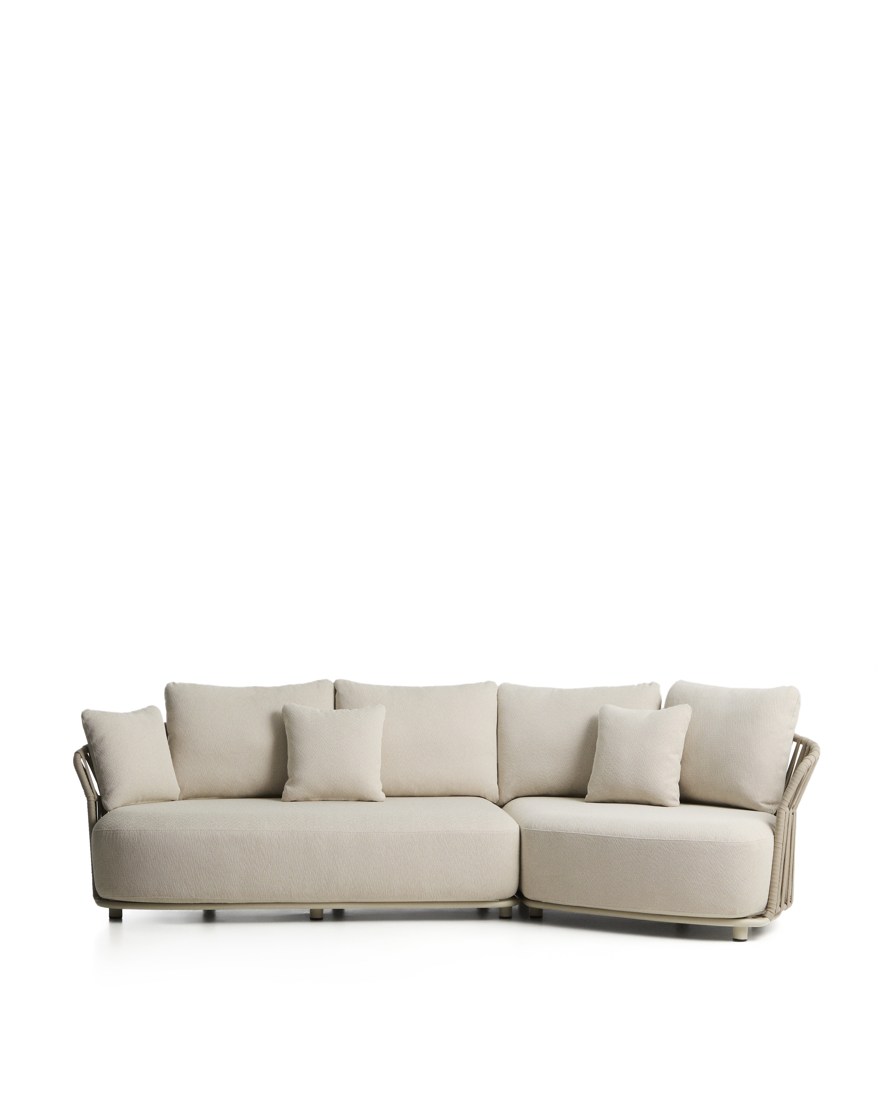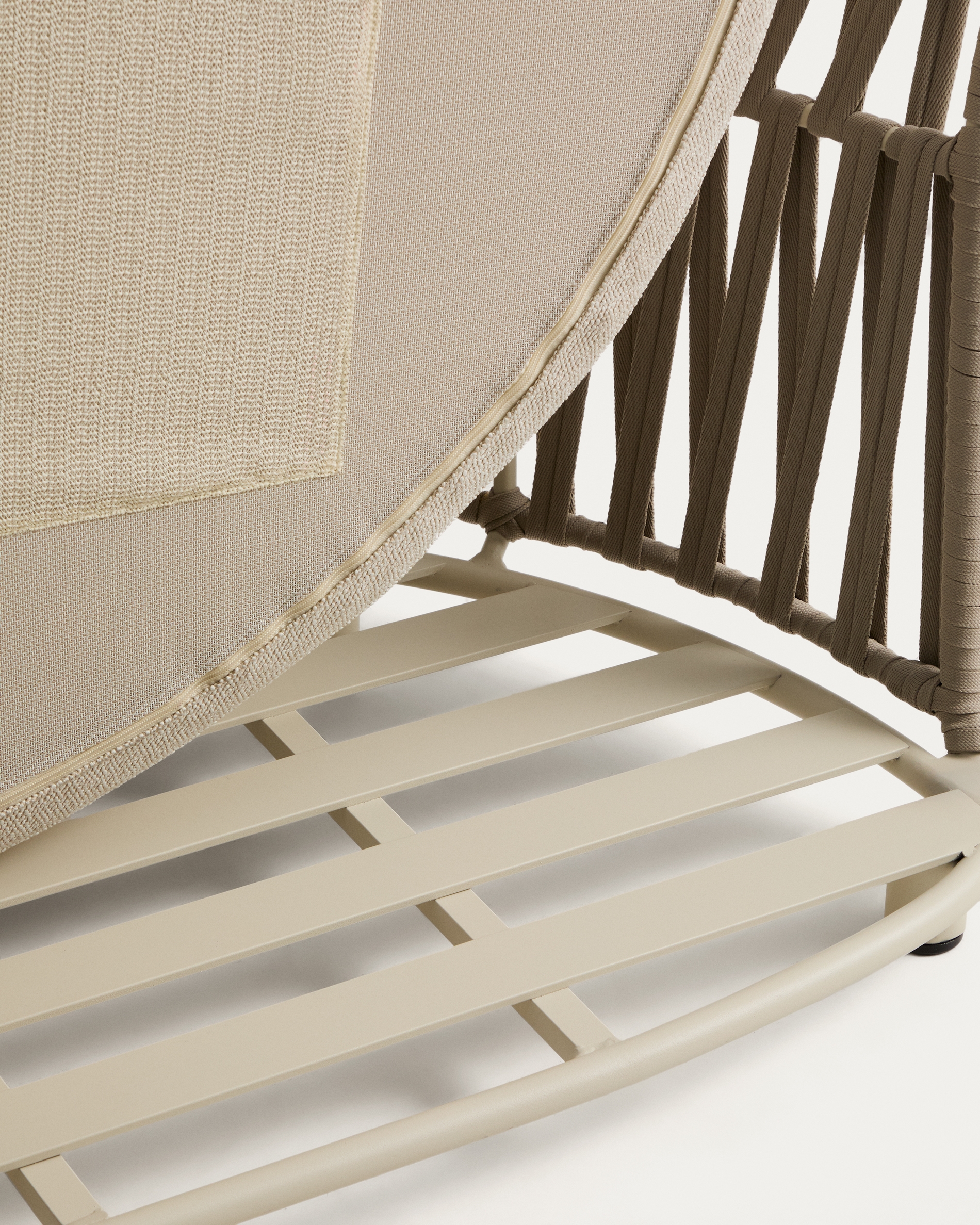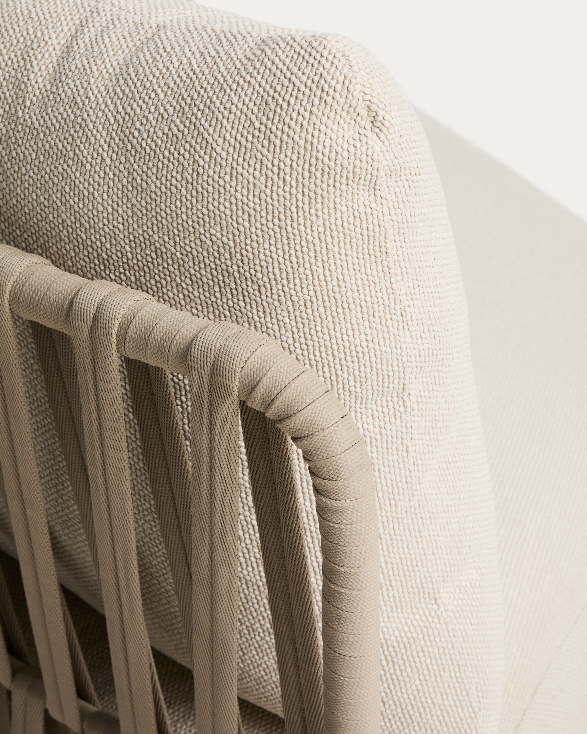 Коллекция Osani создана для того, чтобы гармонично дополнять интерьер и экстерьер, придавая им спокойствие. Алюминиевая конструкция обеспечивает легкость и устойчивость к ржавчине, коррозии и УФ-излучению, что делает ее предназначенной для длительного использования на открытом воздухе. Спинка, выполненная из плетеного вручную шнура, подчеркивает характер изделия и обеспечивает комфортную поддержку, сохраняя при этом хорошее состояние под воздействием солнечных лучей. Подушки имеют съемные чехлы для удобства ухода; мы рекомендуем хранить их в недоступном для дождливых дней месте.