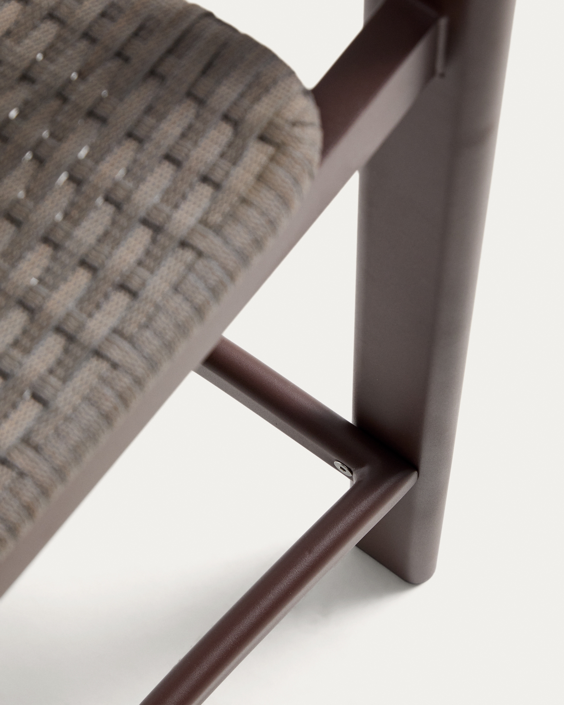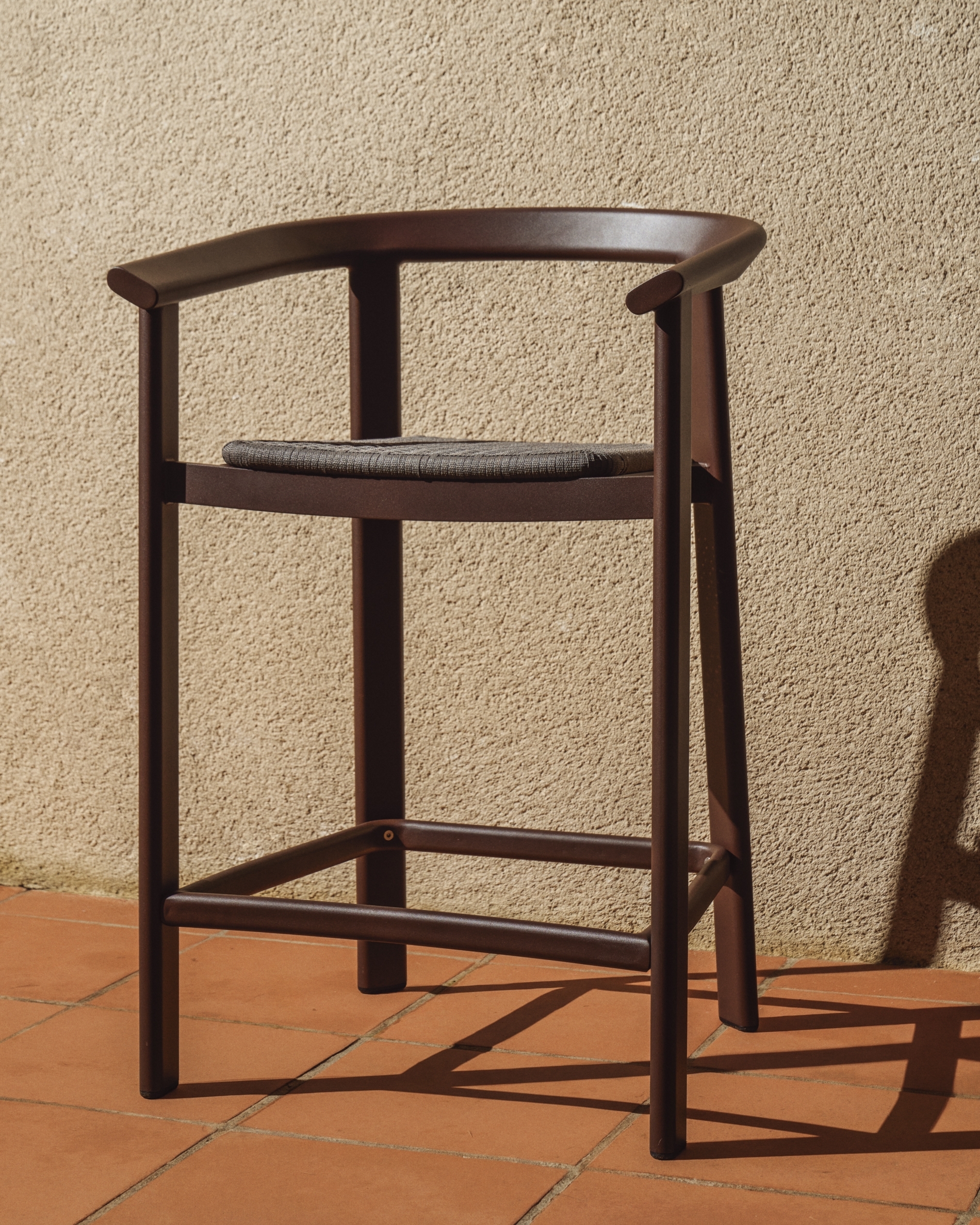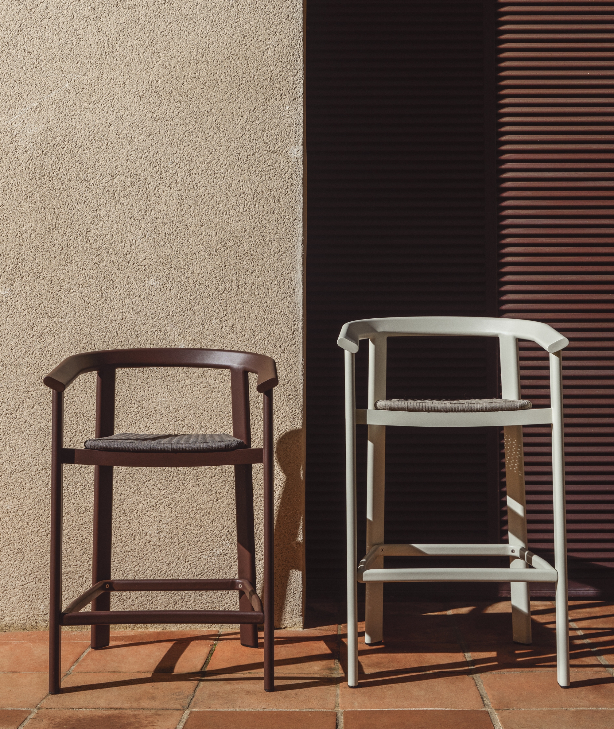 Табурет Erice имеет подлокотники и алюминиевую конструкцию — легкий и прочный материал. Сиденье, обтянутое вручную веревочным шнуром, придает ему текстуру и обработано для защиты от ультрафиолетового излучения, сохраняя свой внешний вид на протяжении длительного времени. Алюминиевая конструкция обладает высокой устойчивостью к ржавчине, коррозии и ультрафиолетовым лучам, что делает ее на 100% подходящей для использования на открытом воздухе. Функциональный и прочный предмет мебели, разработанный для использования как в помещении, так и на открытом воздухе.