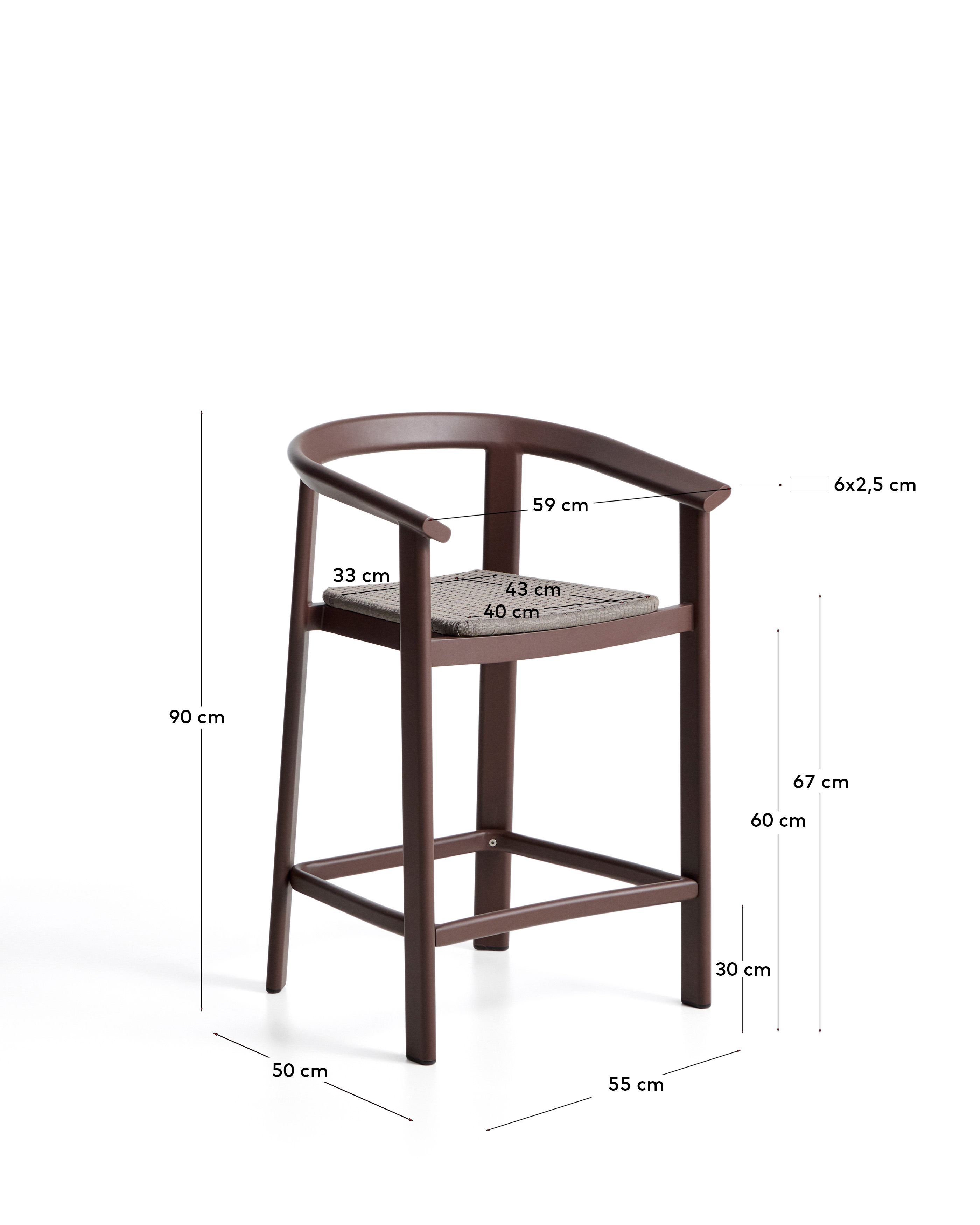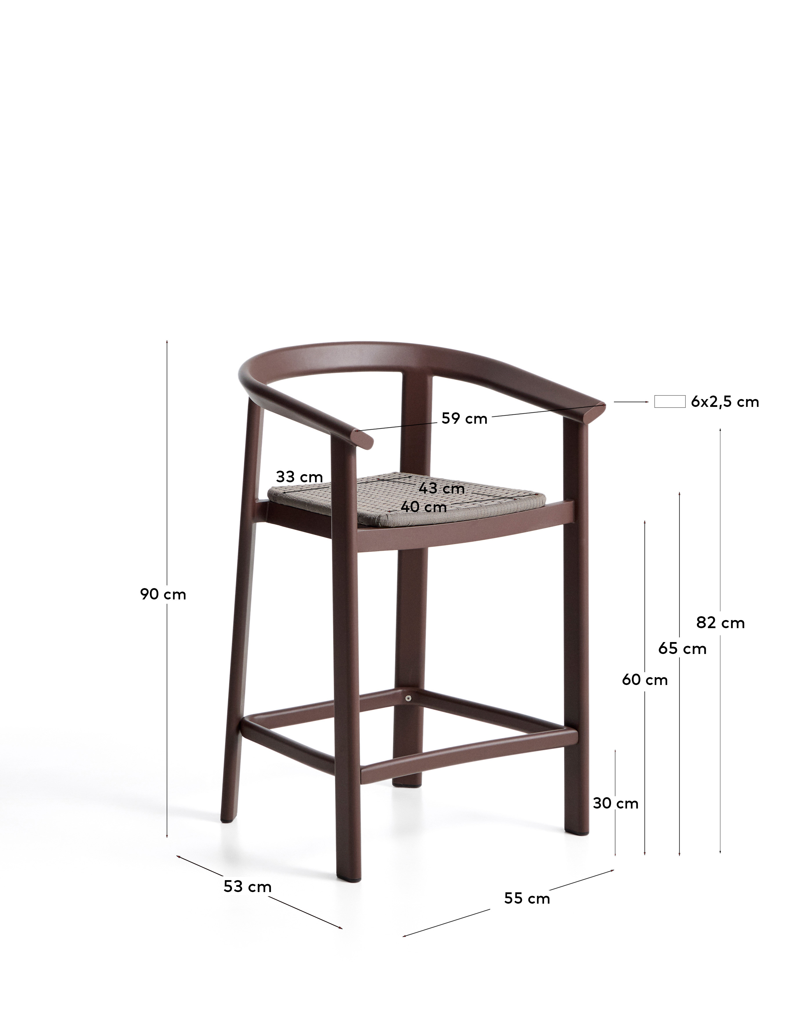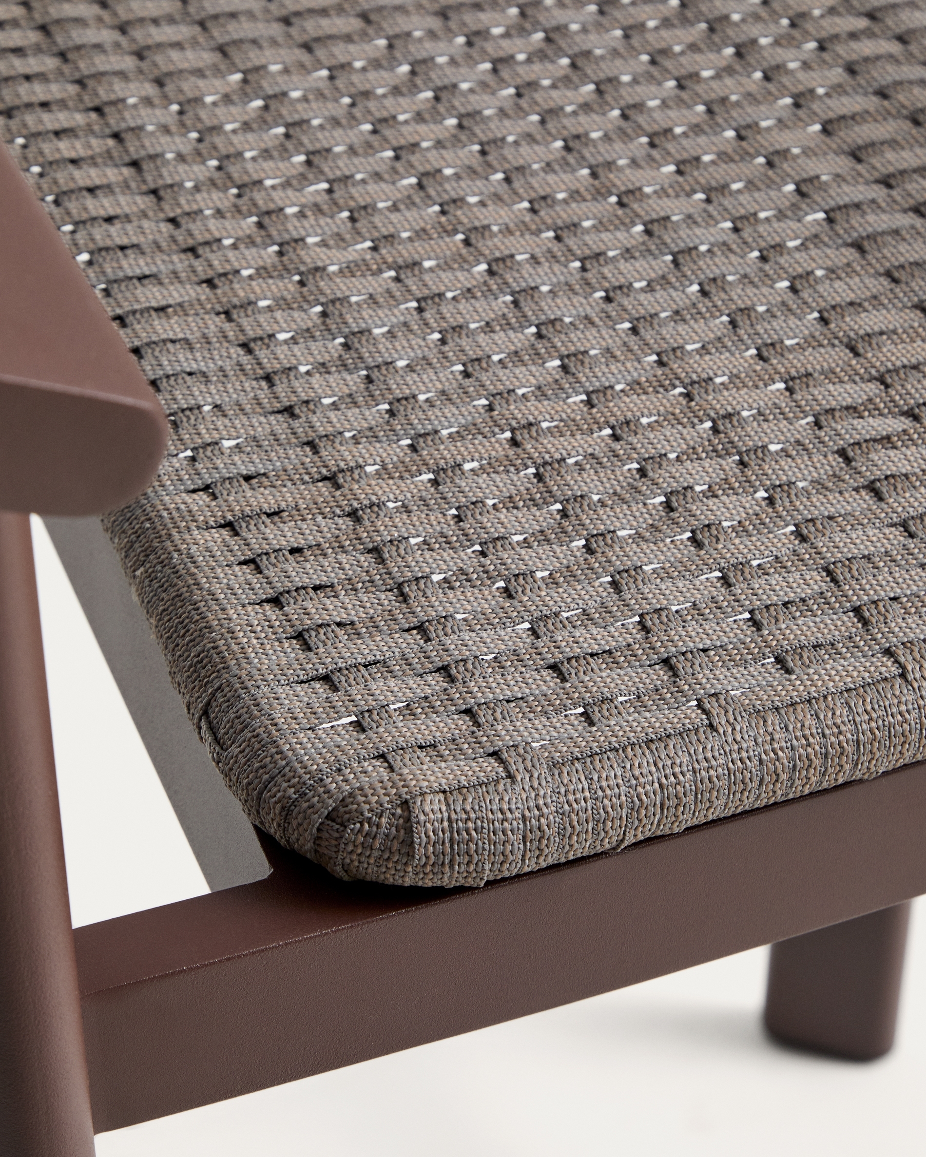 Табурет Erice имеет подлокотники и алюминиевую конструкцию — легкий и прочный материал. Сиденье, обтянутое вручную веревочным шнуром, придает ему текстуру и обработано для защиты от ультрафиолетового излучения, сохраняя свой внешний вид на протяжении длительного времени. Алюминиевая конструкция обладает высокой устойчивостью к ржавчине, коррозии и ультрафиолетовым лучам, что делает ее на 100% подходящей для использования на открытом воздухе. Функциональный и прочный предмет мебели, разработанный для использования как в помещении, так и на открытом воздухе.