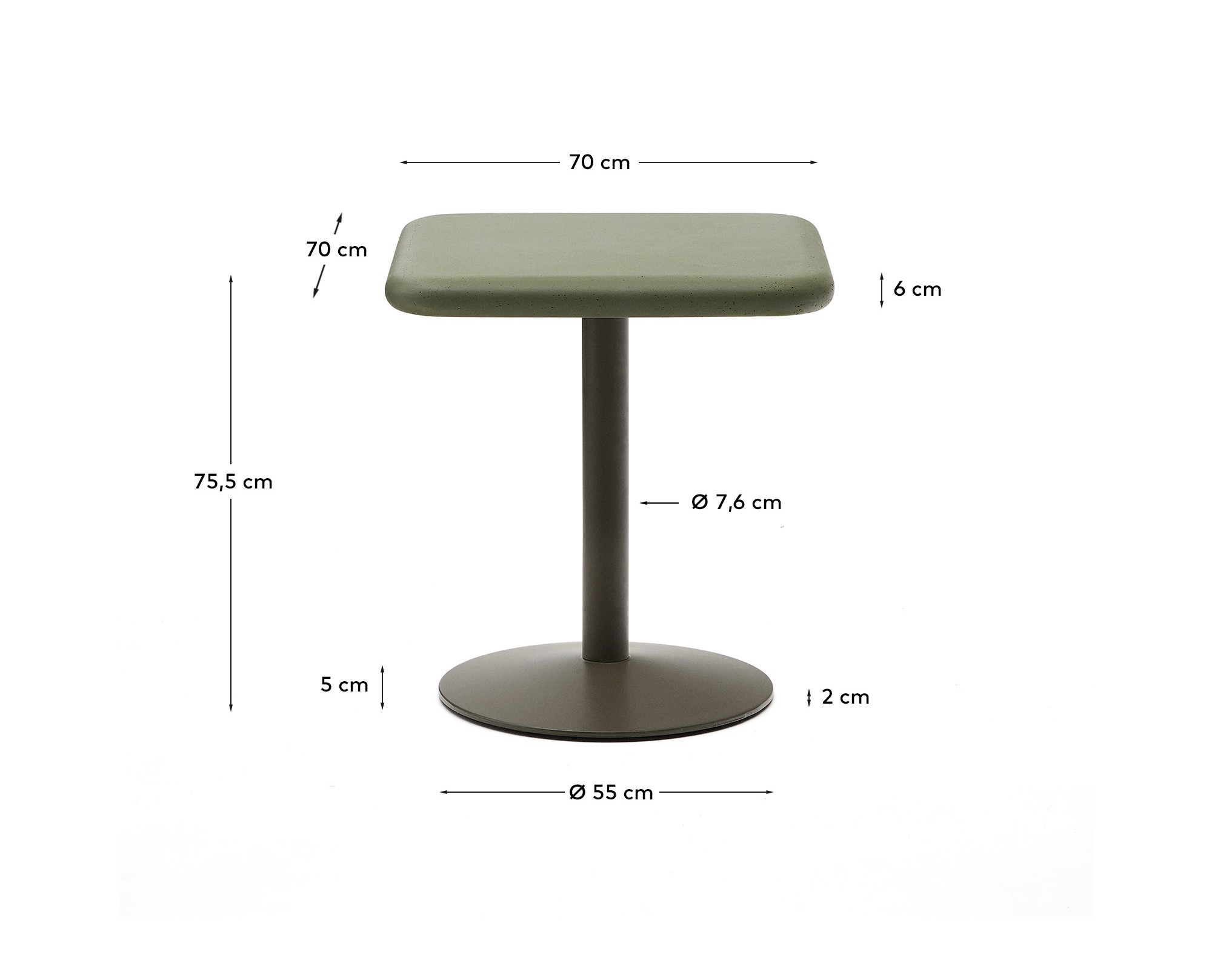 Этот стол отличается прочностью и уникальностью материалов, а также функциональным и инновационным дизайном. Его столешница из цемента отличается уникальной текстурой и современным внешним видом, который придаёт любому помещению характер и аутентичность. Микротрещины и неровности, которые могут появиться из-за перепадов температуры, являются частью его сущности, придавая каждому изделию особый вид без ущерба для прочности и долговечности. Основание из высокопрочного железа, окрашенное распылением, обеспечивает максимальную устойчивость и долговечность. Его прочная конструкция обеспечивает исключительную надежность, позволяя использовать как в помещении, так и на открытом воздухе. Эта комбинация материалов предлагает функциональное решение, готовое выдержать интенсивное использование в условиях с высокими требованиями. Чтобы сохранить его внешний вид и долговечность, мы рекомендуем защищать его от непогоды водонепроницаемым чехлом в осенние и зимние месяцы. Мы также рекомендуем наносить защитную пленку для камня два раза в год, что поможет сохранить его первоначальный внешний вид и конструктивные характеристики. Этот стол отличается своей универсальностью. Соединение между столешницей и основанием было разработано таким образом, чтобы обеспечить максимальную персонализацию, позволяя комбинировать столешницы и основания. Благодаря этому решению стол становится универсальным и динамичным элементом, идеально подходящим для заведений общественного питания и коммерческих помещений. Возможность легко изменять его внешний вид позволяет адаптировать его к различным стилям или функциональным потребностям без необходимости вносить серьезные изменения. Благодаря неподвластному времени дизайну, высококачественным материалам и возможности персонализации это идеальный вариант для тех, кто ищет эстетику и функциональность в одном продукте.