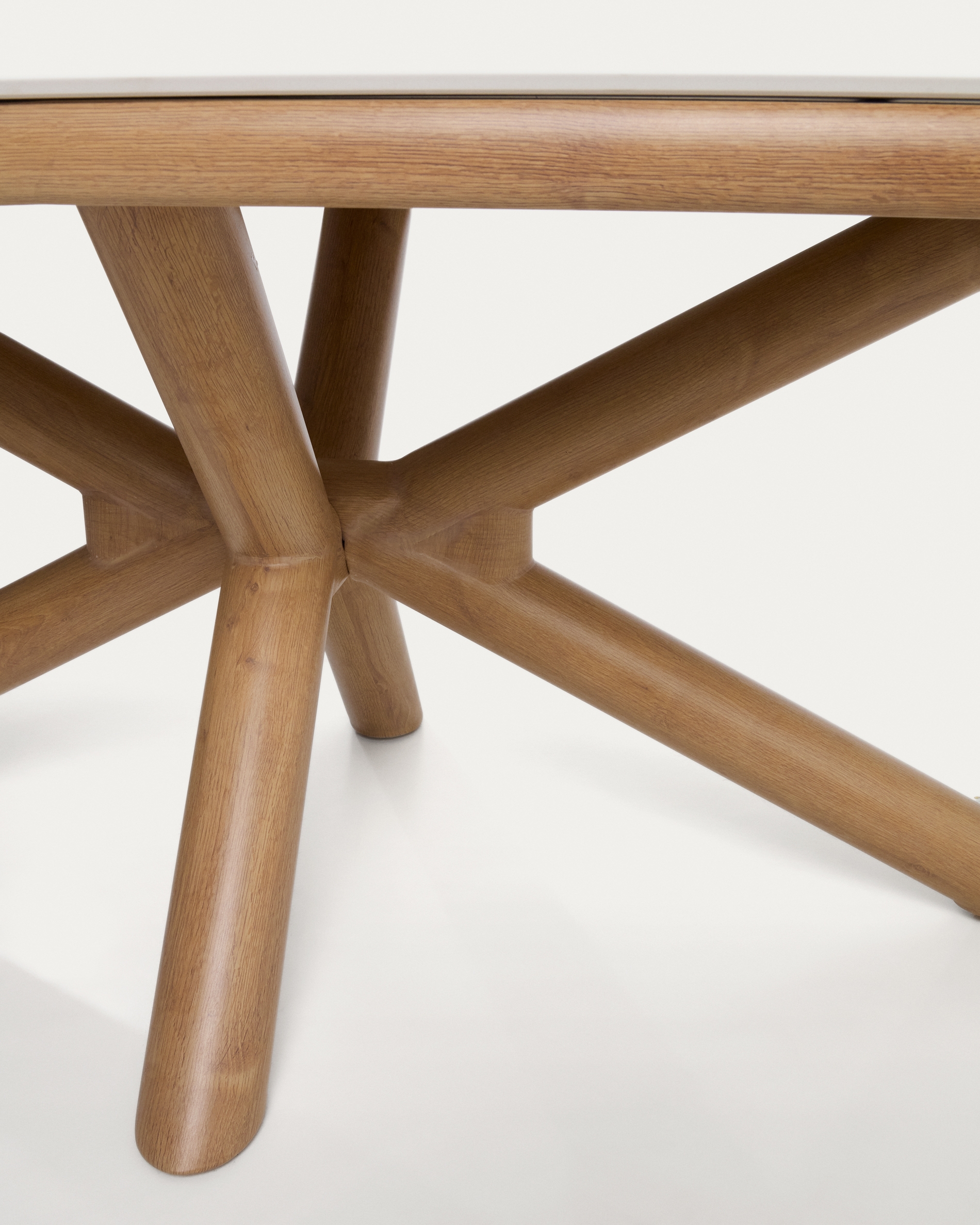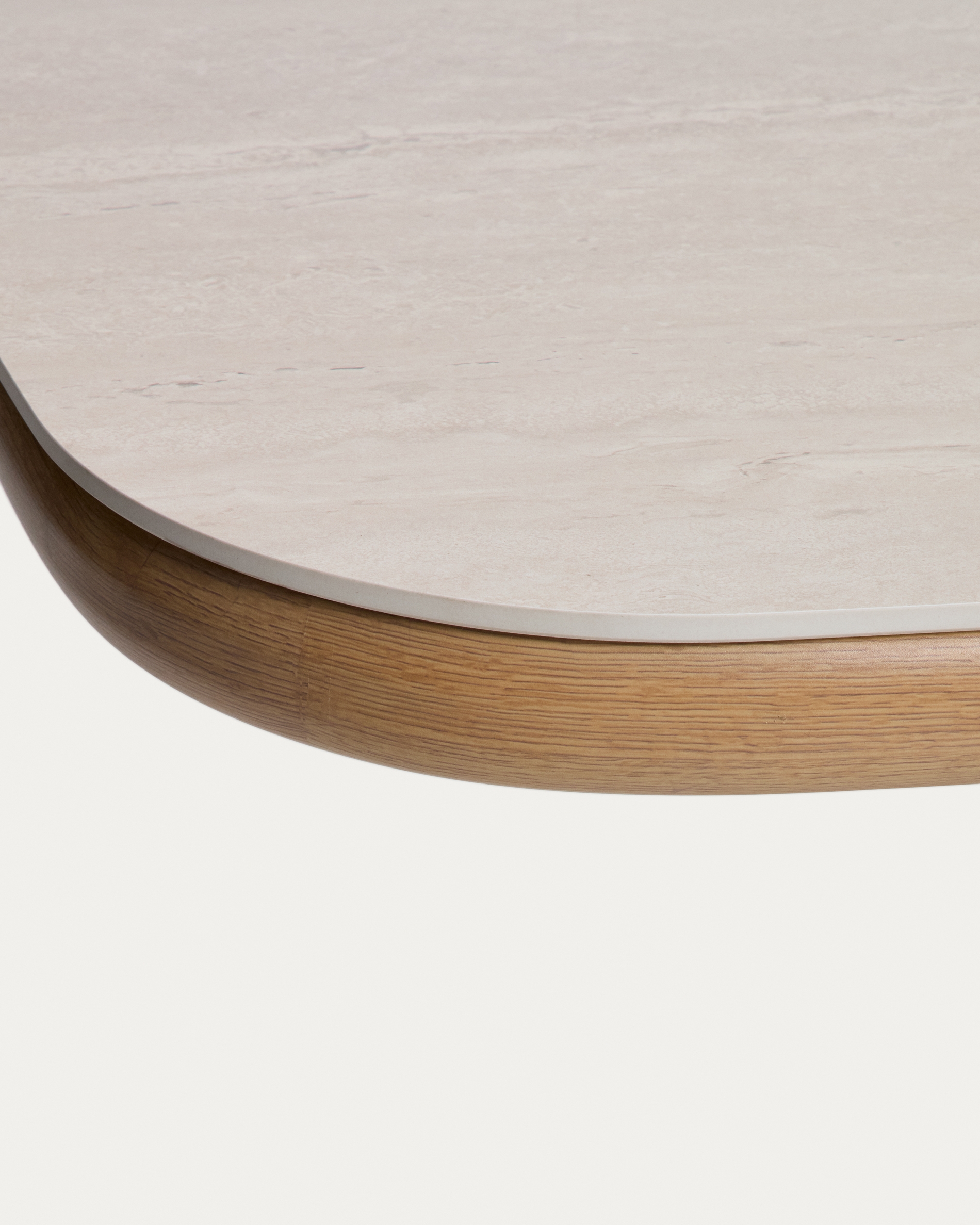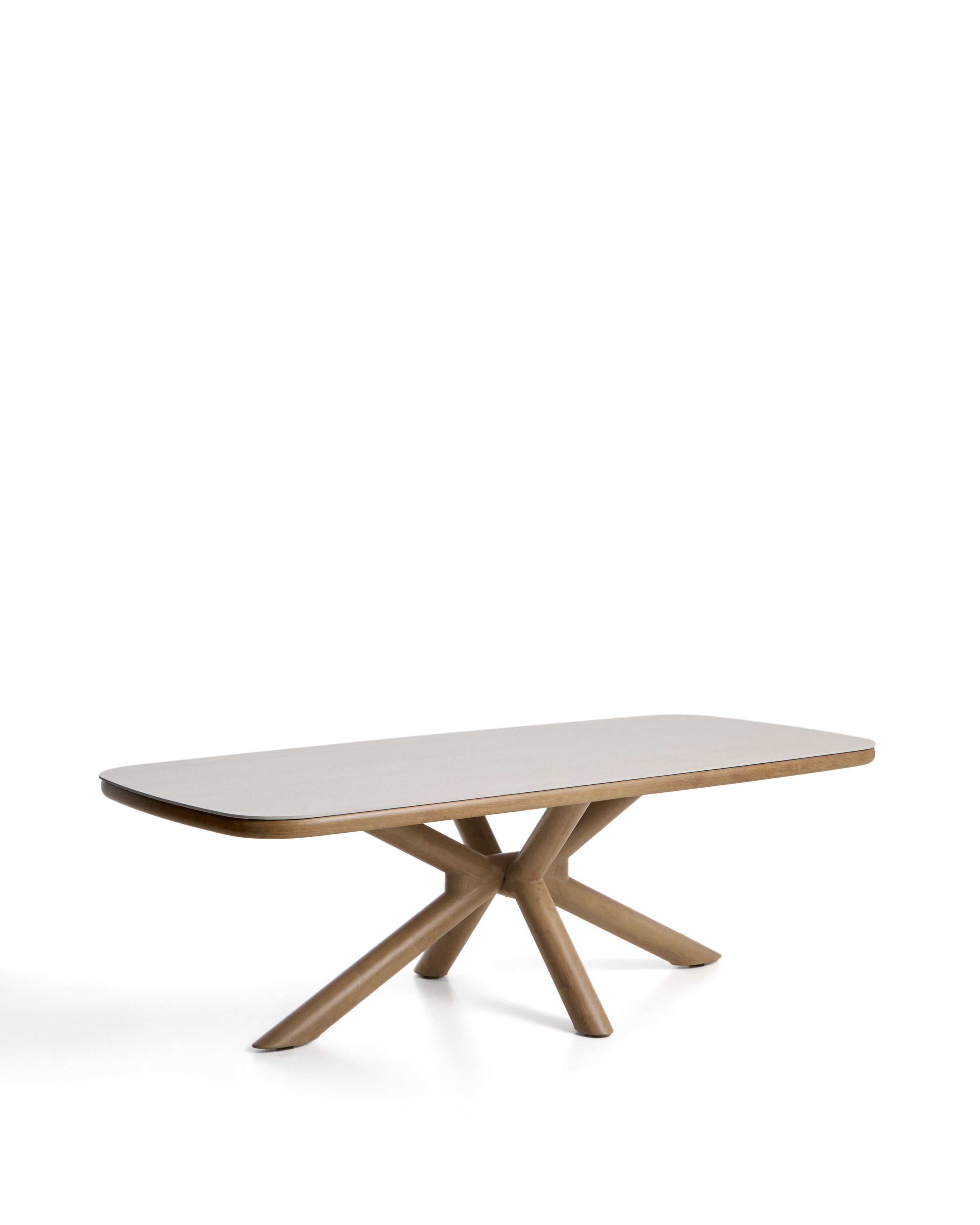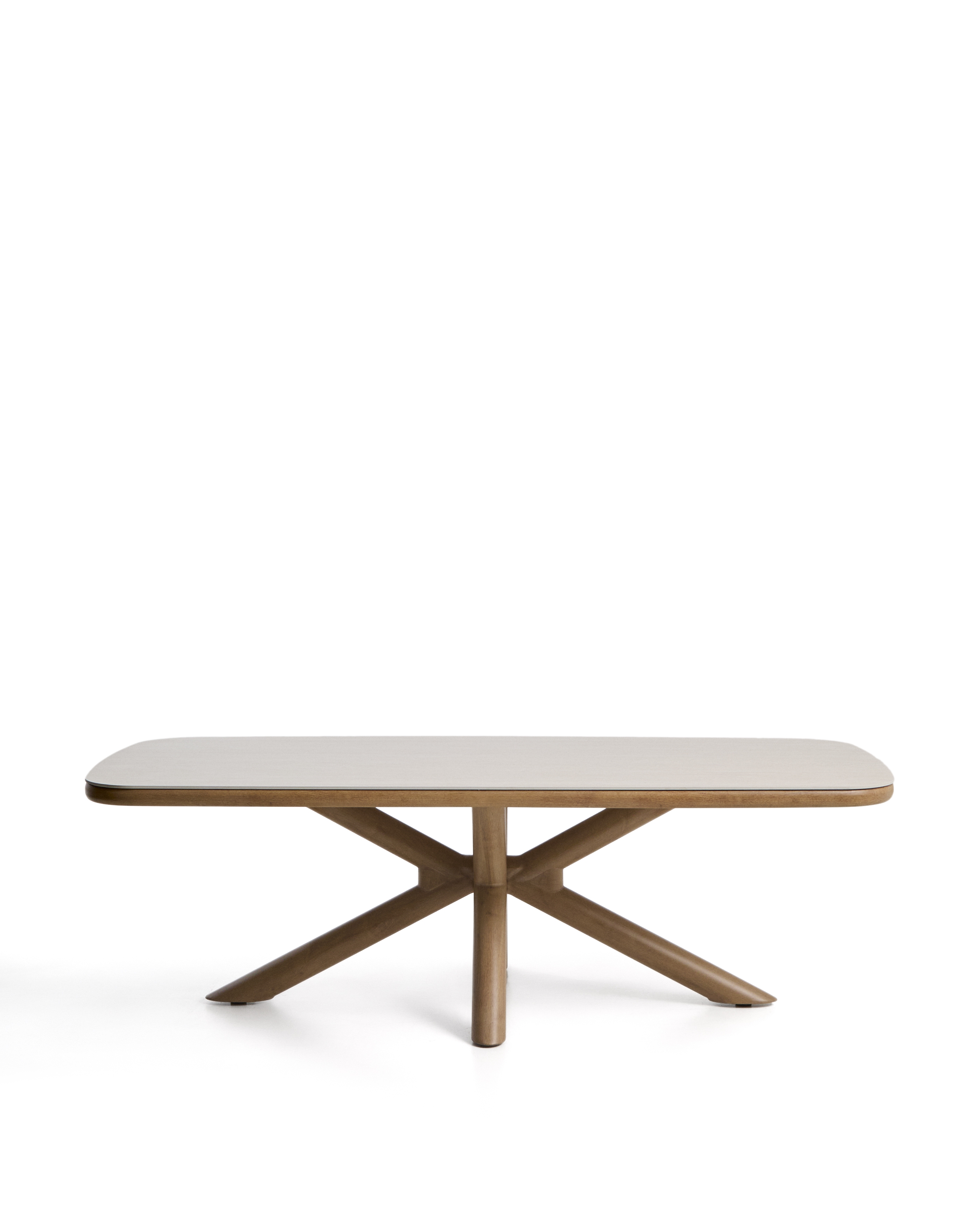 Стол Mirtia сочетает в себе прочные материалы и теплые оттенки отделки, создавая изделие, идеально подходящее для отдыха на открытом воздухе. Столешница из спеченного камня отличается превосходной износостойкостью и приятной на ощупь поверхностью, которая водонепроницаема, устойчива к царапинам, пятнам и экстремальным температурам. Алюминиевая конструкция с отделкой под дерево обеспечивает легкость и устойчивость, сохраняя при этом визуальную теплоту дерева. Продумана каждая деталь, даже пластиковые защитные накладки на ножках, которые помогают сохранить стол.