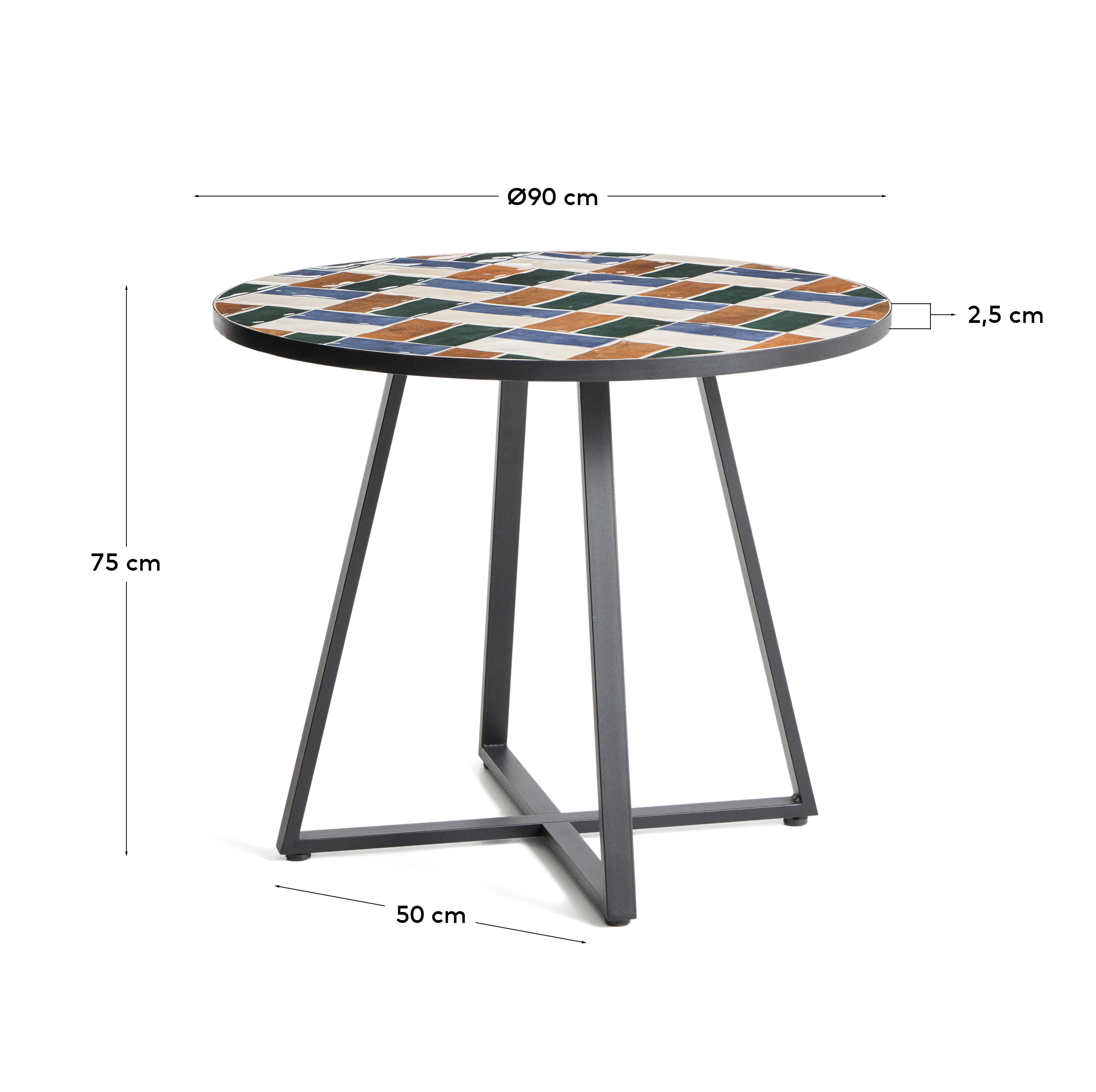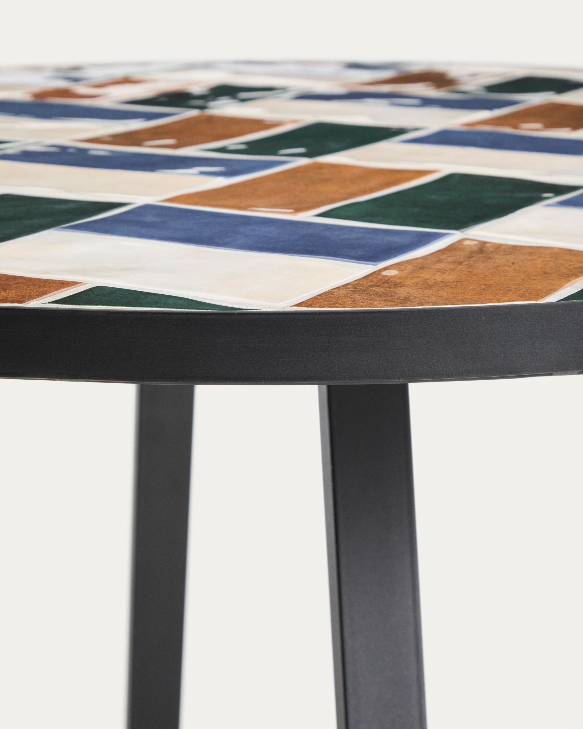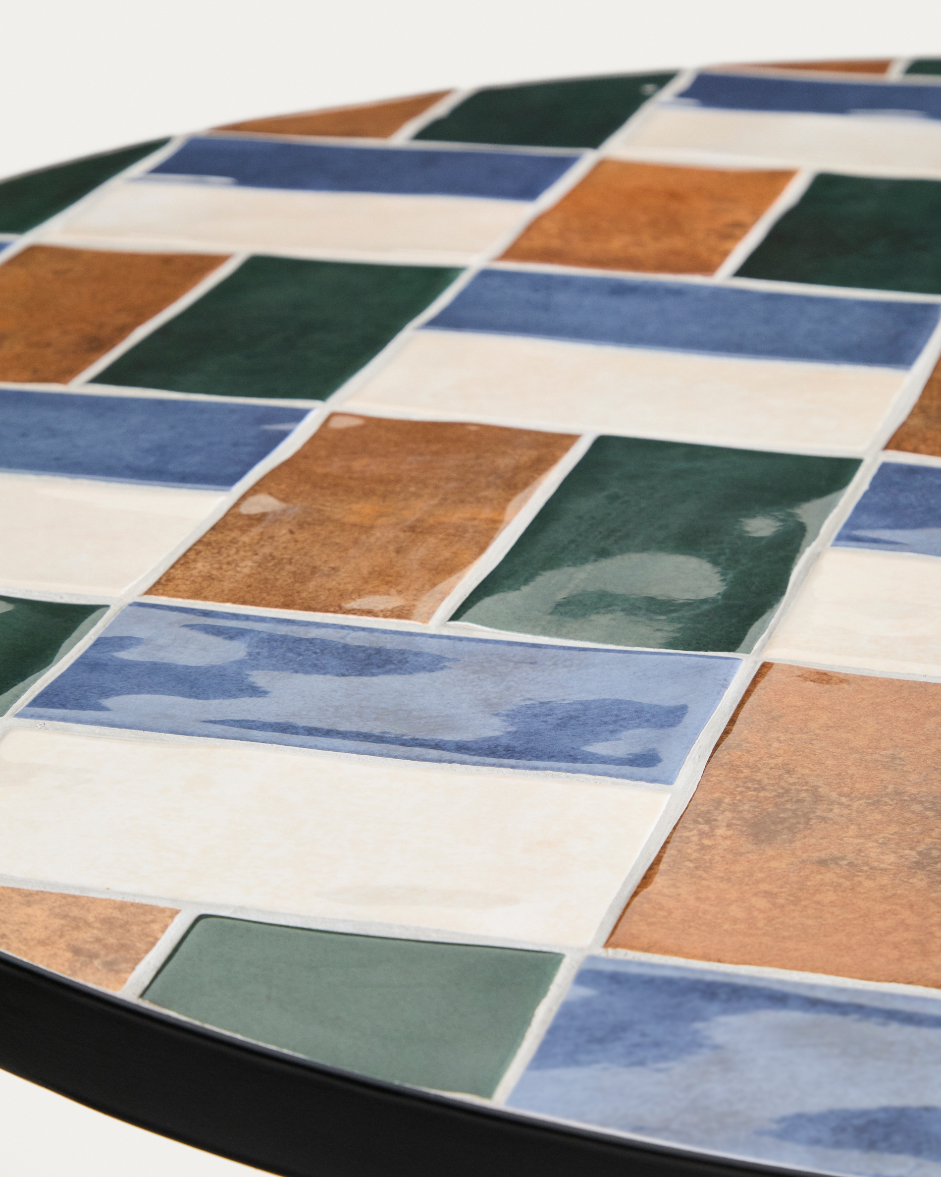 Коллекция Tella переосмысливает дизайн уличных столов, используя прочные материалы и ручную отделку. Каждый стол имеет столешницу, выполненную вручную из плитки, что придает ей уникальную текстуру. Конструкция из оцинкованной стали обеспечивает высокую устойчивость к ржавчине и коррозии, что делает изделие долговечным как в помещении, так и на открытом воздухе. Ножки оснащены пластиковыми защитными накладками, которые защищают пол и повышают устойчивость.