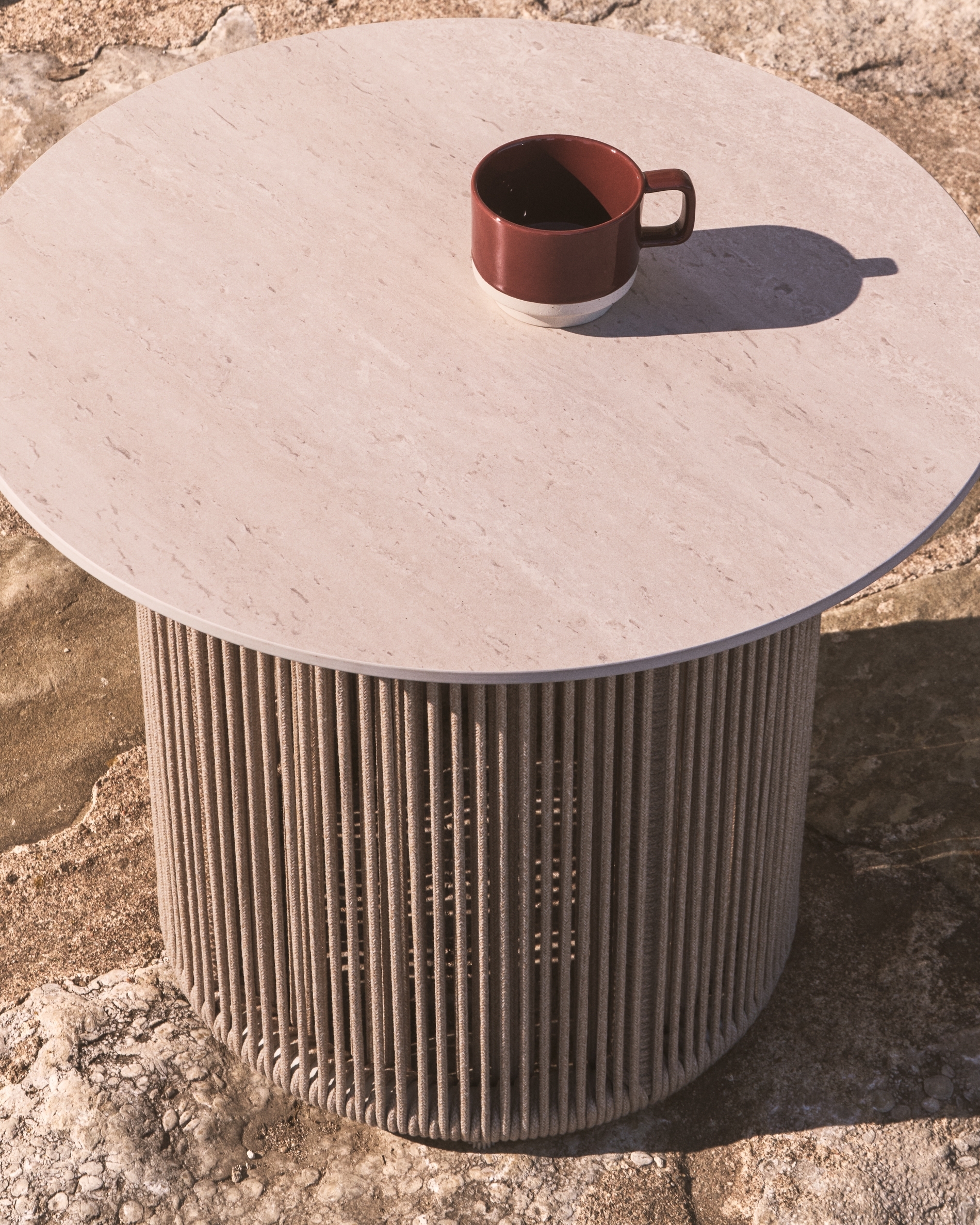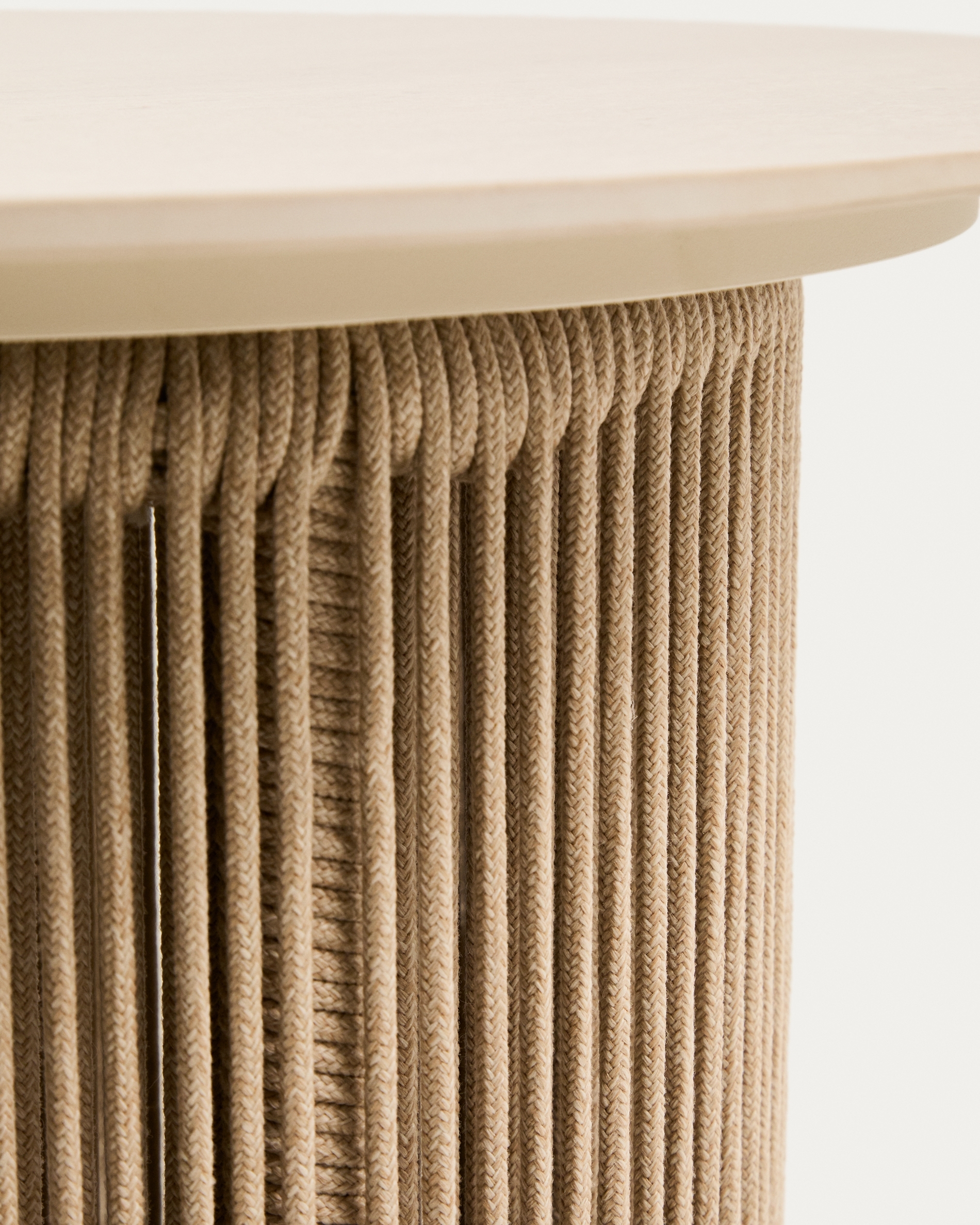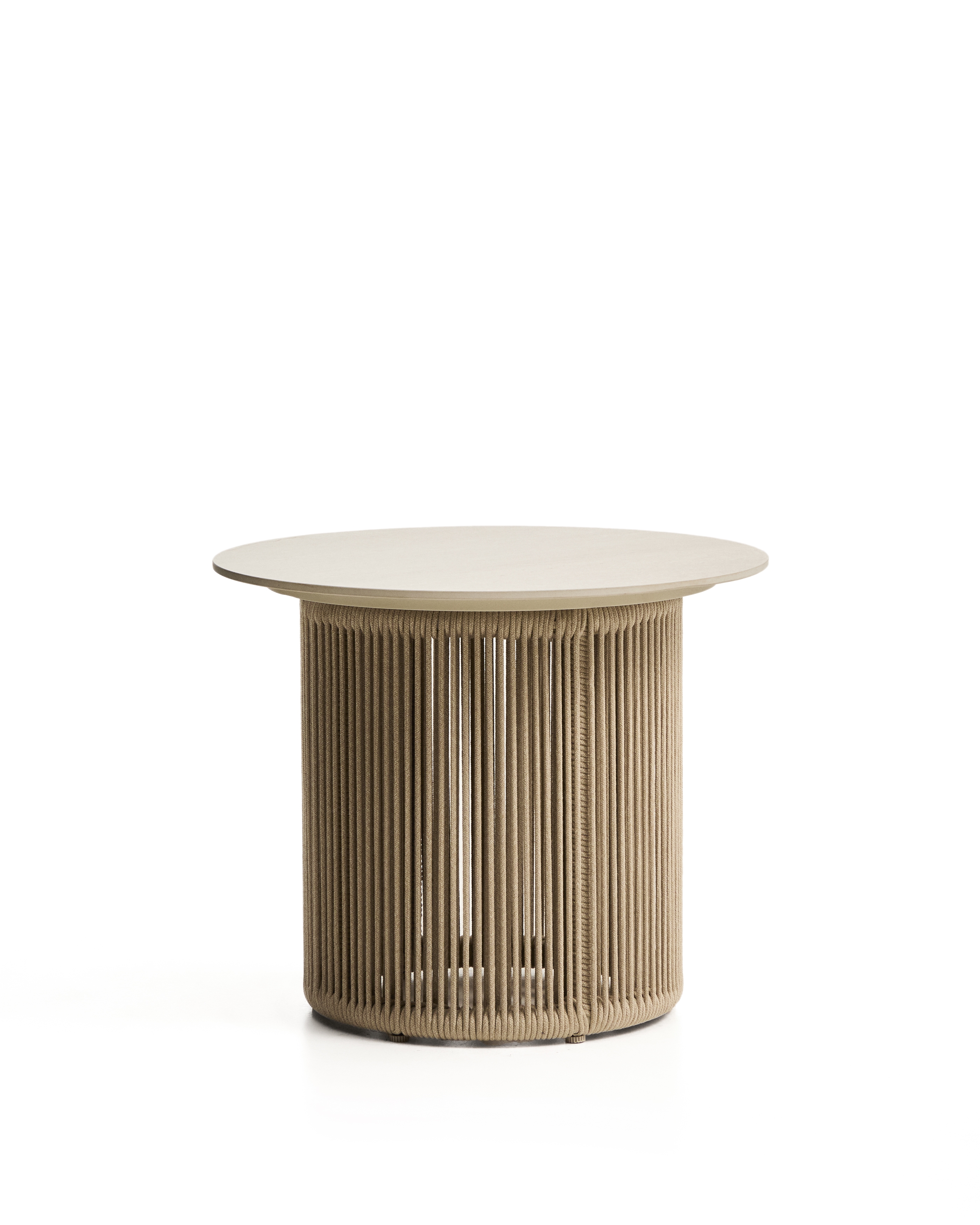 Журнальный столик Orosei сочетает в себе легкость и устойчивость в предмете, предназначенном для спокойного наслаждения на свежем воздухе. Его алюминиевая структура обеспечивает долговечность без ущерба для аккуратной эстетики, в то время как основа шнура из экрю ручной работы добавляет текстуру и тепло. Тканый веревочный шнур обработан так, чтобы выдерживать воздействие солнца и сохранять свой внешний вид с течением времени. Регуляторы у основания ножек позволяют регулировать устойчивость на неровных поверхностях.