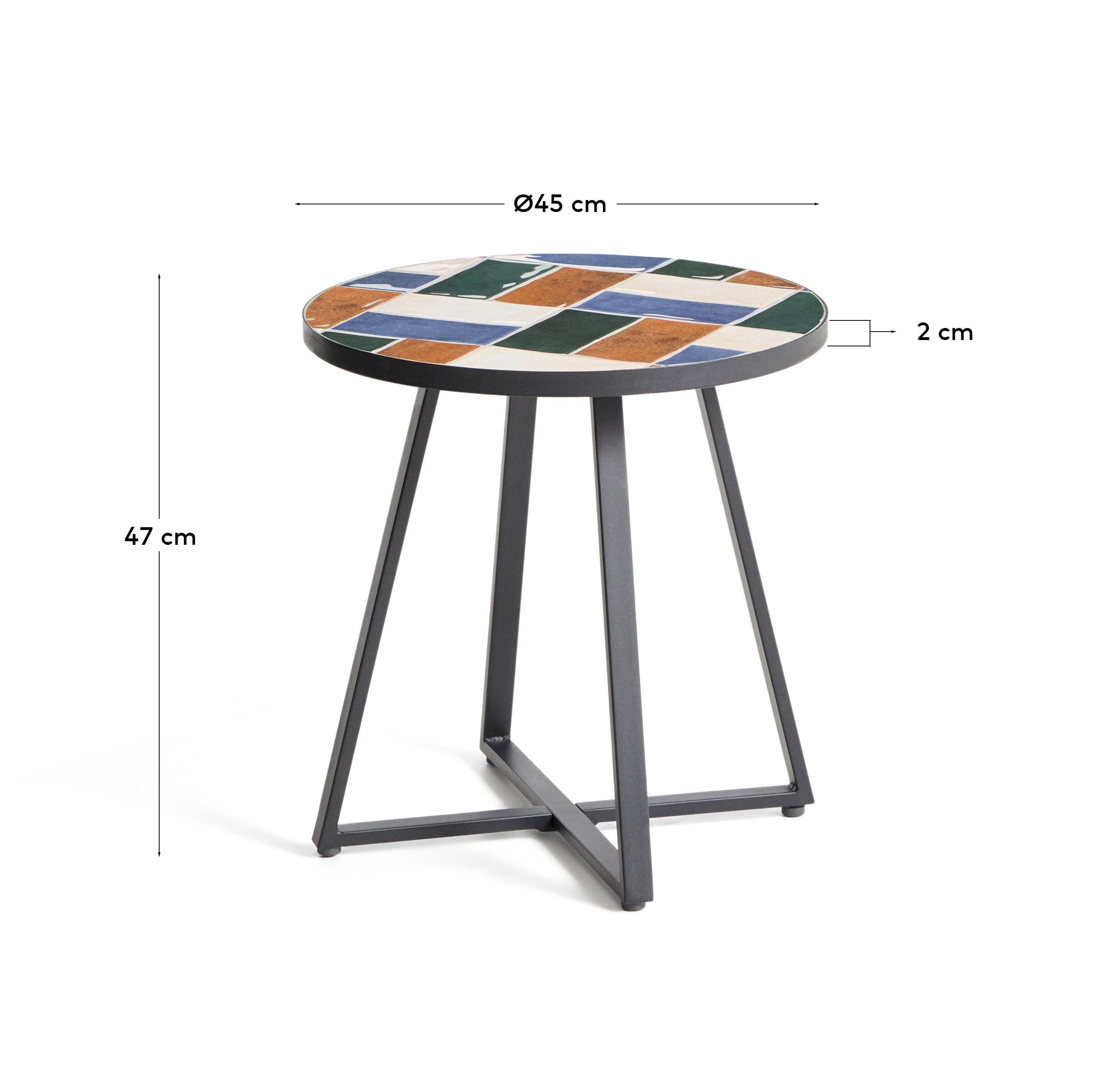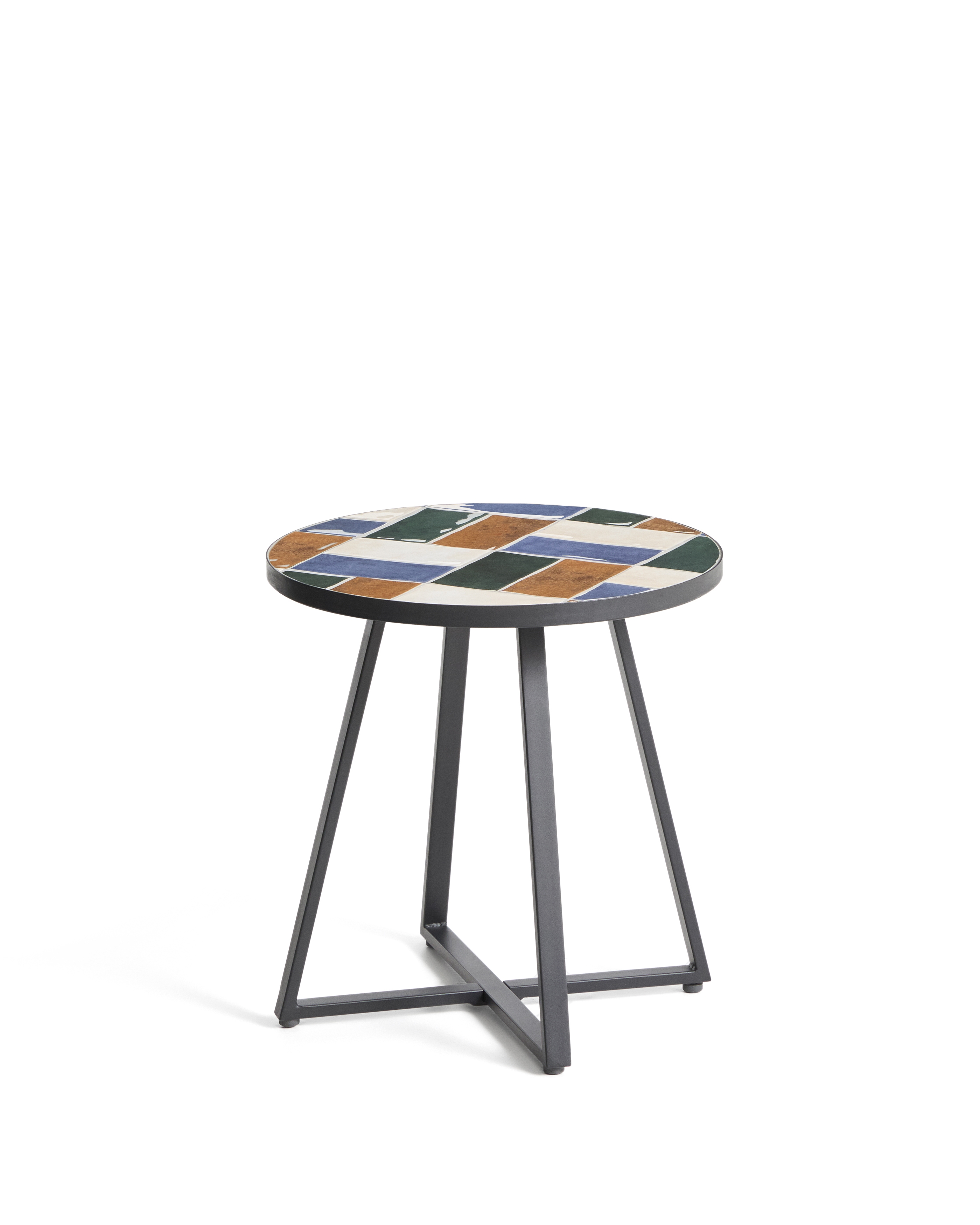 Коллекция Tella переосмысливает дизайн уличных столов, используя прочные материалы и ручную отделку. Каждый стол имеет столешницу, выполненную вручную из плитки, что придает ей уникальную текстуру. Конструкция из оцинкованной стали обеспечивает высокую устойчивость к ржавчине и коррозии, что делает изделие долговечным как в помещении, так и на открытом воздухе. Ножки оснащены пластиковыми защитными накладками, которые защищают пол и повышают устойчивость.