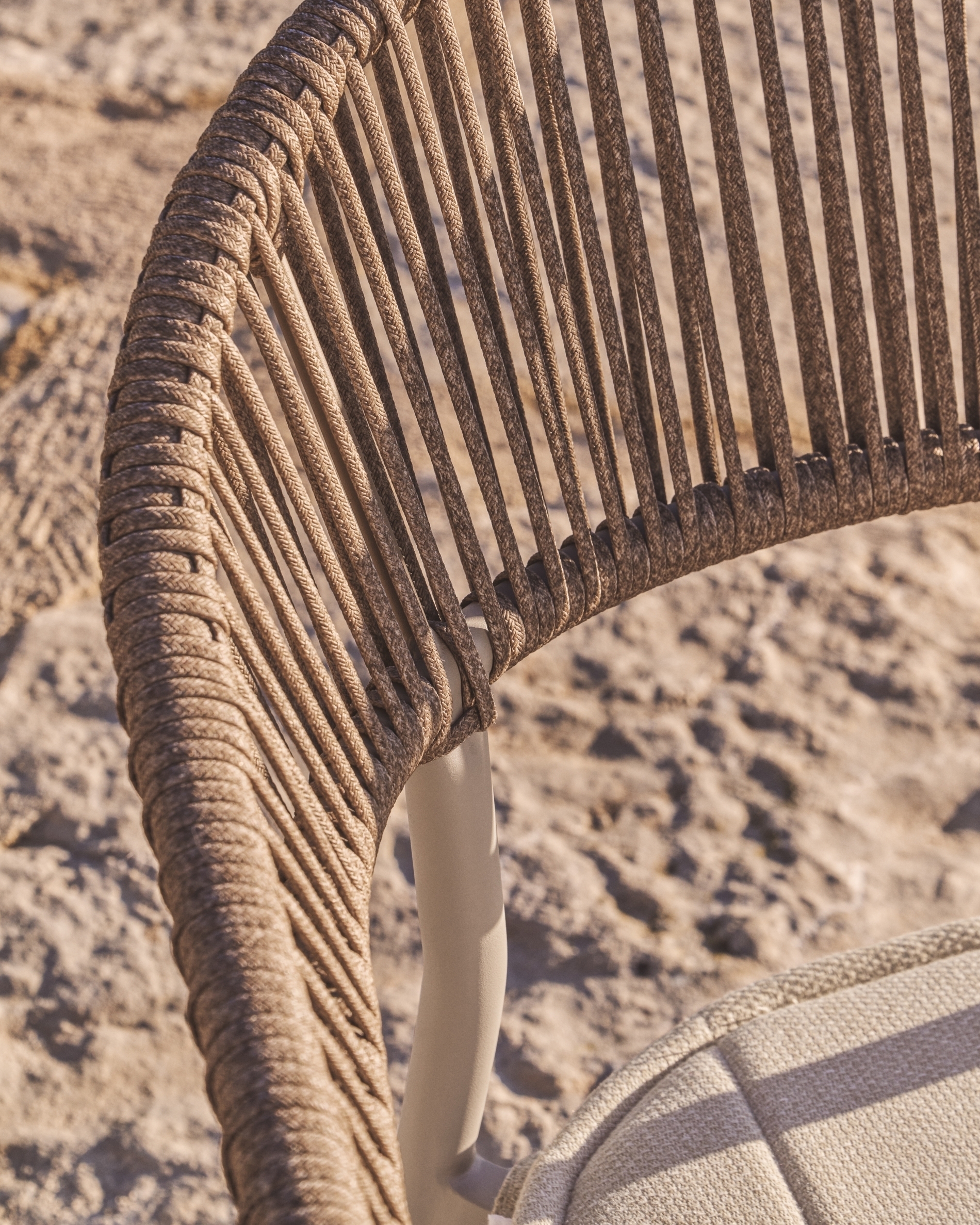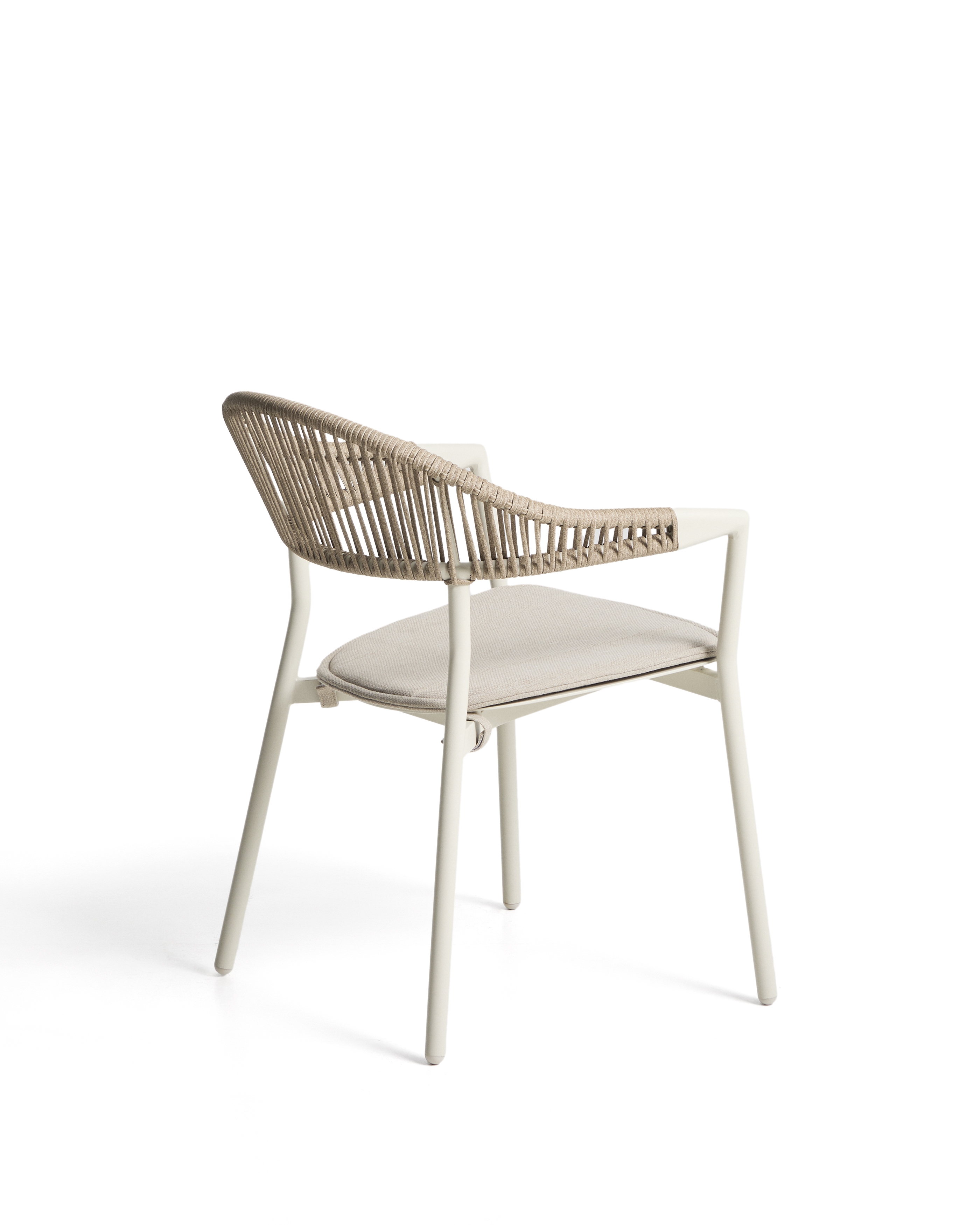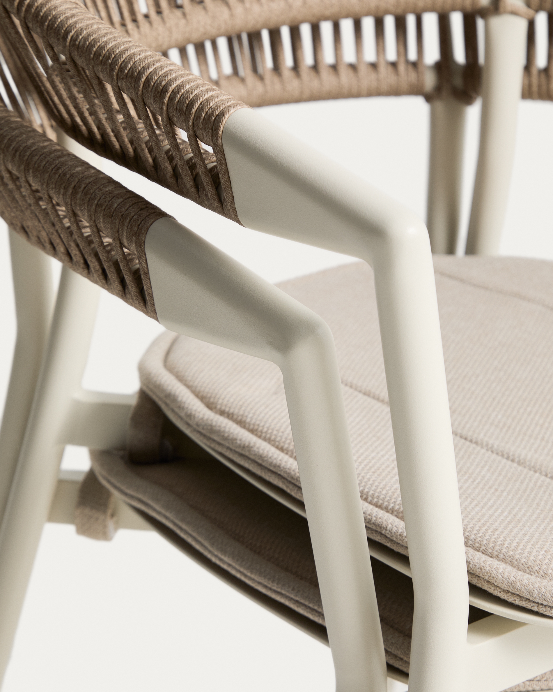 Уличный стул Alimia из алюминия цвета экрю с бежевой веревкой