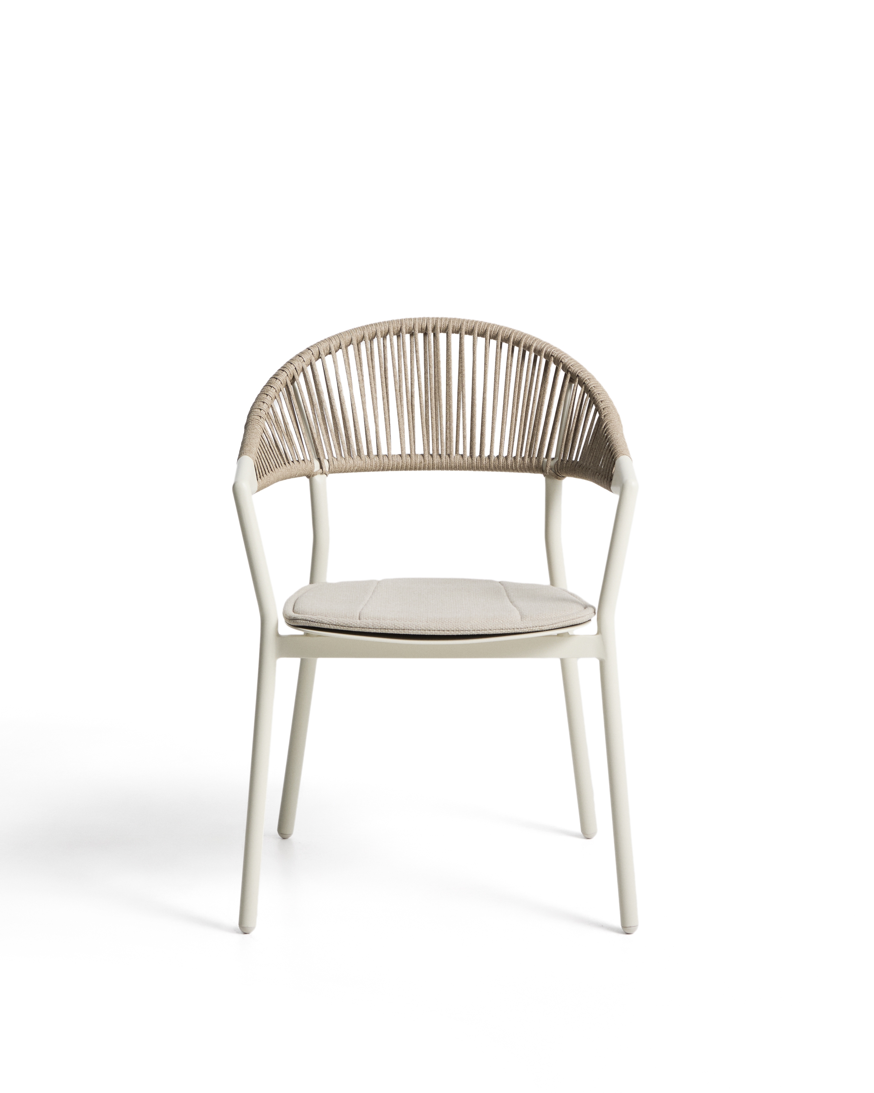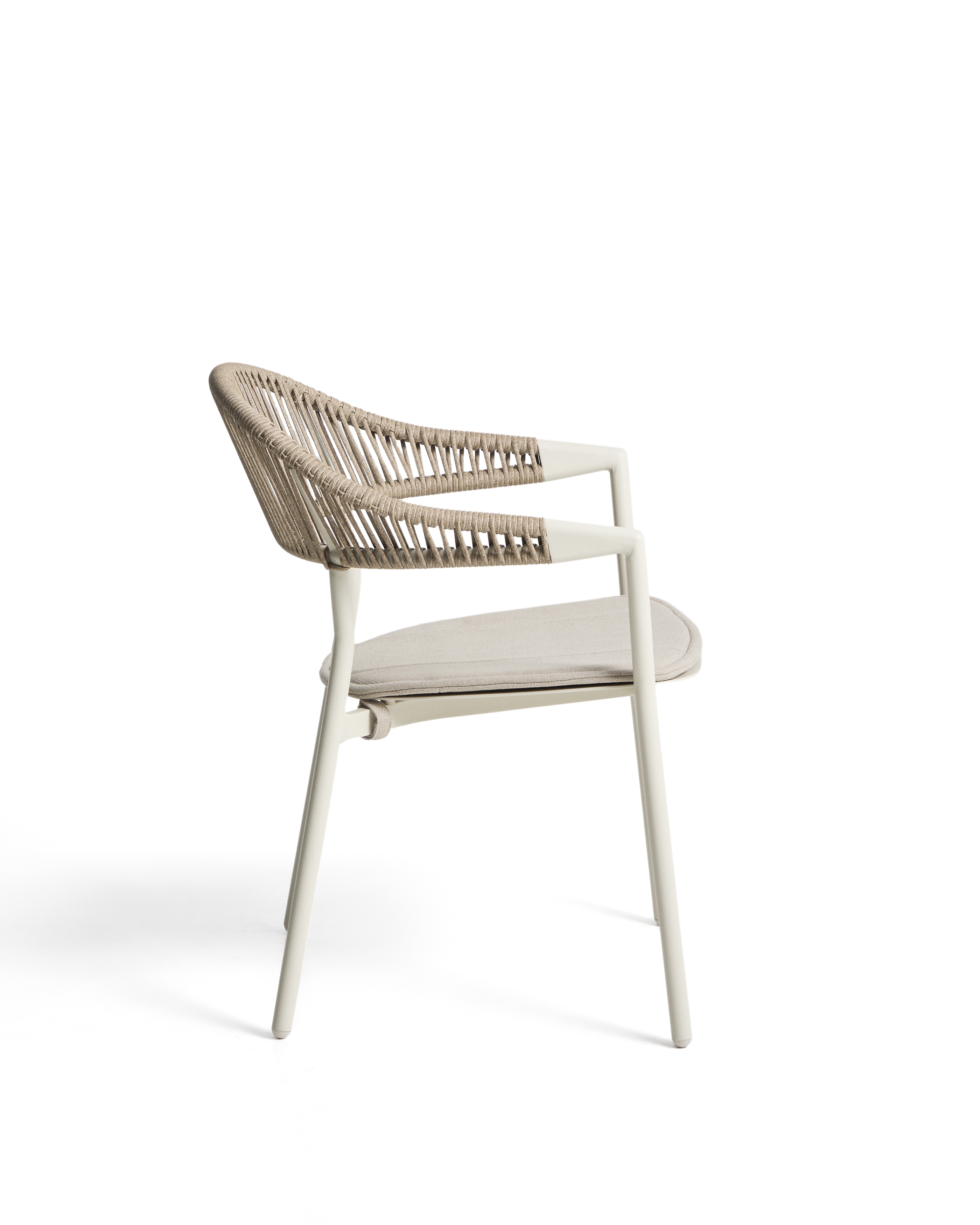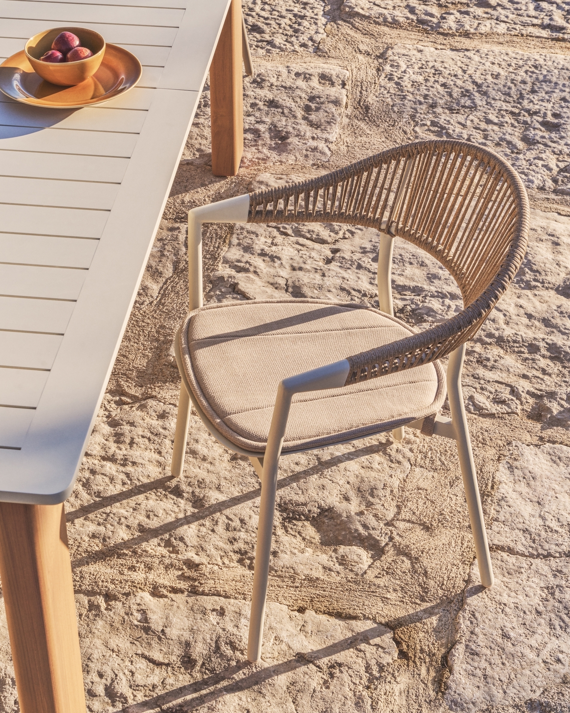 Уличный стул Alimia из алюминия цвета экрю с бежевой веревкой