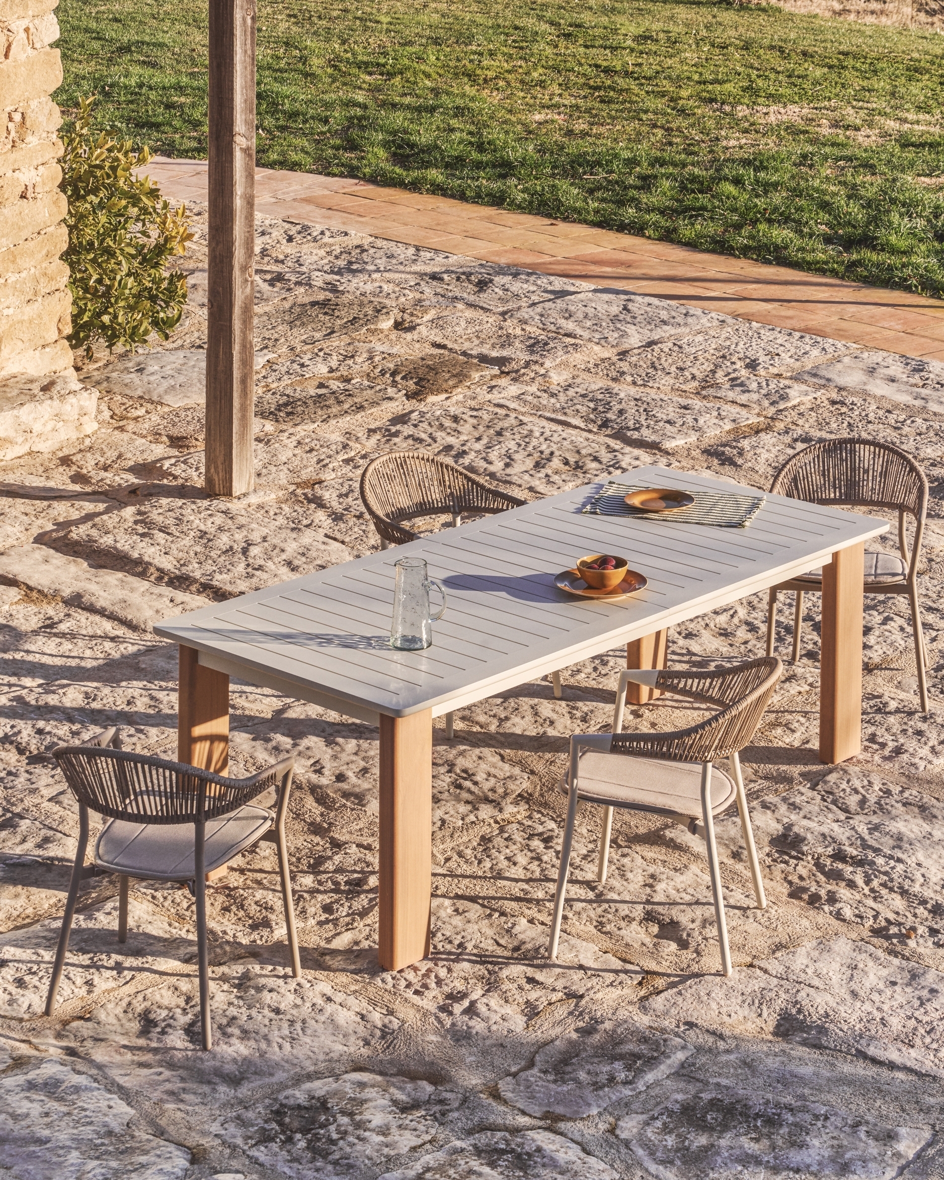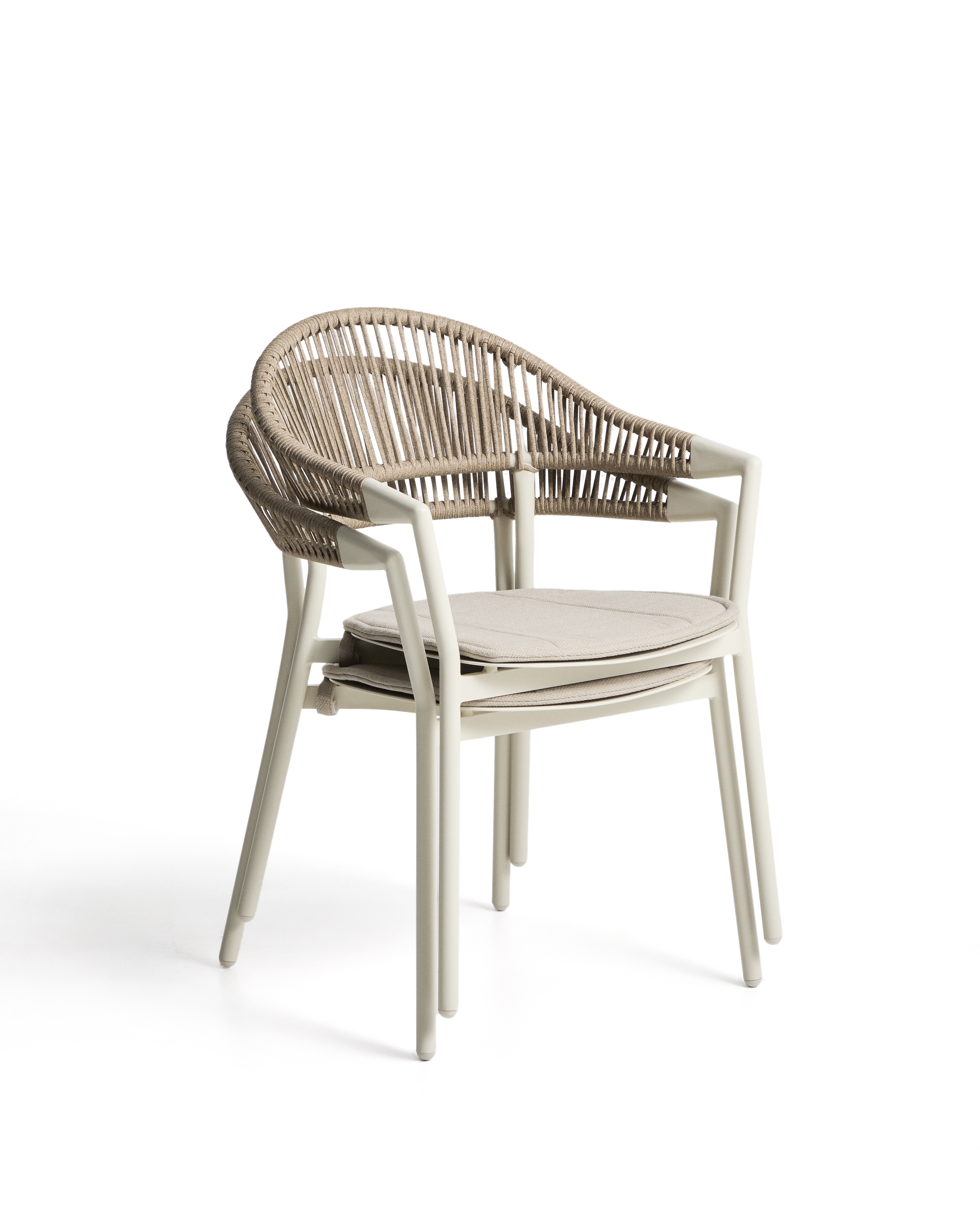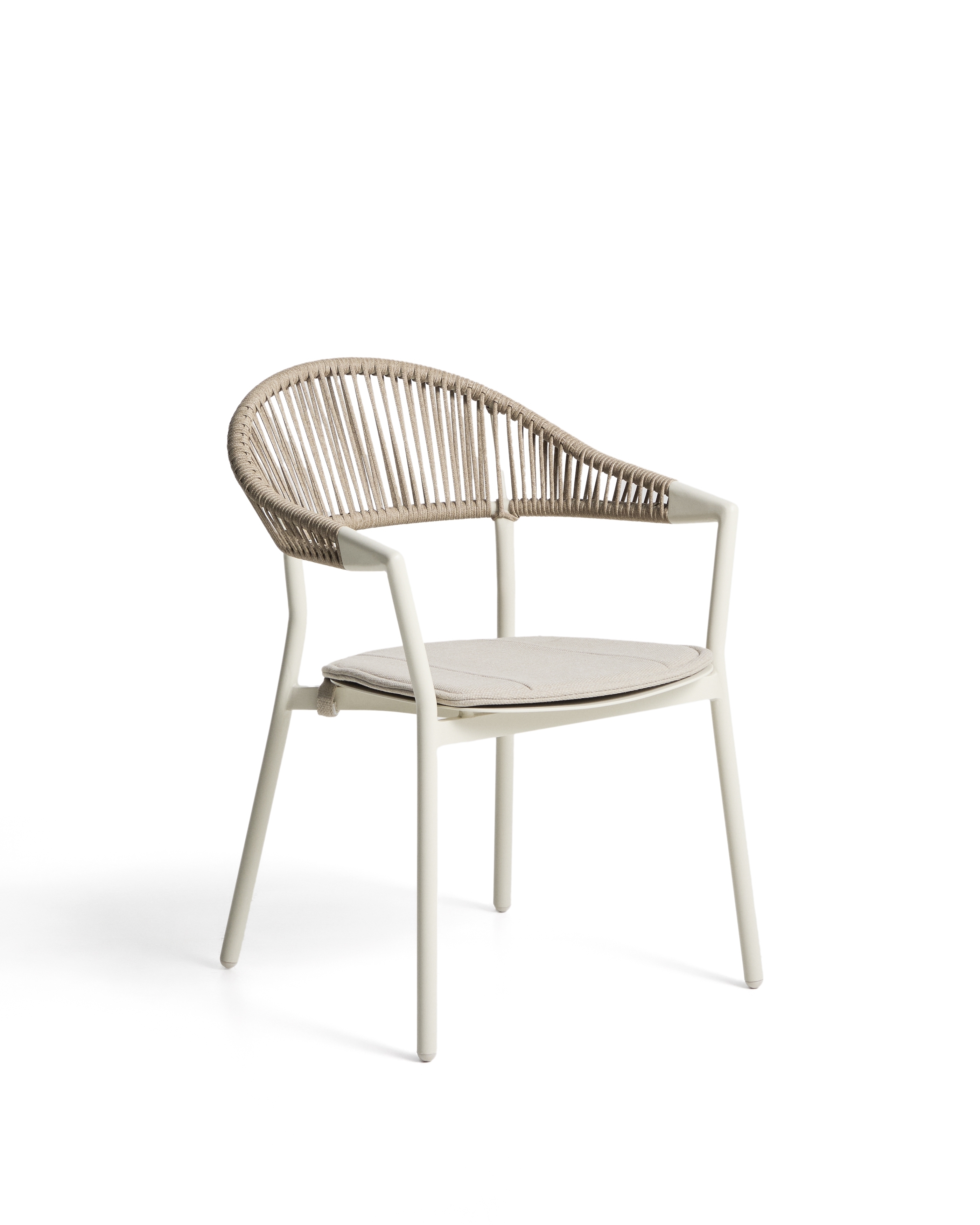 Стул Alimia сочетает в себе легкость и долговечность. Его алюминиевая структура устойчива к ржавчине, коррозии и воздействию солнца. Сплинка соткана вручную из синтетического шнура, добавляя текстуру и визуальный комфорт. Включает в себя подушку сиденья для дополнительного комфорта, которую мы рекомендуем хранить в дождливые дни. Его штабелируемая конструкция оптимизирует пространство, когда он не используется, а ножки оснащены пластиковыми ограждениями, которые помогают защитить пол и поддерживать поверхности в хорошем состоянии.