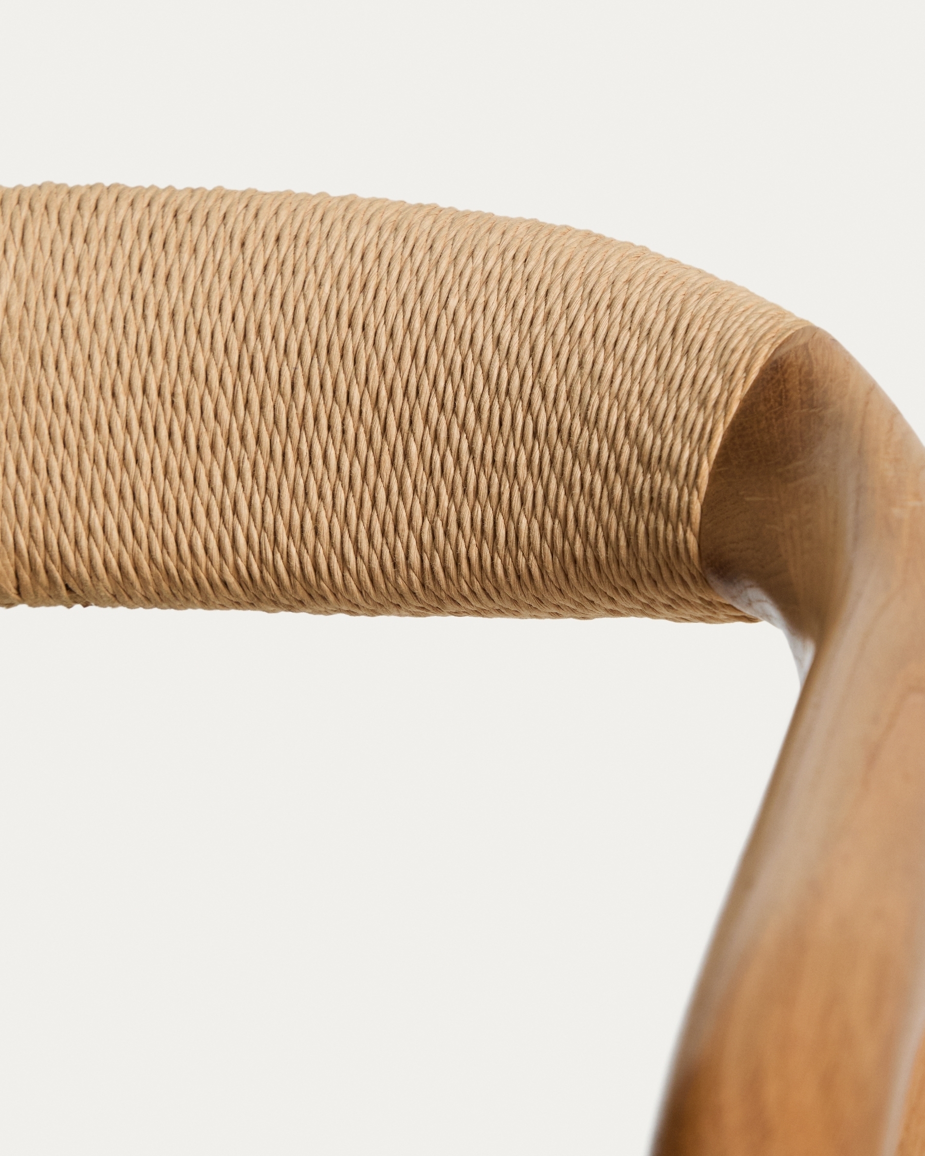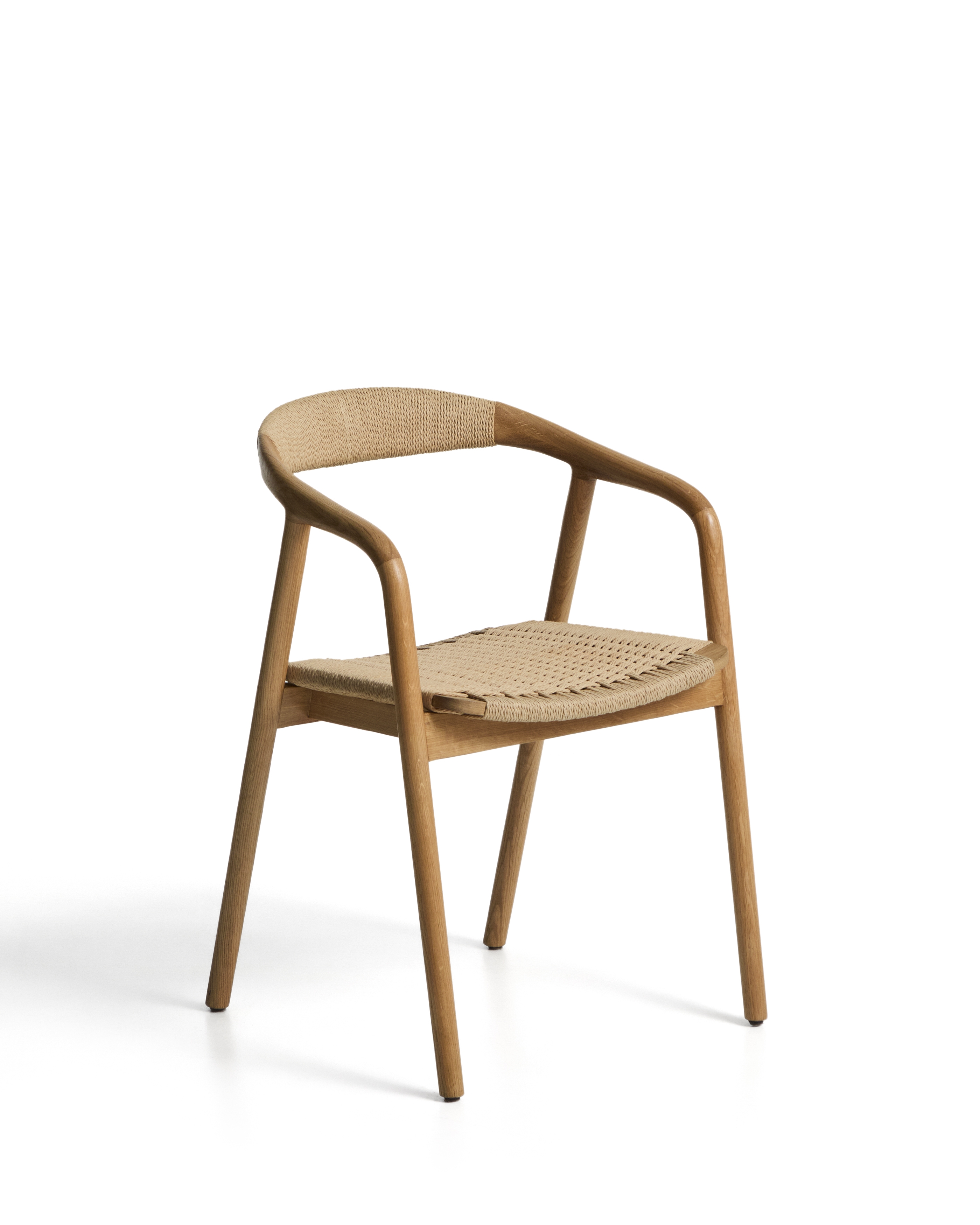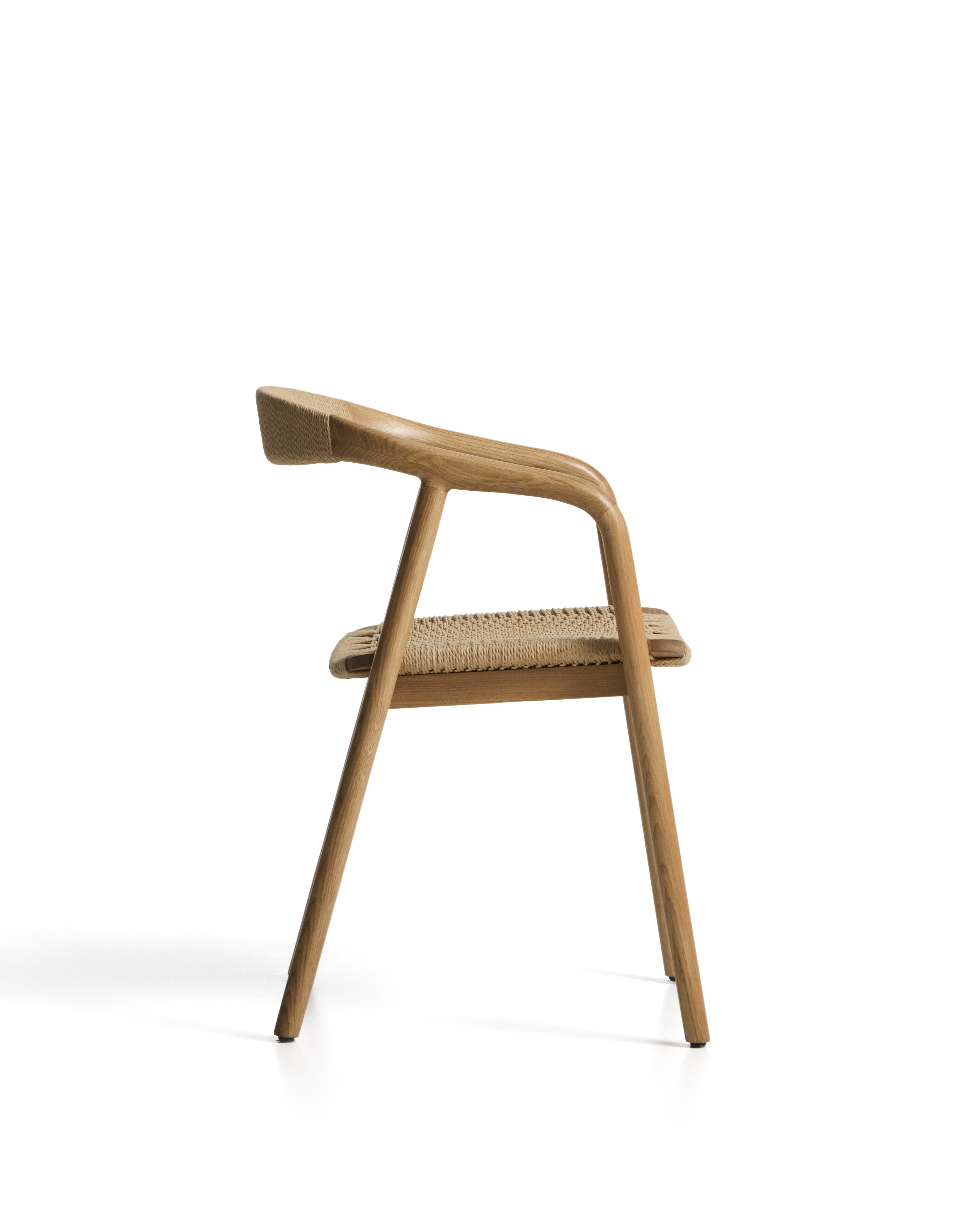 Derile сочетает в себе ручную работу и сбалансированные пропорции в изделиях, которые передают ощущение гармонии и тепла. Изготовленная из массива дуба, сертифицированного по стандарту FSC™ 100% с соблюдением цепочки поставок и модели ответственного лесопользования, конструкция имеет уникальную текстуру, раскрывающую характер материала. Матовое покрытие подчеркивает текстуру древесины и придает ей аутентичный вид. Сиденье и спинка сплетены вручную из бумажного шнура — легкого материала, обеспечивающего комфорт и сбалансированный визуальный эффект.