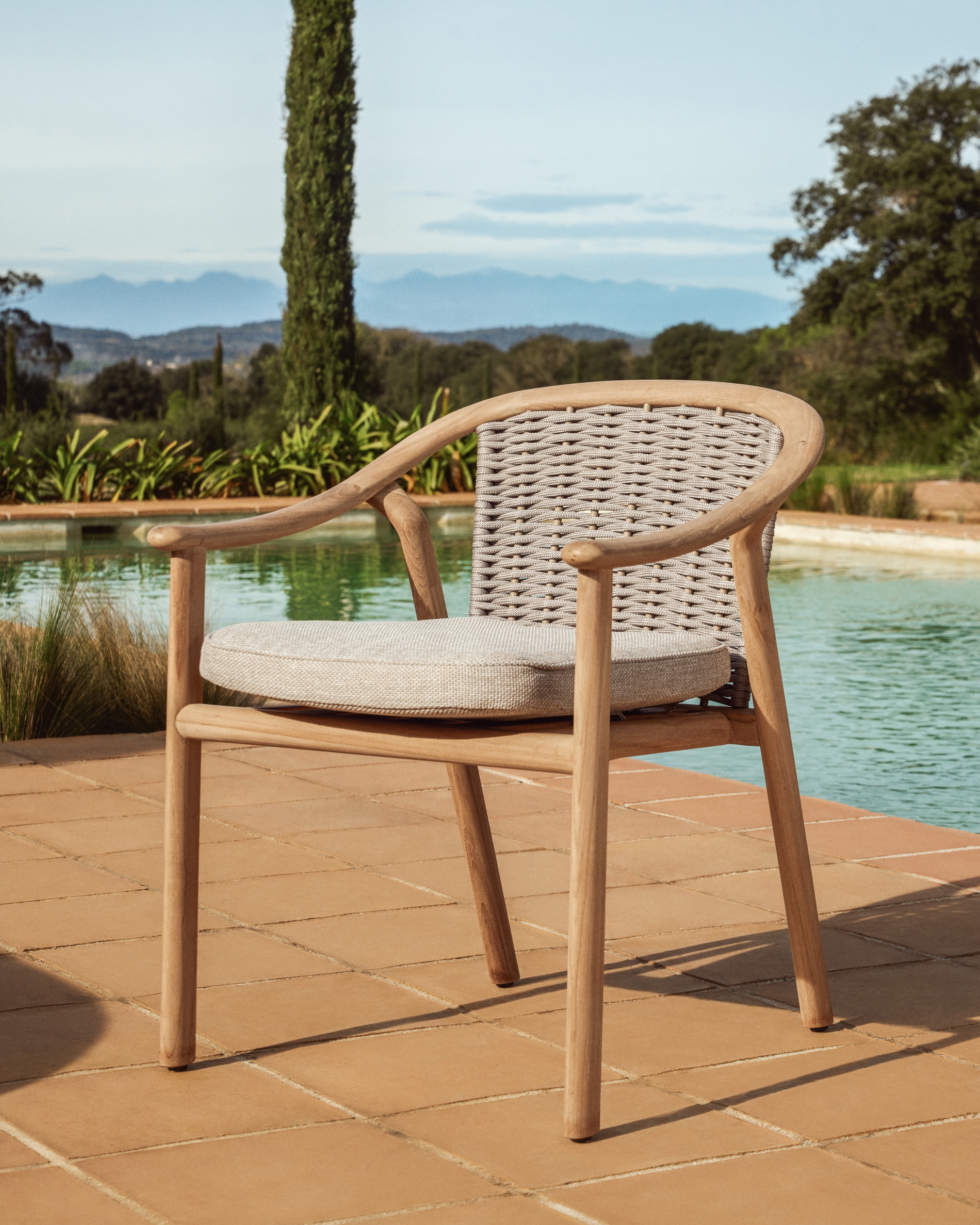 Коллекция Elunda включает в себя предметы мебели из массива тикового дерева, подходящие для использования на открытом воздухе и предназначенные для создания уютных пространств. Ее конструкция сочетает в себе плавные линии и спинку из плетеного вручную, устойчивого к УФ-излучению шнура, обеспечивающего комфортную поддержку. Подушки имеют съемные чехлы и изготовлены из сетчатого пеноматериала, который пропускает воду и способствует быстрому высыханию, что позволяет использовать их на открытом воздухе в течение длительного времени. Коллекция изготовлена из древесины, сертифицированной по стандарту FSC™ 100%, полученной из ответственно управляемых лесов.