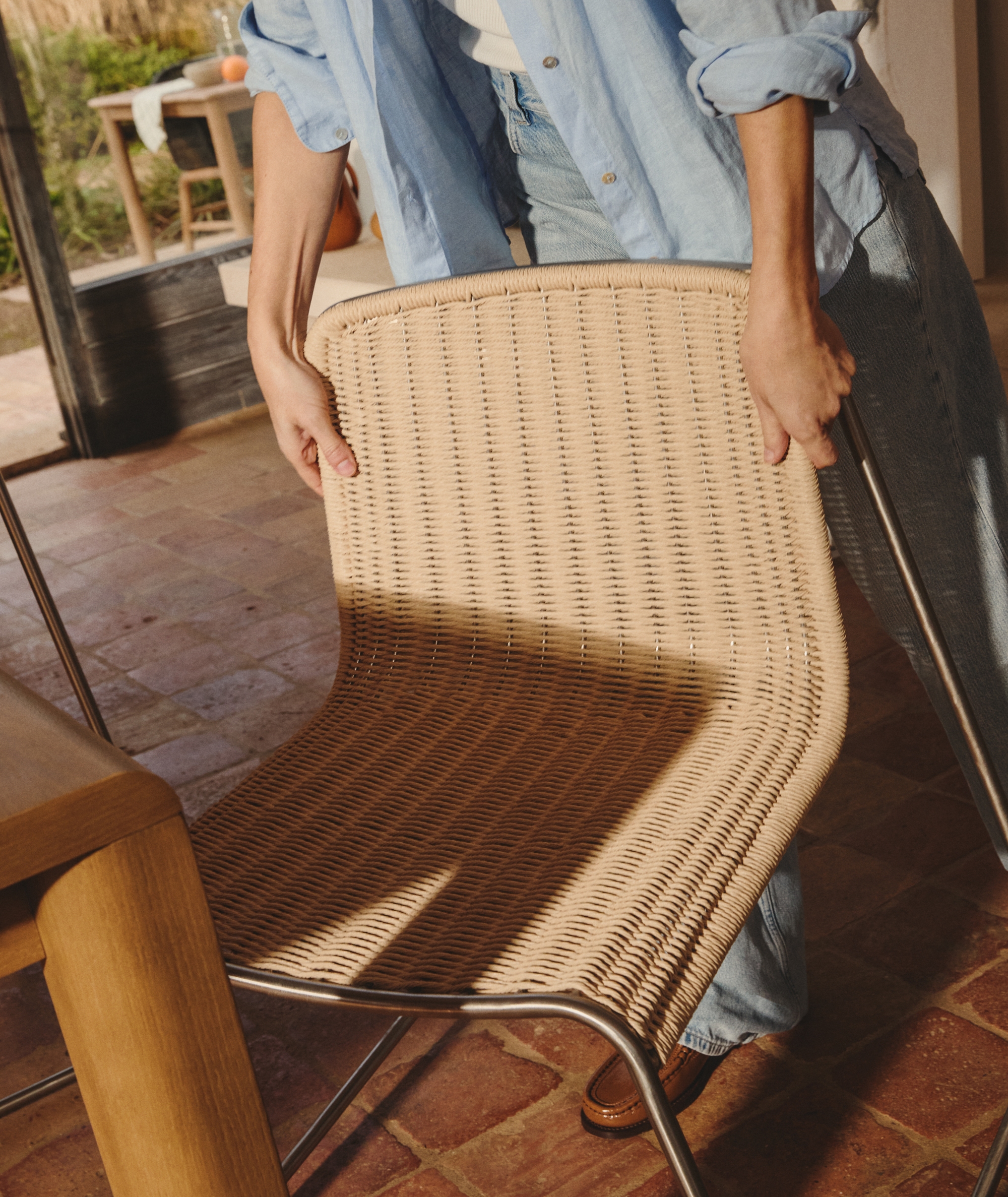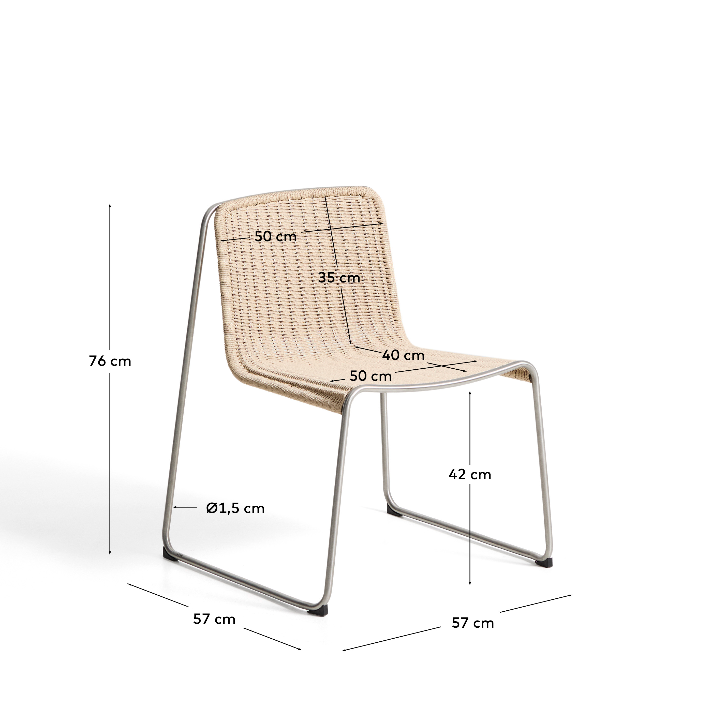 Штабелируемый стул Tavari сочетает в себе легкость и прочность, создавая изделие, предназначенное для отдыха на открытом воздухе круглый год. Его сиденье, сплетенное вручную из бежевого синтетического шнура, добавляет текстуру и комфорт, а конструкция из нержавеющей стали с матовой отделкой обеспечивает стабильность и долговечность. Синтетический шнур выдерживает солнце, дождь и перепады температур, не теряя своей формы и цвета. Он также легко чистится, что делает его практичным выбором для открытых пространств.