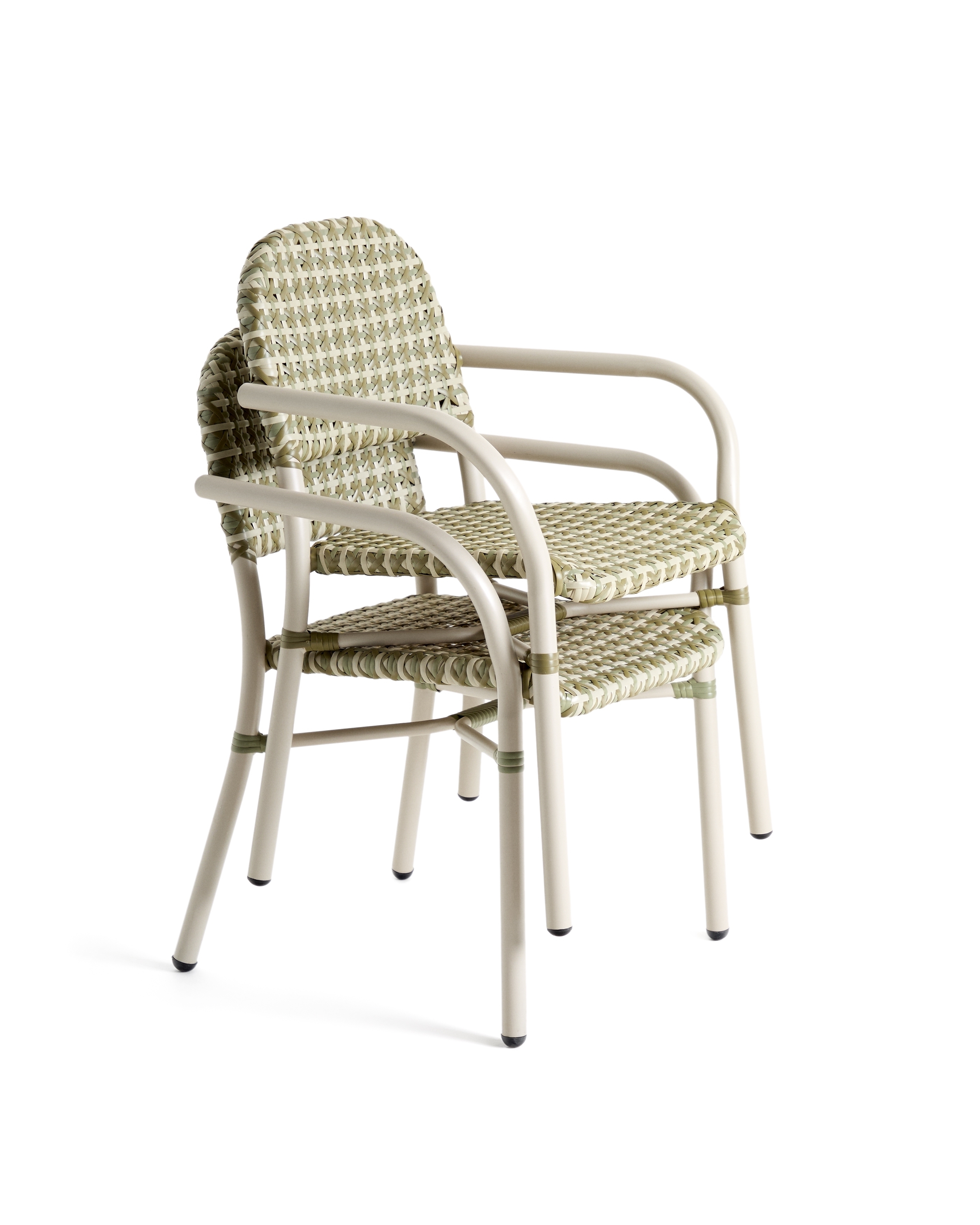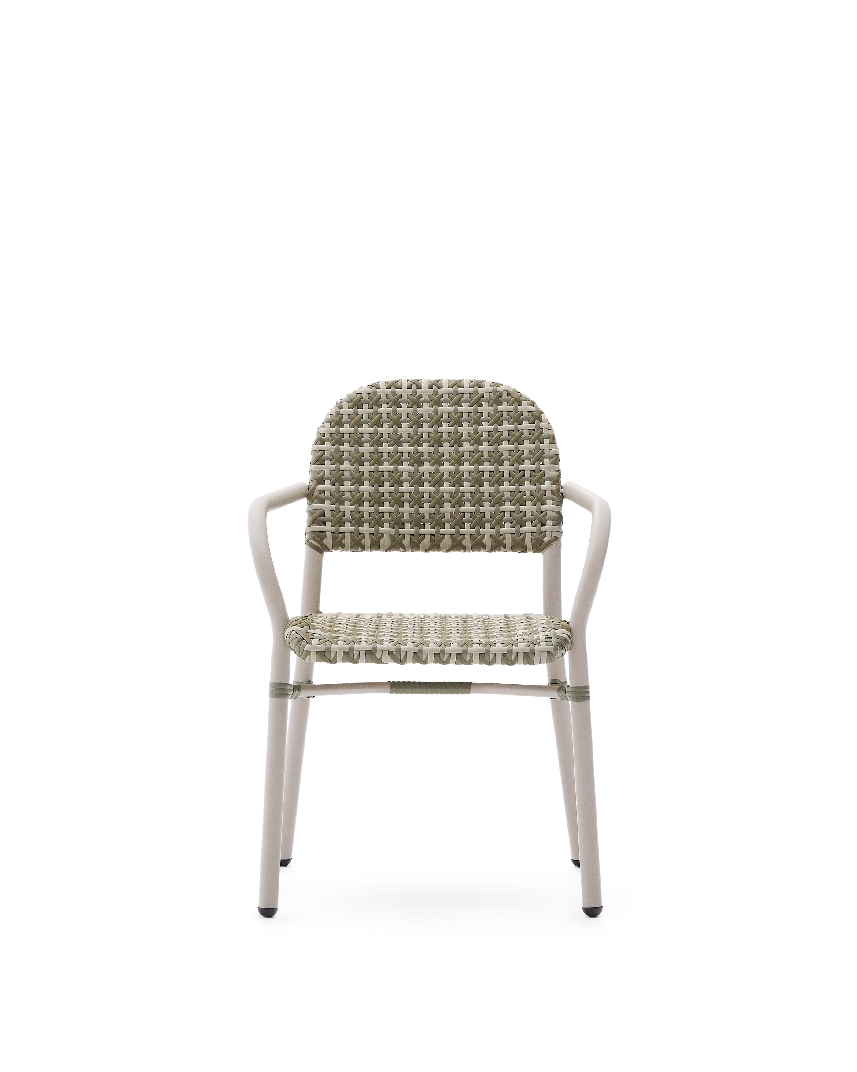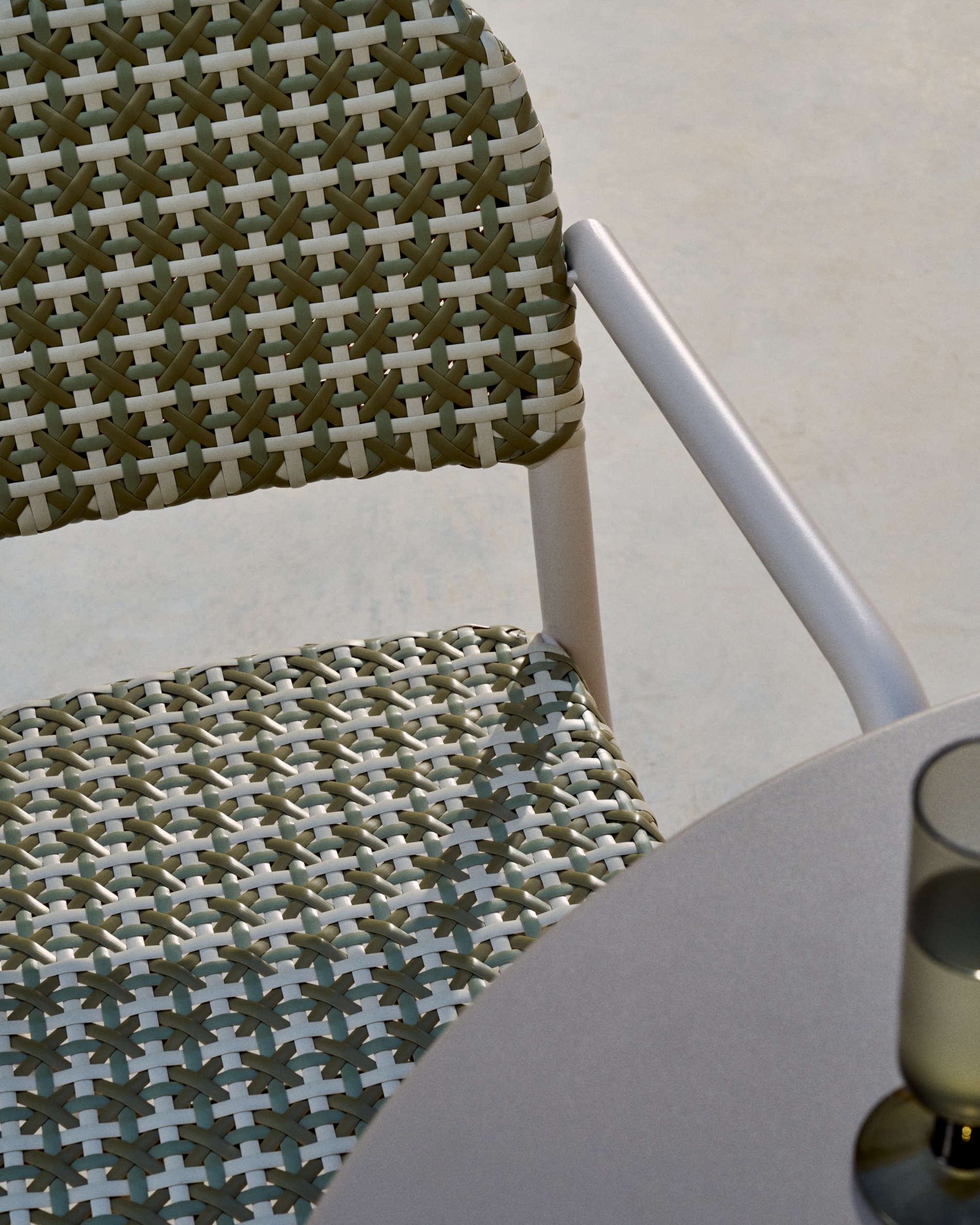 Откройте для себя суть стиля бистро с помощью стула Tuccia с алюминиевой структурой и синтетическим ротангом ручной работы. Легкий, прочный и идеально подходящий для использования в помещении или на открытом воздухе, он придает любому пространству нотку вневременного очарования.