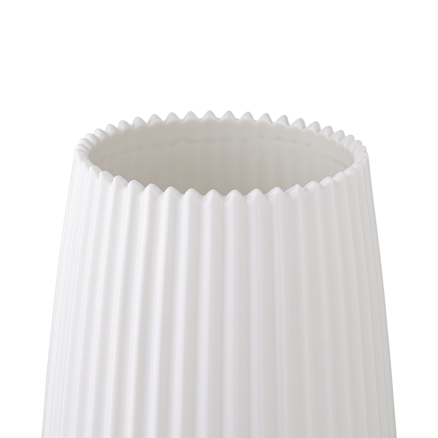 Небольшая белая ваза из коллекции Edge подойдет для живых цветов, сухоцветов или пряной зелени. Простая форма вазы позволяет вписать ее в любой интерьер, а фактурная поверхность будет красиво бликовать на свету. Ваза сделана из фарфора — легкого, прочного и устойчивого к сколам материала, за которым легко ухаживать.