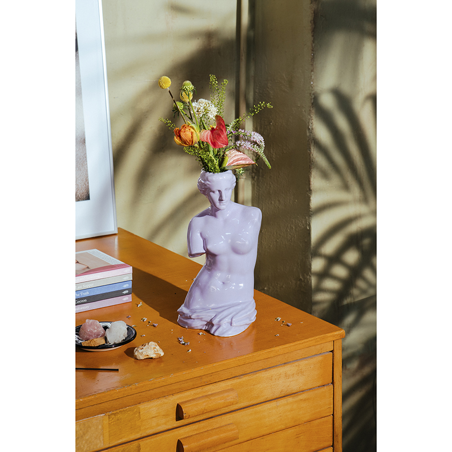 Стильная ваза Venus, выполненная в форме богини Венеры, – вдохновленный античным искусством аксессуар и подарок, способный ярко выразить любовь к близкому человеку. Скульптура с плавными изгибами подчеркнет красоту цветов и станет органичной частью как классического, так и современного интерьера. Экологически чистая керамика безвредна для окружающей среды.