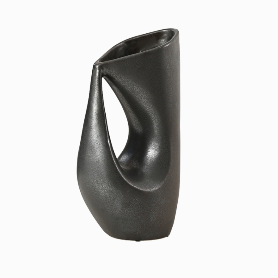 Глубокий черный и серебряный оттенок вазы создает атмосферу загадочности и утонченности, идеально вписываясь в любые современные интерьеры.
