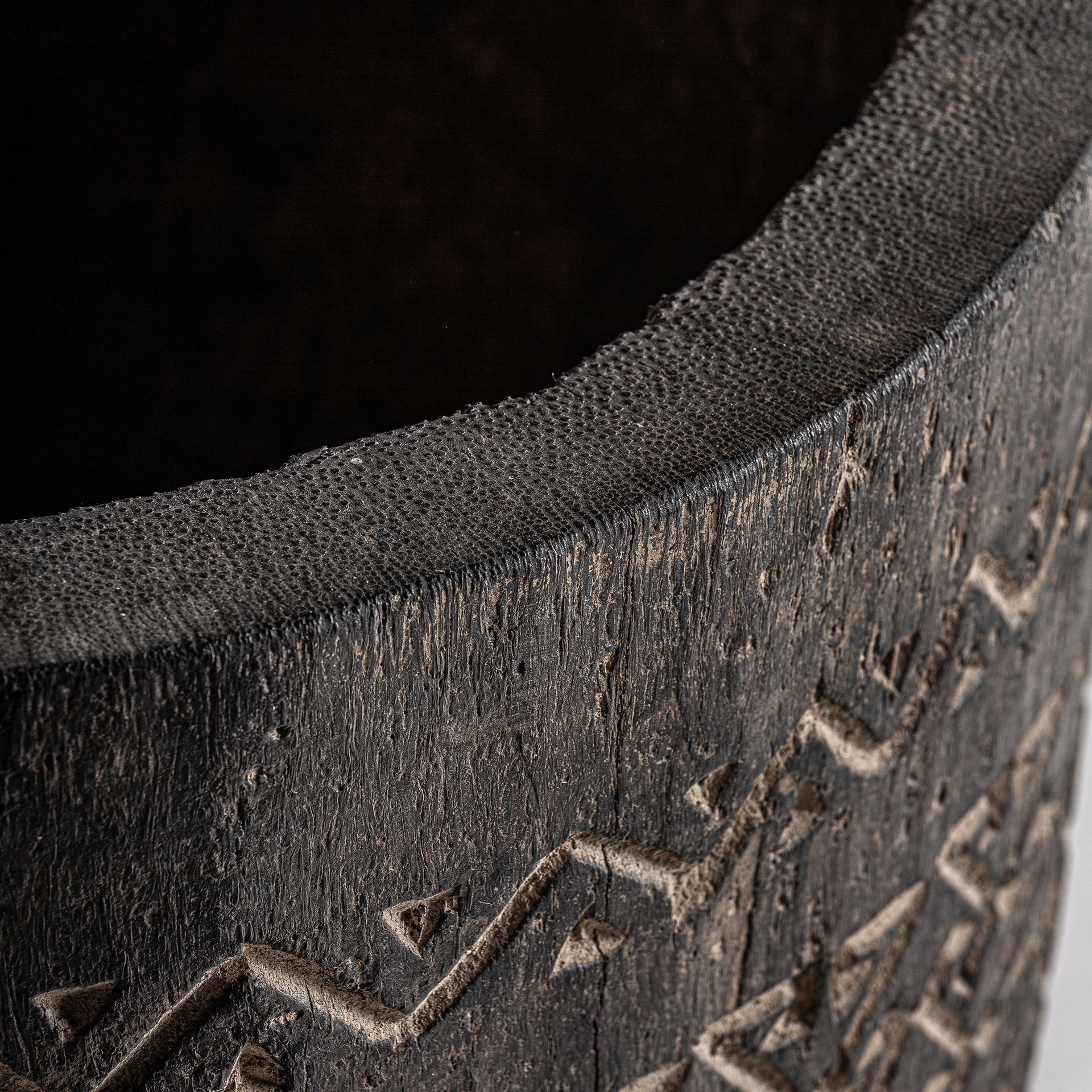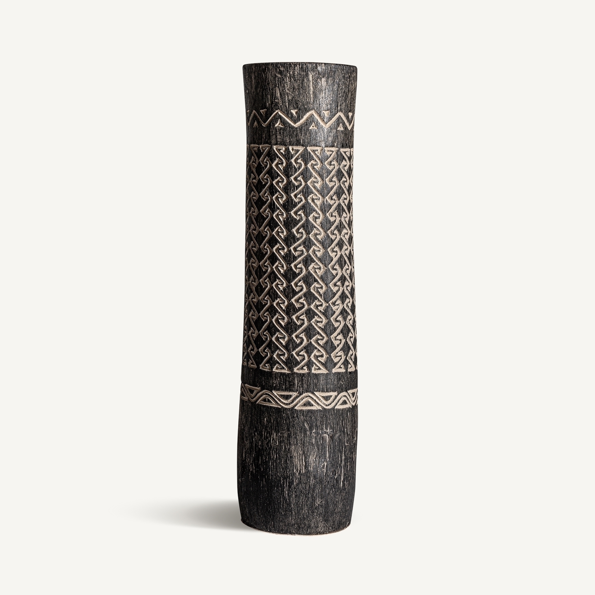 Ваза «NANTUA» в современном стиле, изготовлена из пальмового дерева в коричневых тонах с резной отделкой.