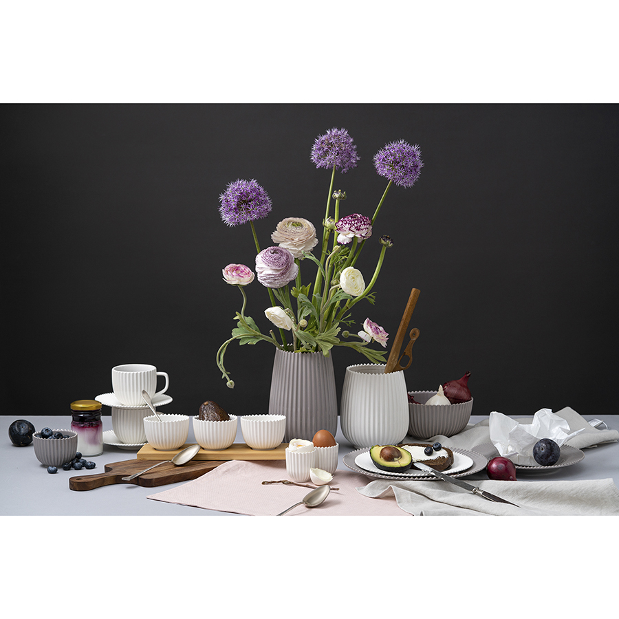 Небольшая серая ваза из коллекции Edge подойдет для живых цветов, сухоцветов или пряной зелени. Простая форма вазы позволяет вписать ее в любой интерьер, а фактурная поверхность будет красиво бликовать на свету. Ваза сделана из фарфора — легкого, прочного и устойчивого к сколам материала, за которым легко ухаживать.