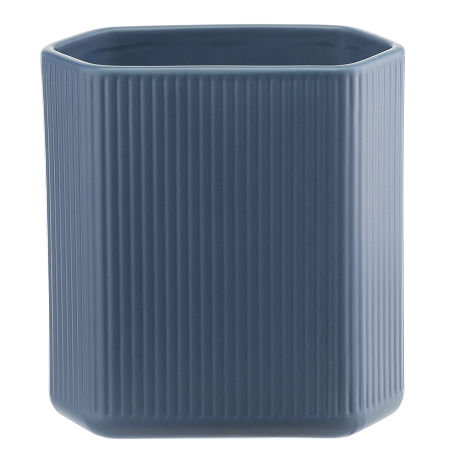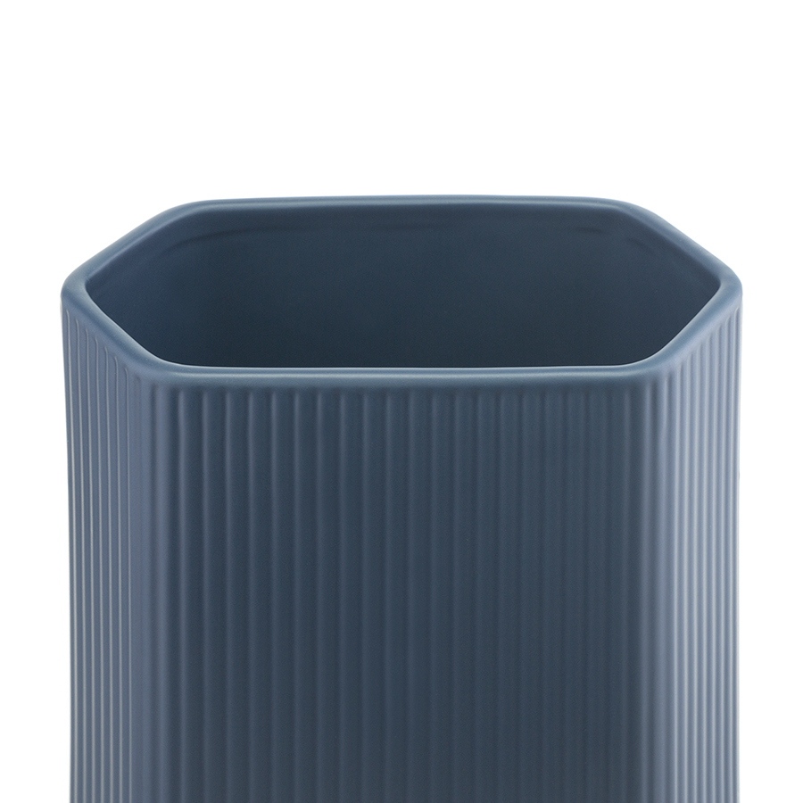 Ваза темно-синего цвета из коллекции Edge подойдет как для букетов из живых цветов, так и для сухоцветов. Простая форма вазы с фактурными гранями будет сочетаться с другими предметами из этой же коллекции, позволяя создавать интересные интерьерные композиции. Изделие выполнено из доломита, устойчивого к сколам, легкого и экологически чистого материала, снаружи и внутри покрыто матовой глазурью.