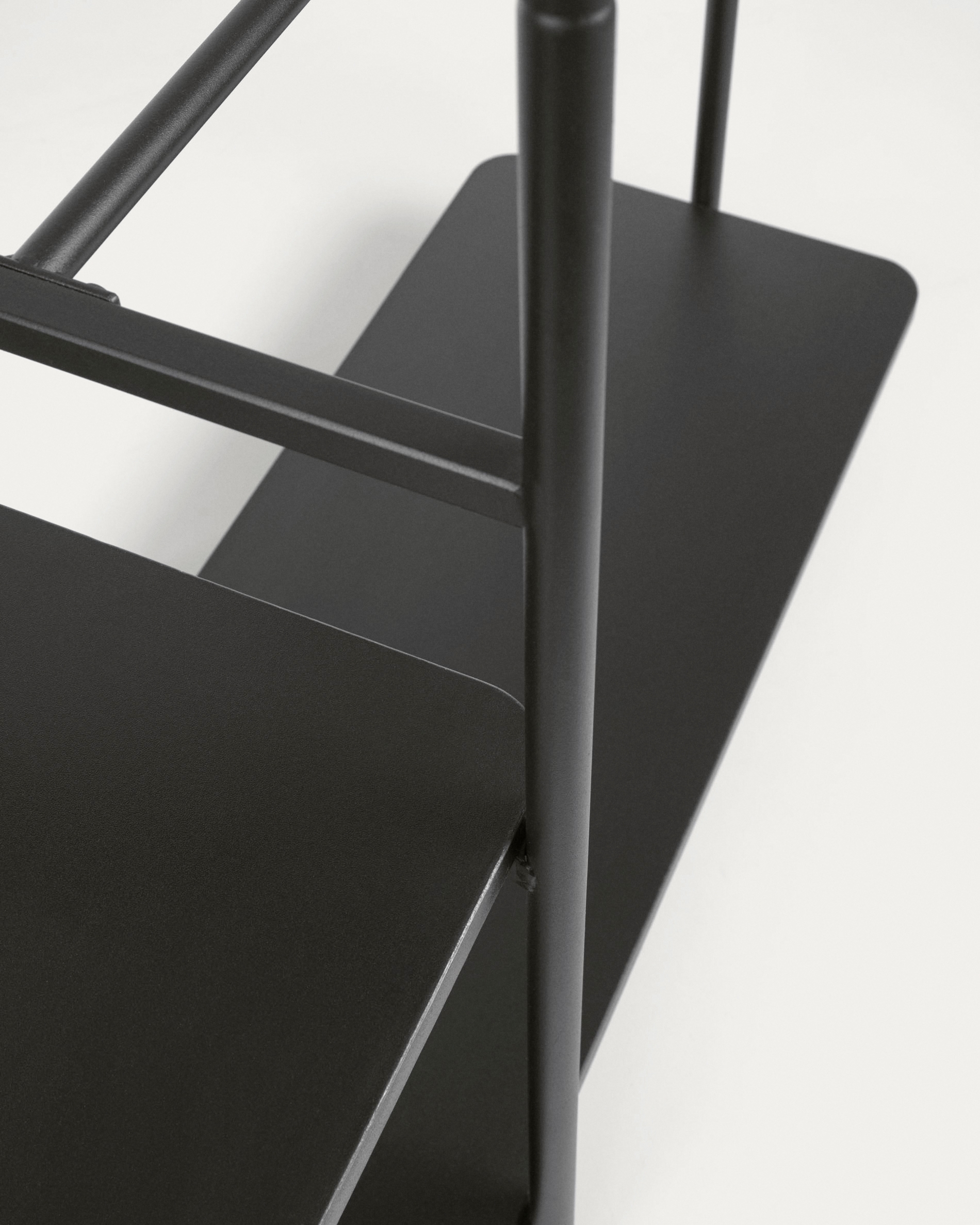 Вешалка для одежды для стен с черными меламиновыми полками. Металлическая конструкция с черной отделкой. Дизайн с минималистскими линиями в черном цвете. Идеально подходит для того, чтобы максимально использовать пространство и добавить стиль в ваш холл, гардеробную или спальню.