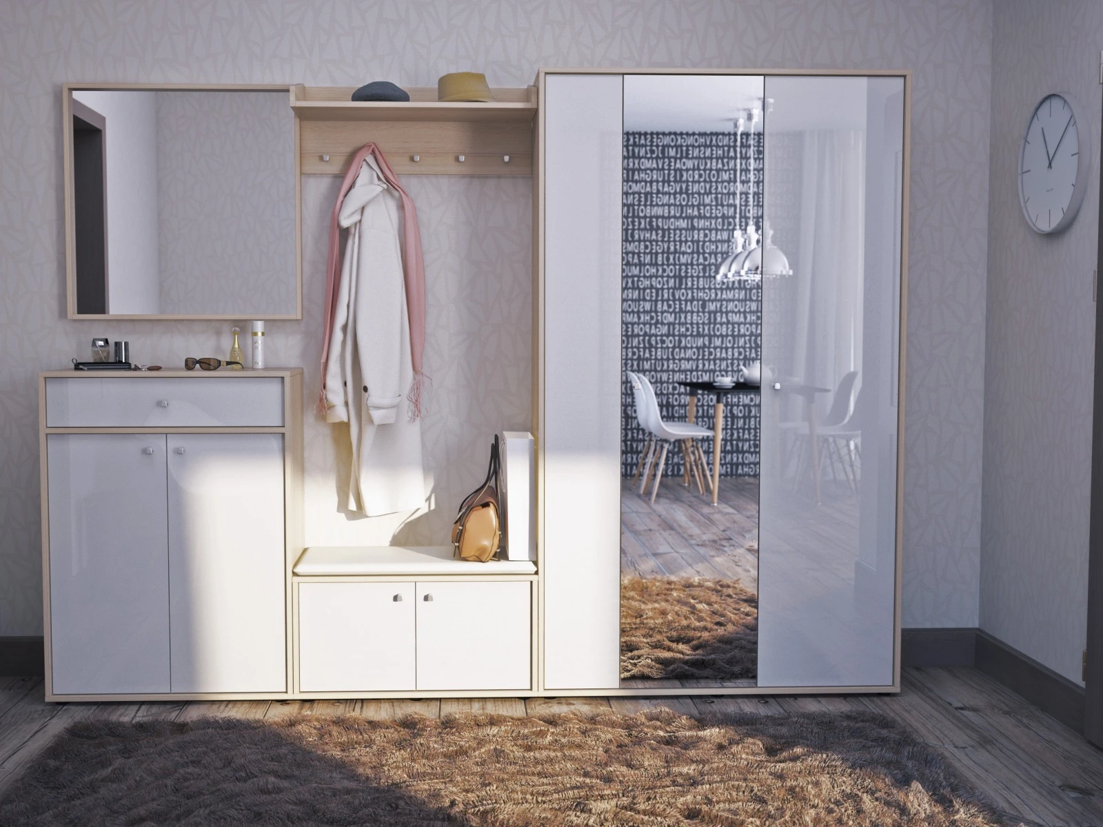 Latte — дизайнерская коллекция функциональной корпусной мебели для прихожей. Основу составляют базовые изделия с благородным минималистичным внешним видом: шкафы, комоды, обувницы, вешалки для одежды. Концепт — современный дизайн, выраженный в легкости визуального восприятия. В центре внимания: светлые оттенки, зеркальные и глянцевые поверхности, строгая геометрия, отсутствие декора. Для индивидуальных интерьерных решений несколько вариантов фасадов: ЛДСП, зеркало, стекло в белом и в оттенке капучино. Бликующие поверхности не утяжеляют и не «съедают» свет, а наполняют локацию свежестью, воздушностью, дружелюбной атмосферой, придают динамику, визуальный объём. Подходят как для компактных пространств, так и для больших помещений. С Latte вы составите индивидуальную композицию для удобного хранения вещей по категориям и поддержите порядок в доме.