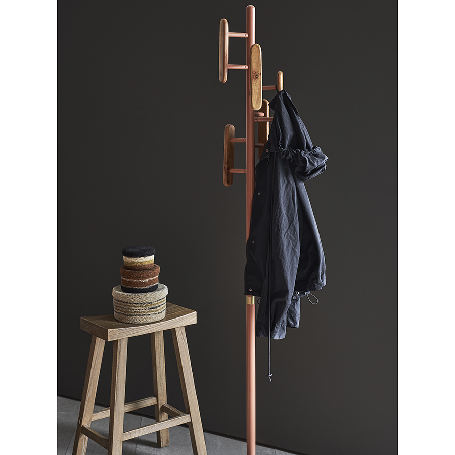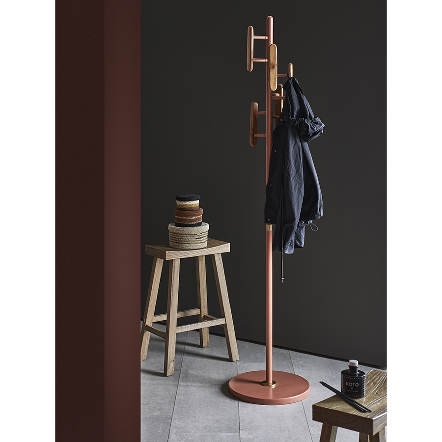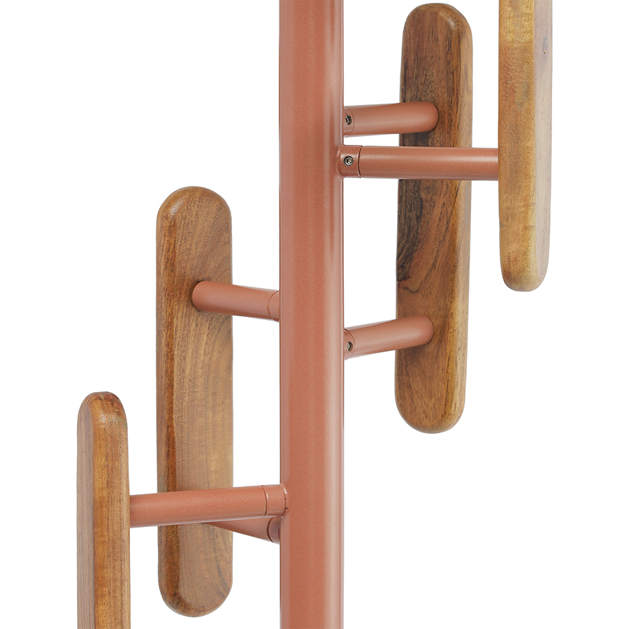 Материал: железо, дерево. Размеры: 40,8х40,8х186 см. Вес: 7,2 кг. Длина крючков: 10 см. Максимальна нагрузка на один крючок: до 7 кг. Максимальная нагрузка на вешалку: до 20 кг. Цвет: терракотовый.