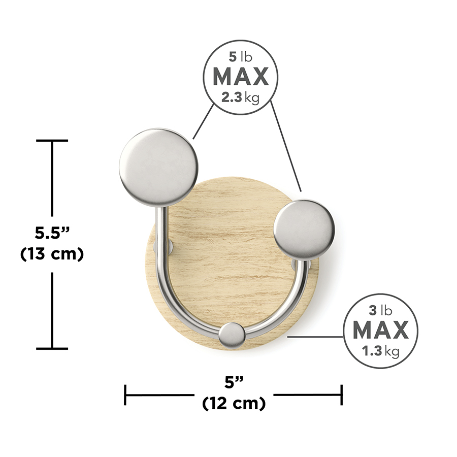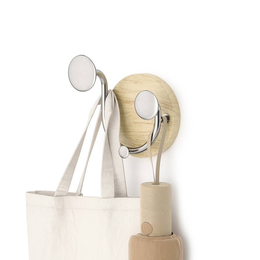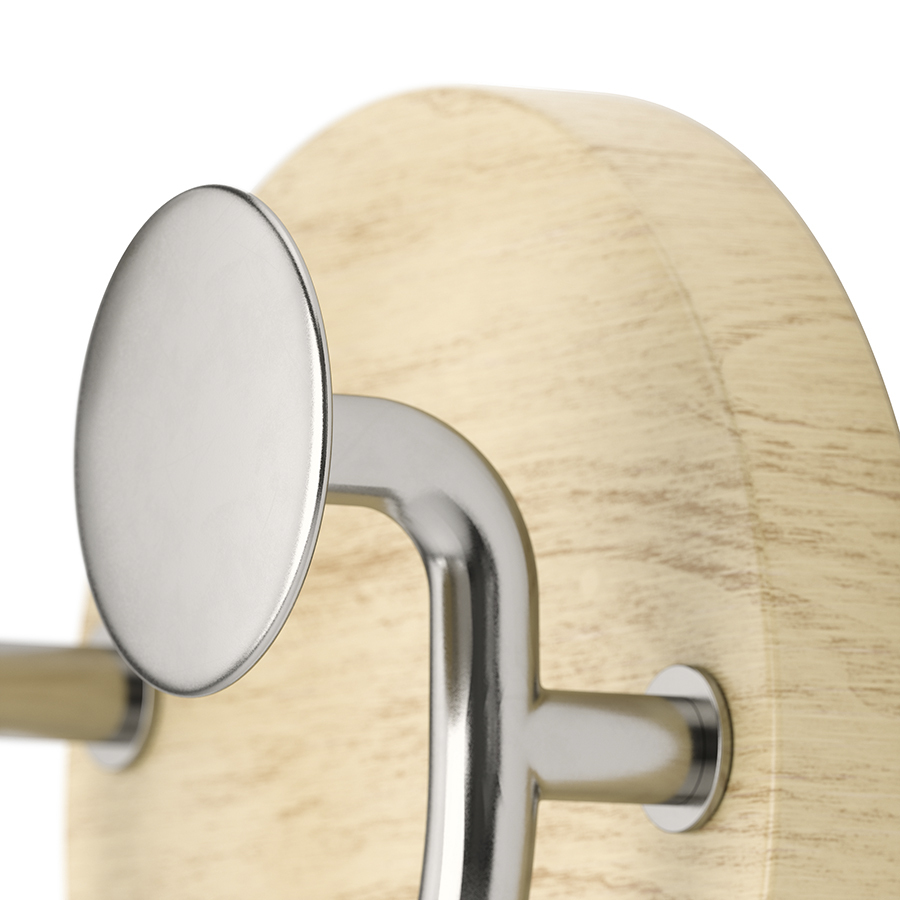 Материалы: алюминий, каучуковое дерево, ясень. Размеры: 12х8х13 см. Максимальная нагрузка: 6 кг. Цвет: натуральное дерево/никель.