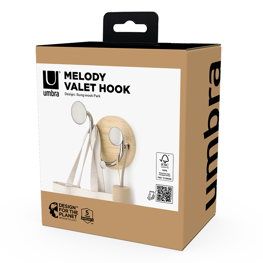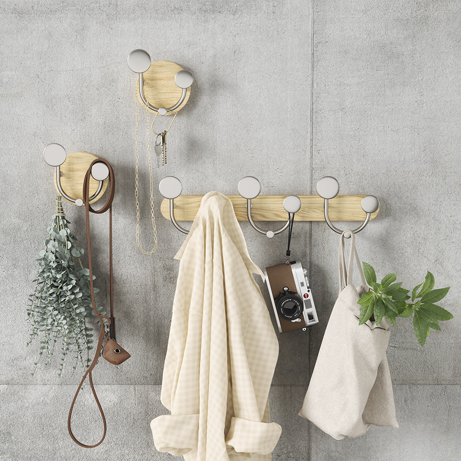 Вешалка настенная Melody идеально подойдет для компактного хранения вещей в любой из комнат и станет стильным акцентом интерьера. Сочетание дерева и элементов из металла придает аксессуару современный, но в то же время естественный вид. Вешалка оснащена тремя крючками, на которых можно удобно размещать предметы одежды, головные уборы, шарфы, сумки и другие аксессуары.