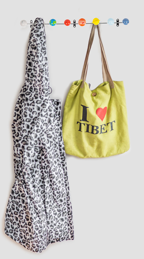 Вешалка имеет нестандартный дизайн и яркое цветовое оформление. Каждый крючок выполнен в виде одной из планет Солнечной системы, благодаря чему такой предмет сразу привлекает внимание и становится визуальным центром интерьера прихожей. Металлическая планка легко крепится к стене при помощи шурупов. Крючки-«планеты» изготовлены из натурального дерева и окрашены безопасной краской.