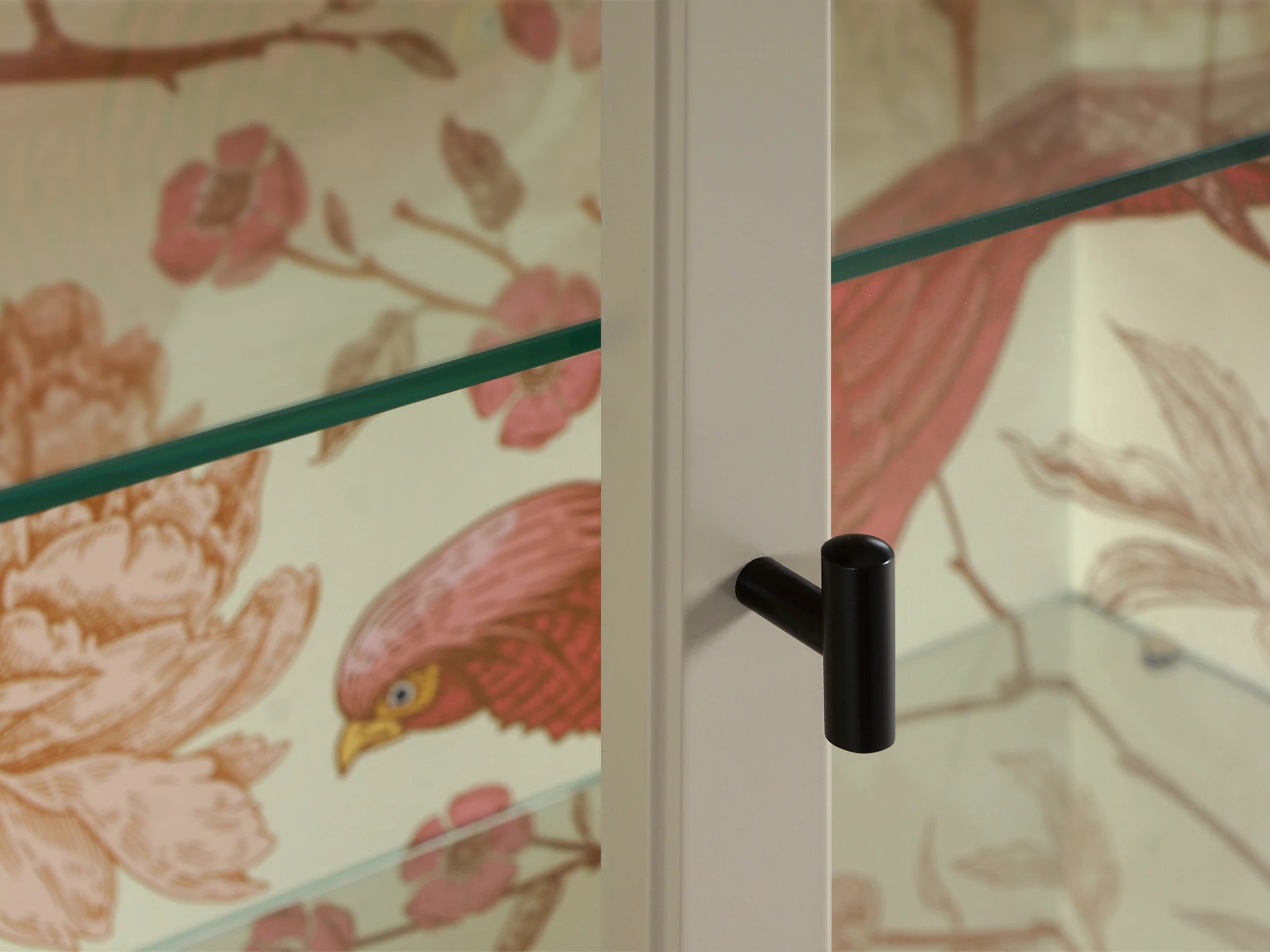 Внутри полки из стекла толщиной 6 мм. Перестановка полок по высоте не предусмотрена.