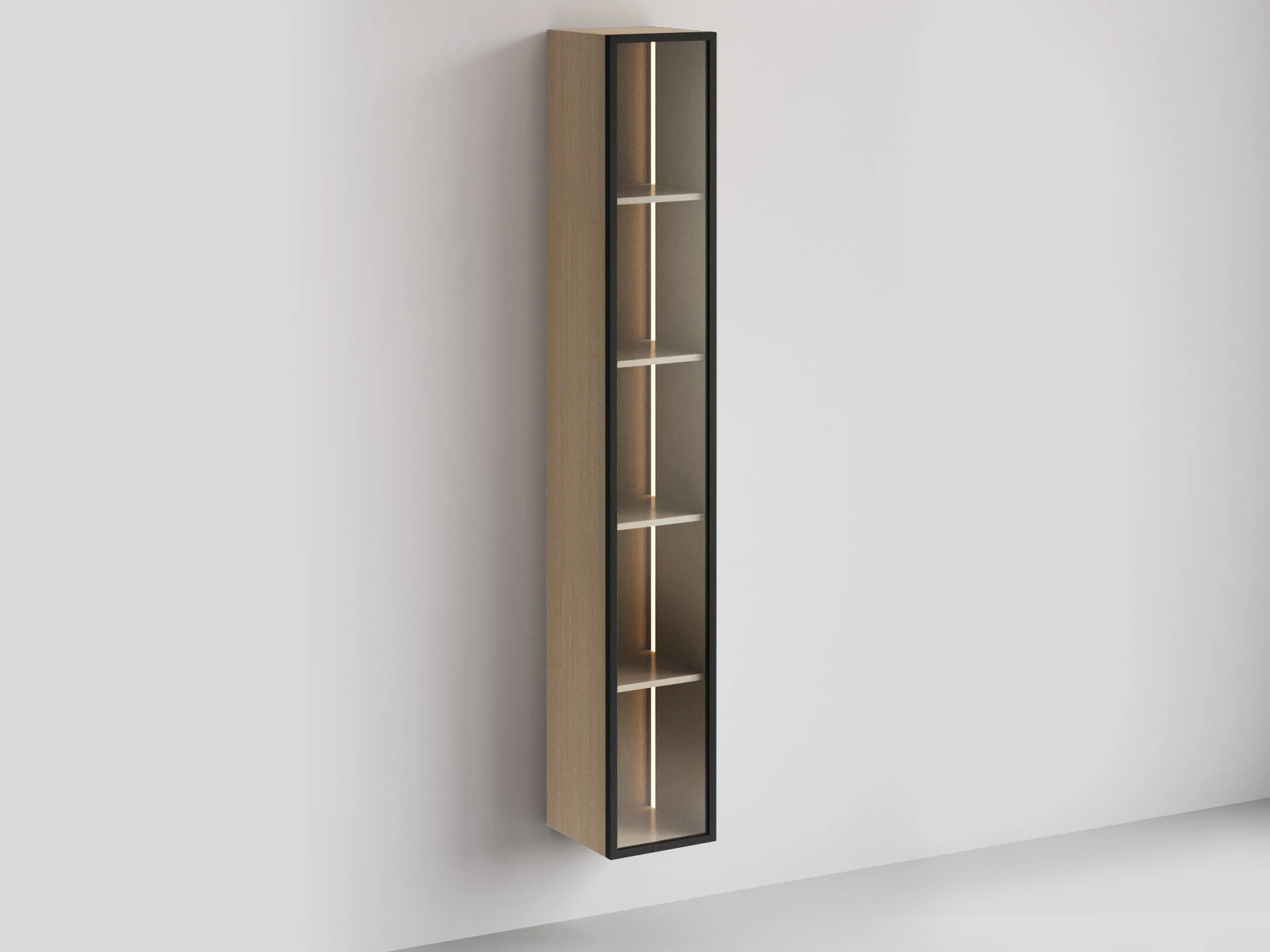 Внутри витрины установлена светодиодная лента в профиле. Лента имеет три цвета свечения: теплый, холодный, нейтральный. Для подключения светильника необходимо отдельно приобрести комплект подключения подсветки.